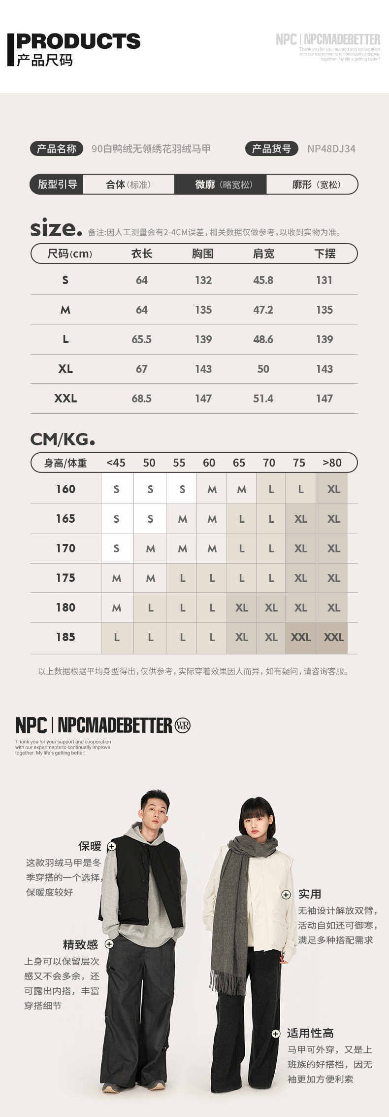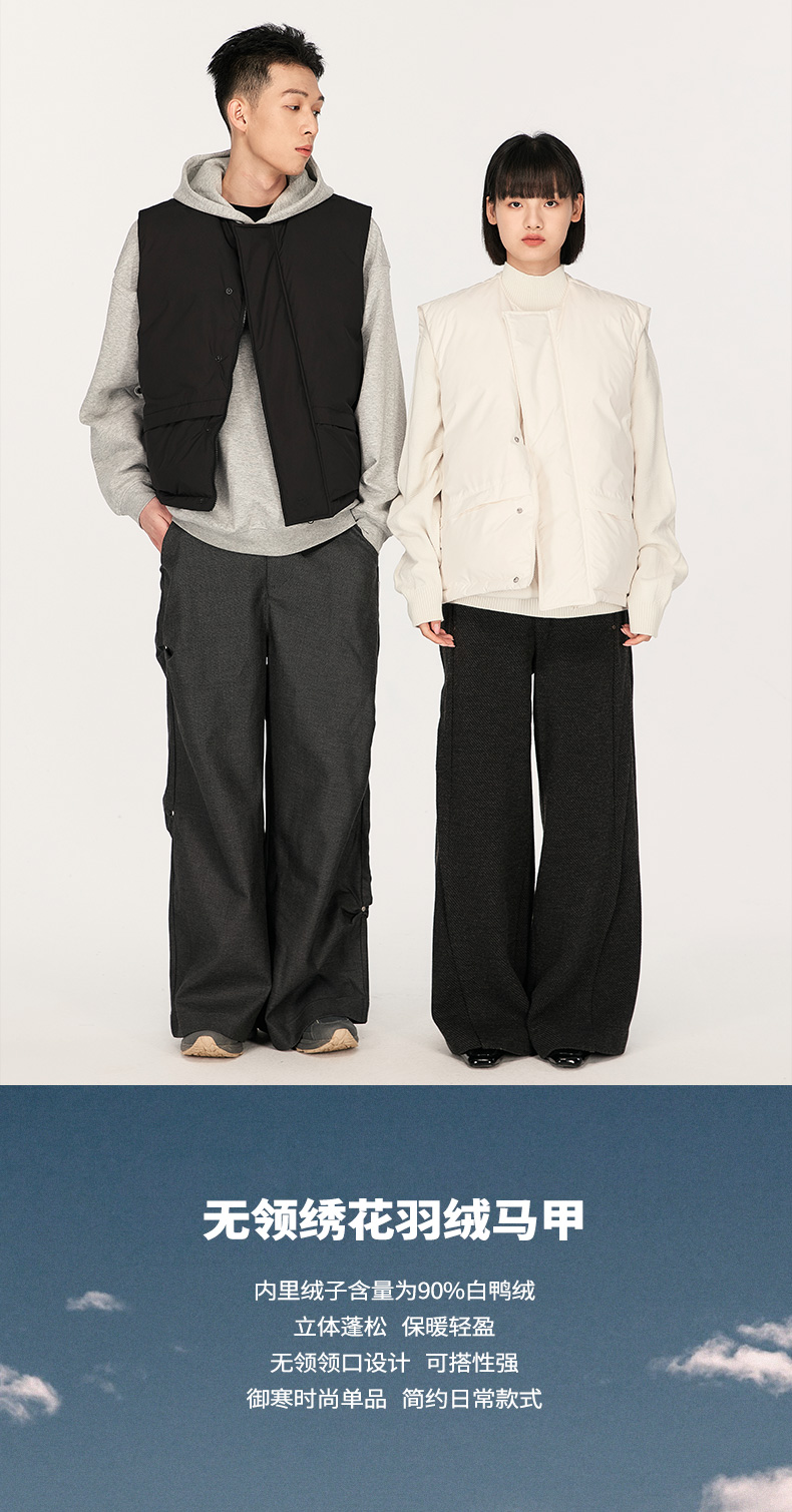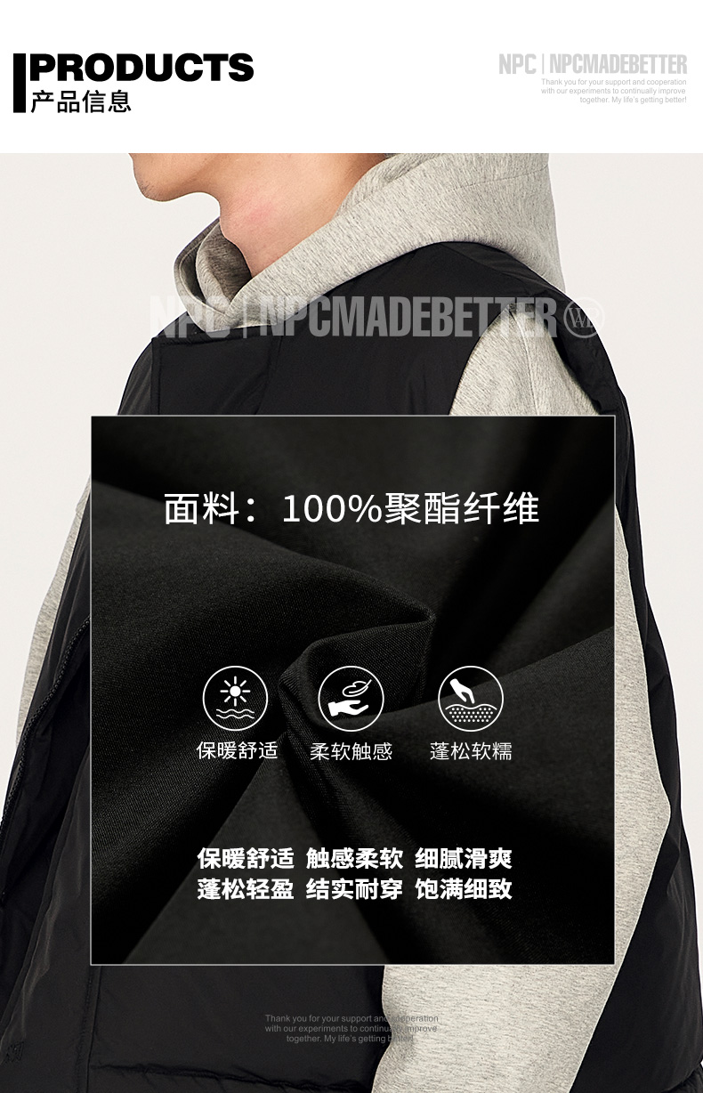 NPC潮牌绣花90白鸭绒廓形羽绒马甲男圆领蓬松保暖户外NP48DJ34 J