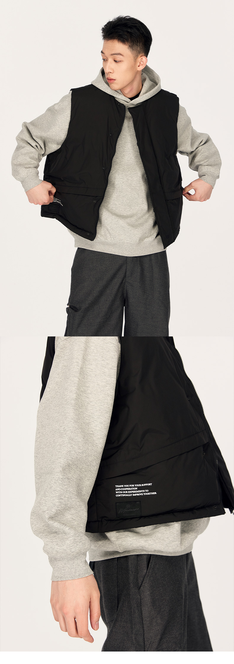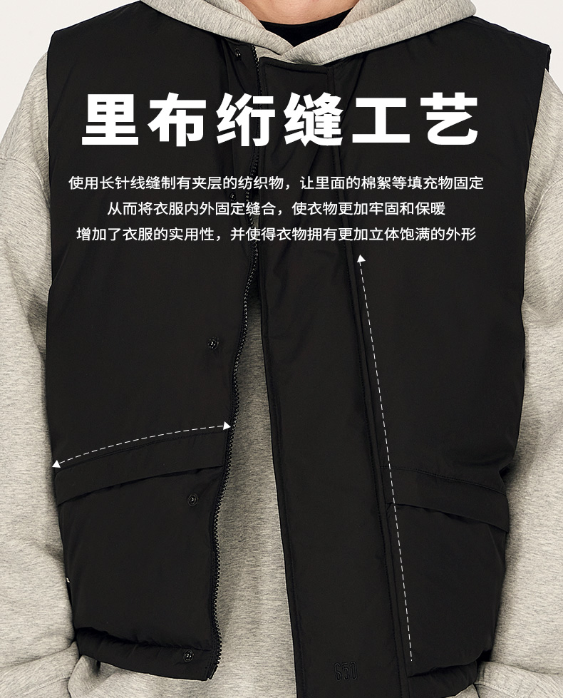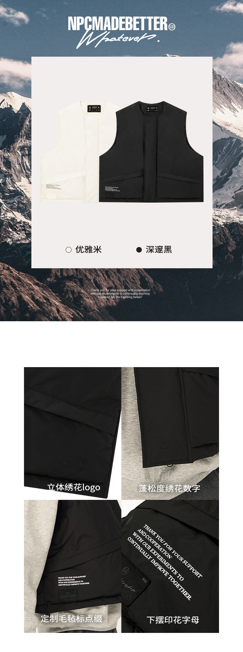 NPC潮牌绣花90白鸭绒廓形羽绒马甲男圆领蓬松保暖户外NP48DJ34 J