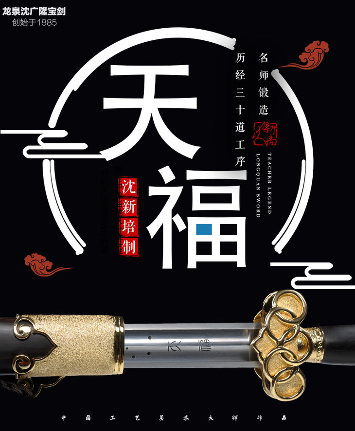 天福剑 中国工艺美术大师沈新培 龙泉沈广隆剑铺宝剑 未开刃