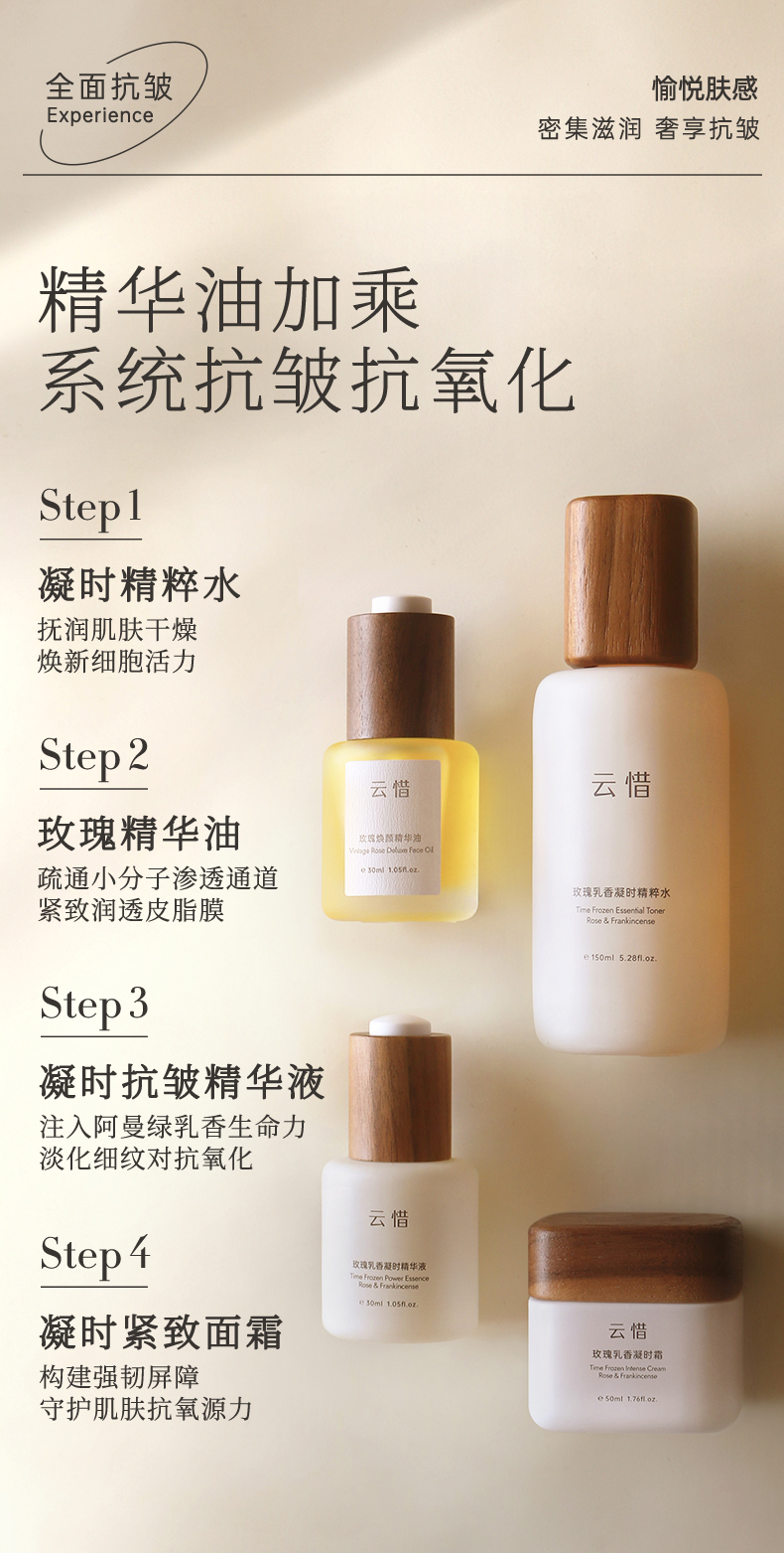 【干皮润泽抗皱护肤套组 不含香精】云惜玫瑰乳香凝时