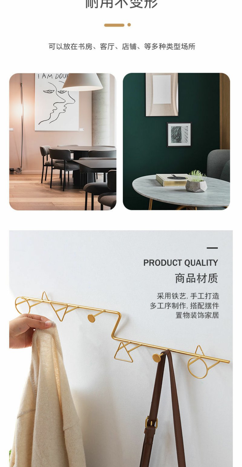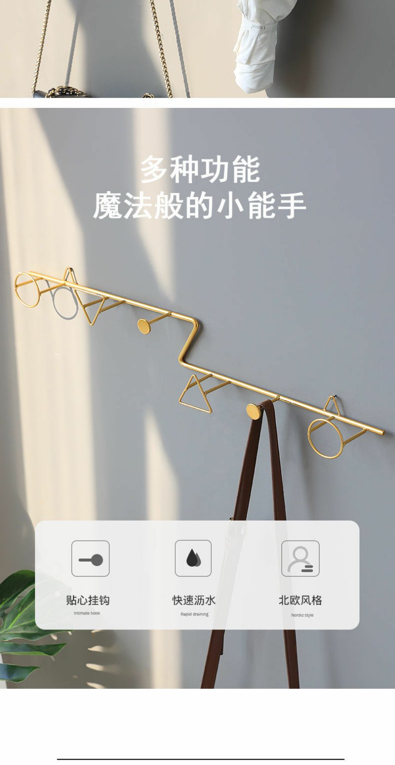 北欧轻奢铁艺挂钩钥匙挂架进门口创意玄关墙面上收纳置物衣架装饰
