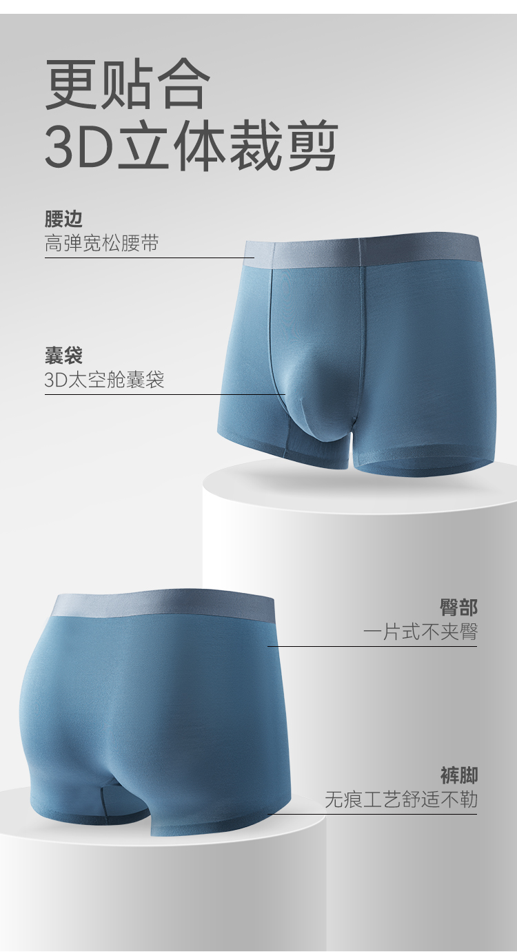【男士竹纤维3条】米乐鱼男士3条装竹纤维内裤