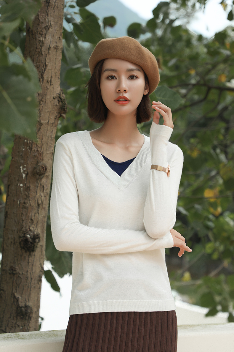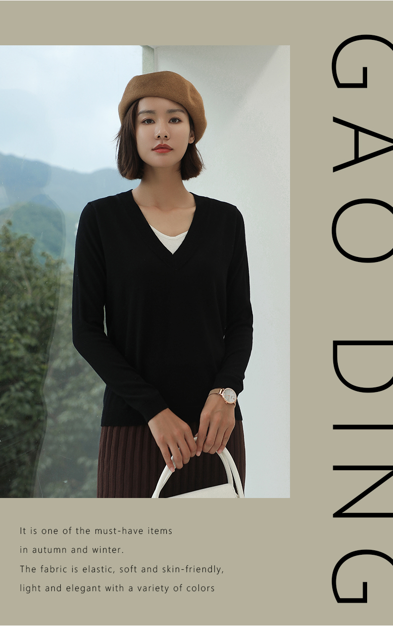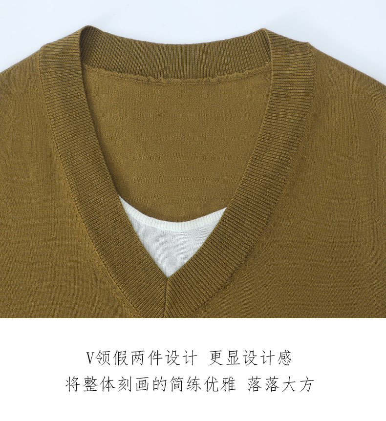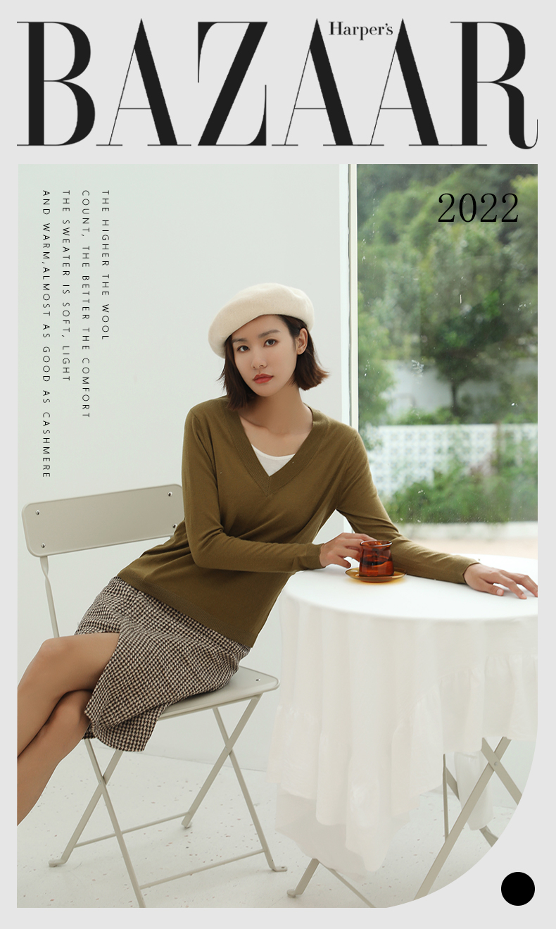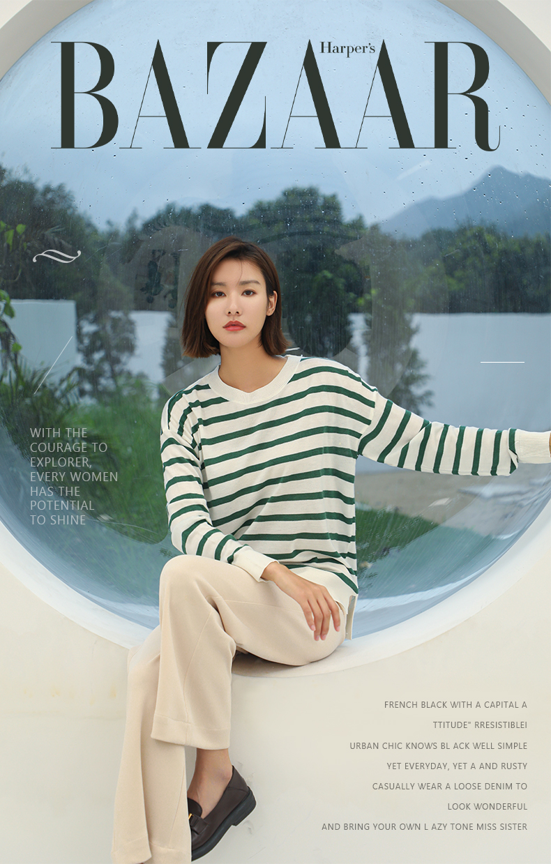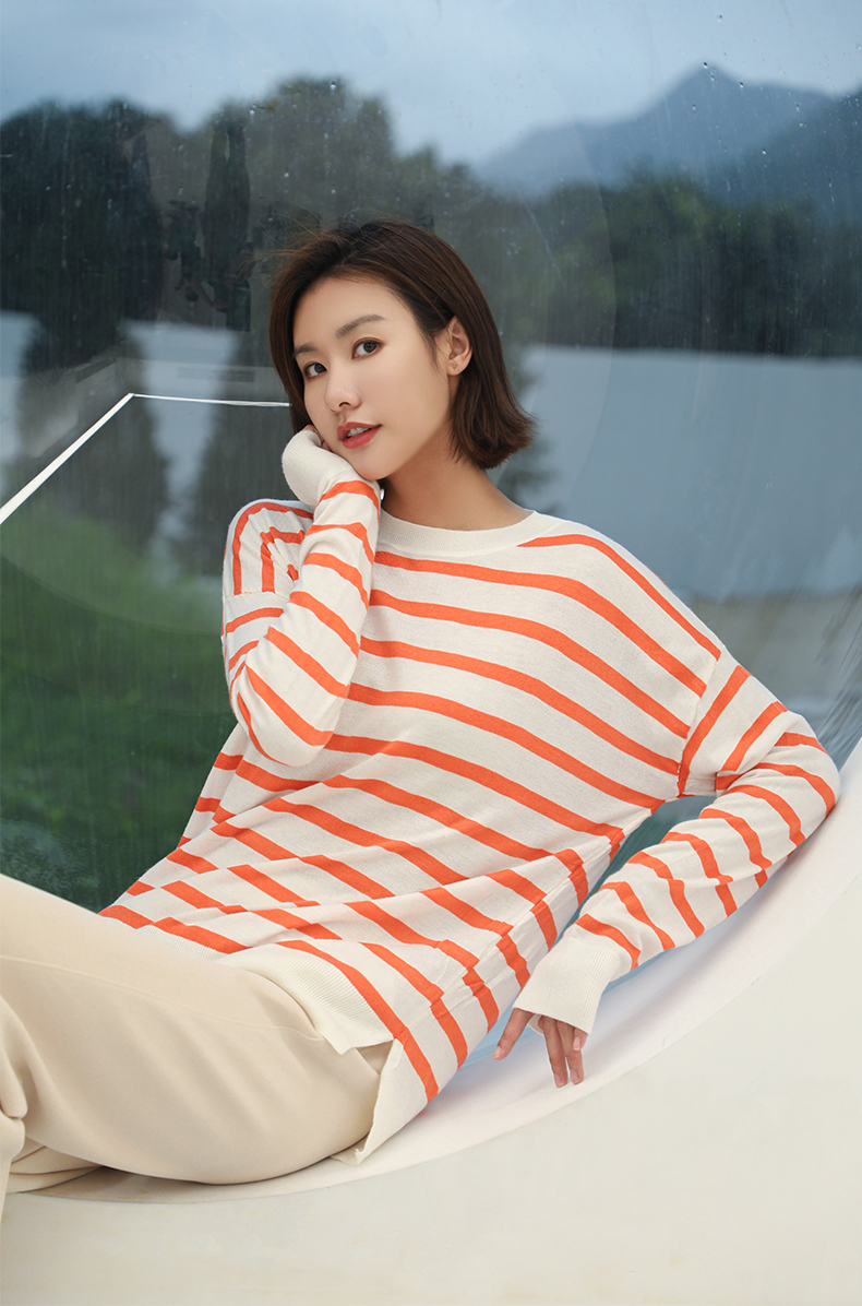Happy's Bazzar芭莎秋冬新品套头长袖毛针织衫女条纹羊毛衫&V领拼接假两件羊毛针织衫