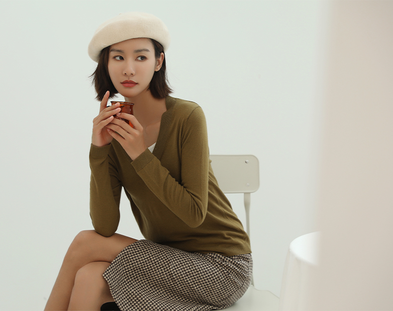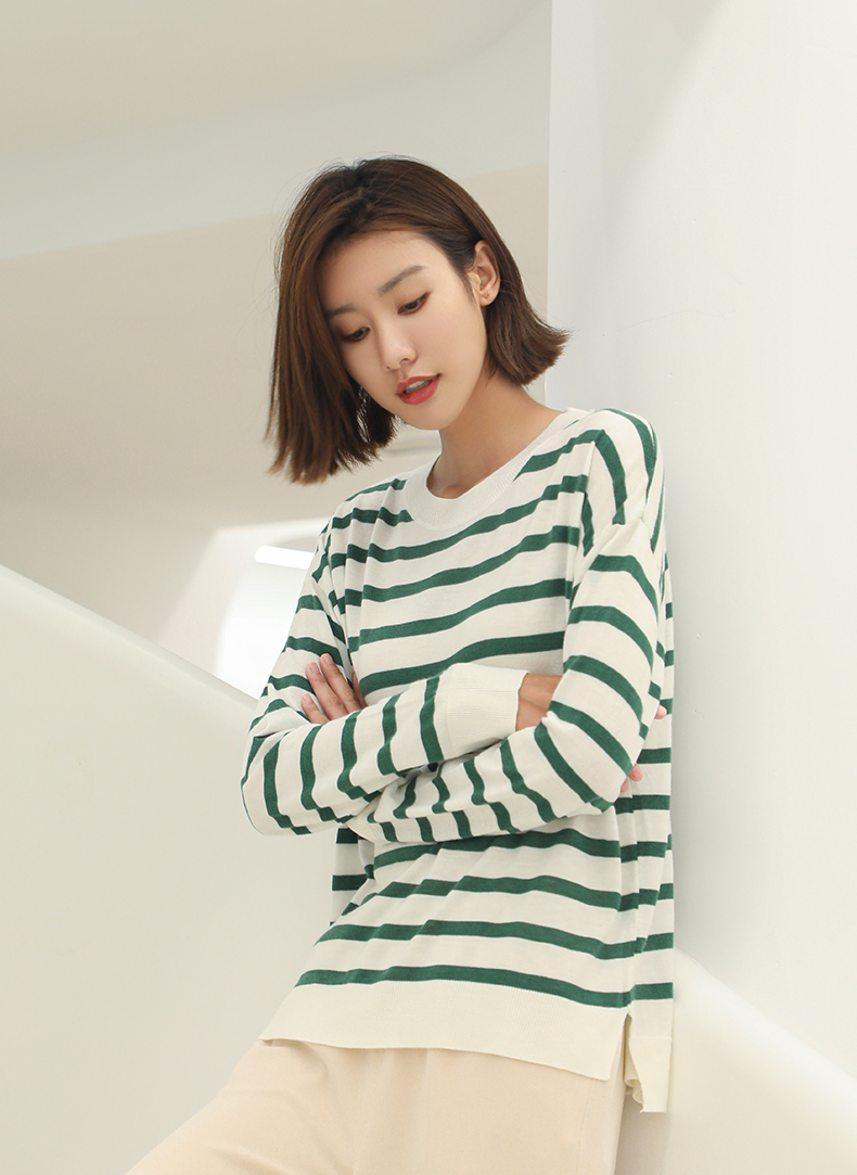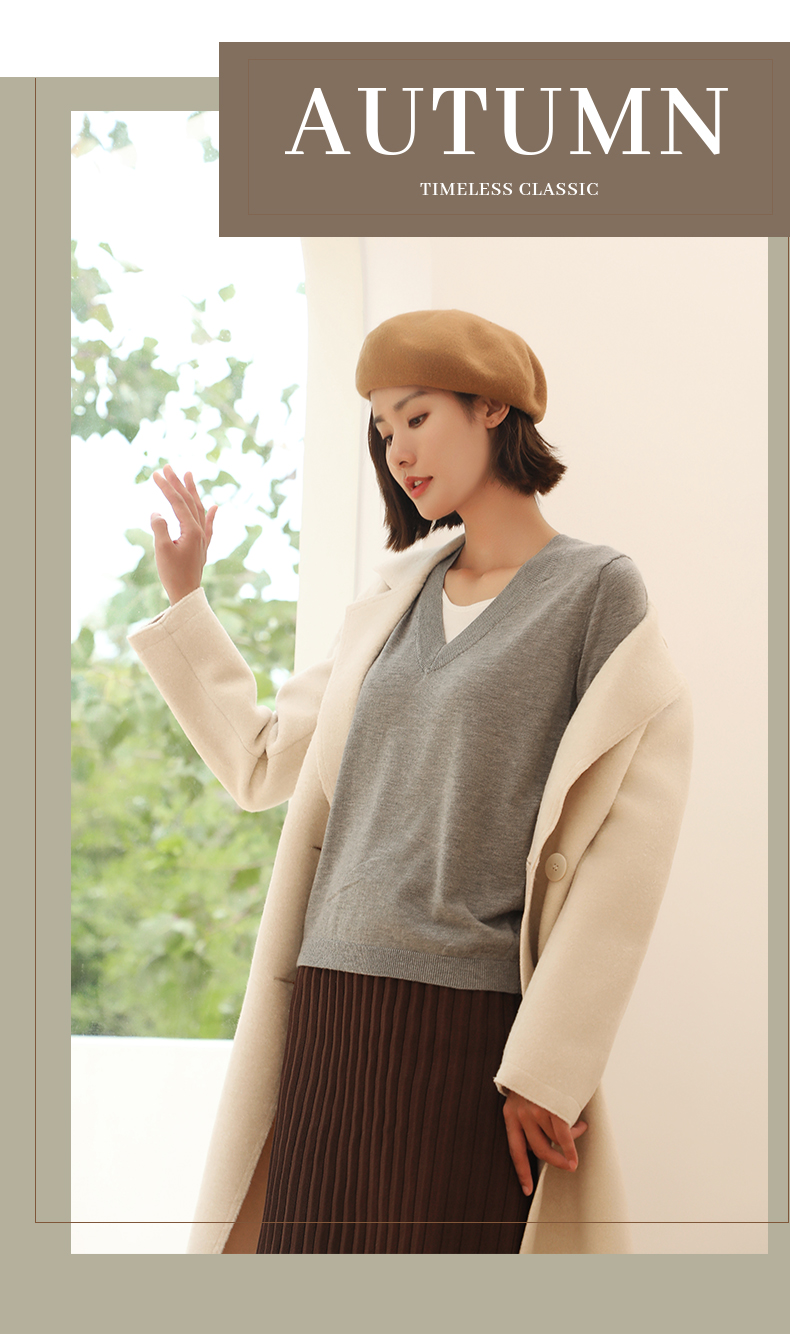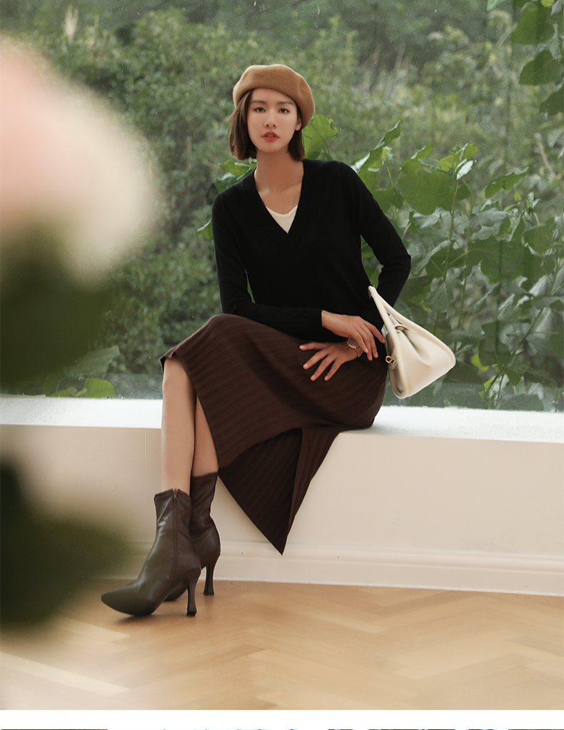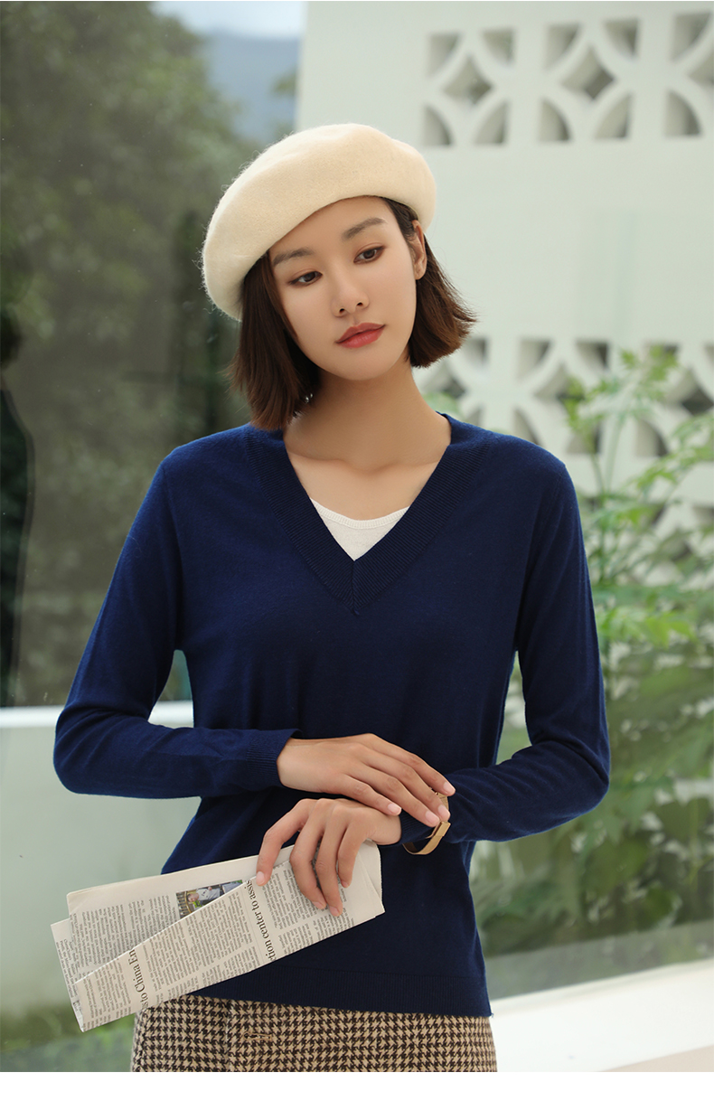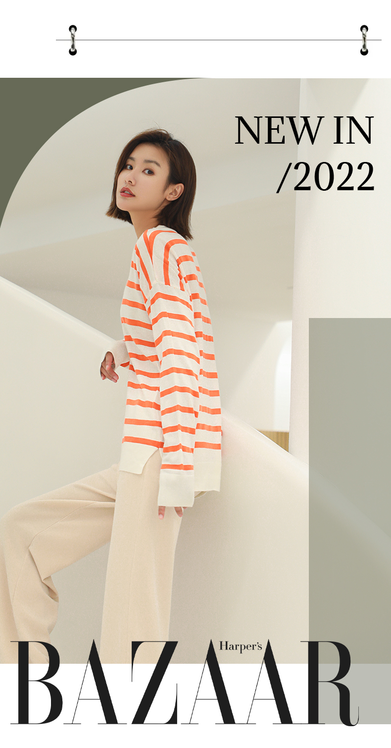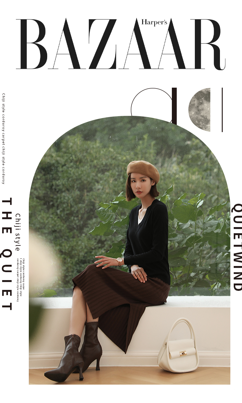 Happy's Bazzar芭莎秋冬新品套头长袖毛针织衫女条纹羊毛衫&V领拼接假两件羊毛针织衫