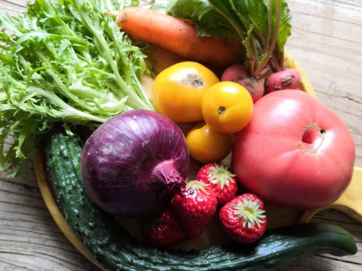 红色的:大西红柿、小番茄、樱桃小萝卜、草莓