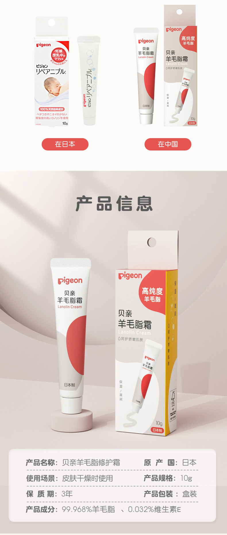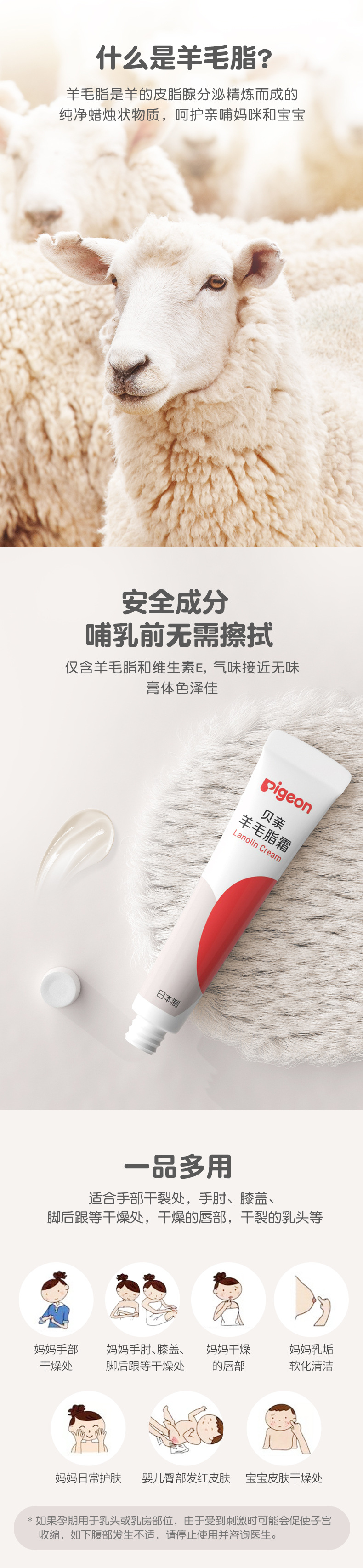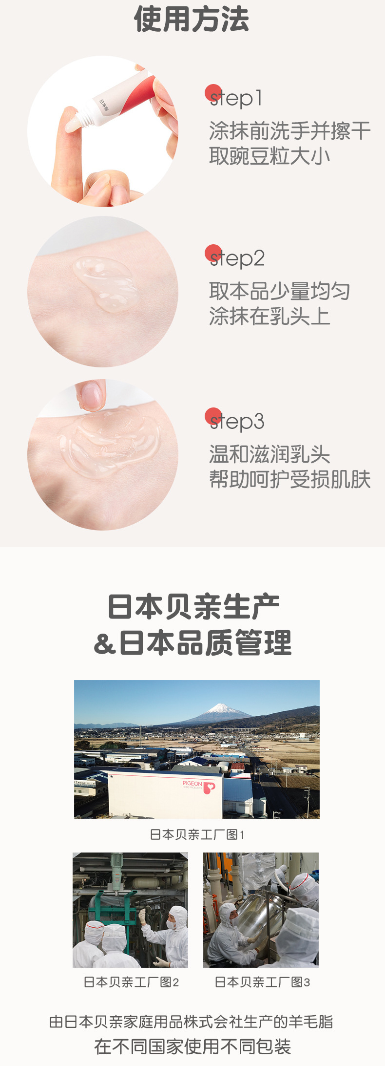 日本进口贝亲羊毛脂乳头保护霜滋润羊脂膏孕妇温和护理霜10g 1031535