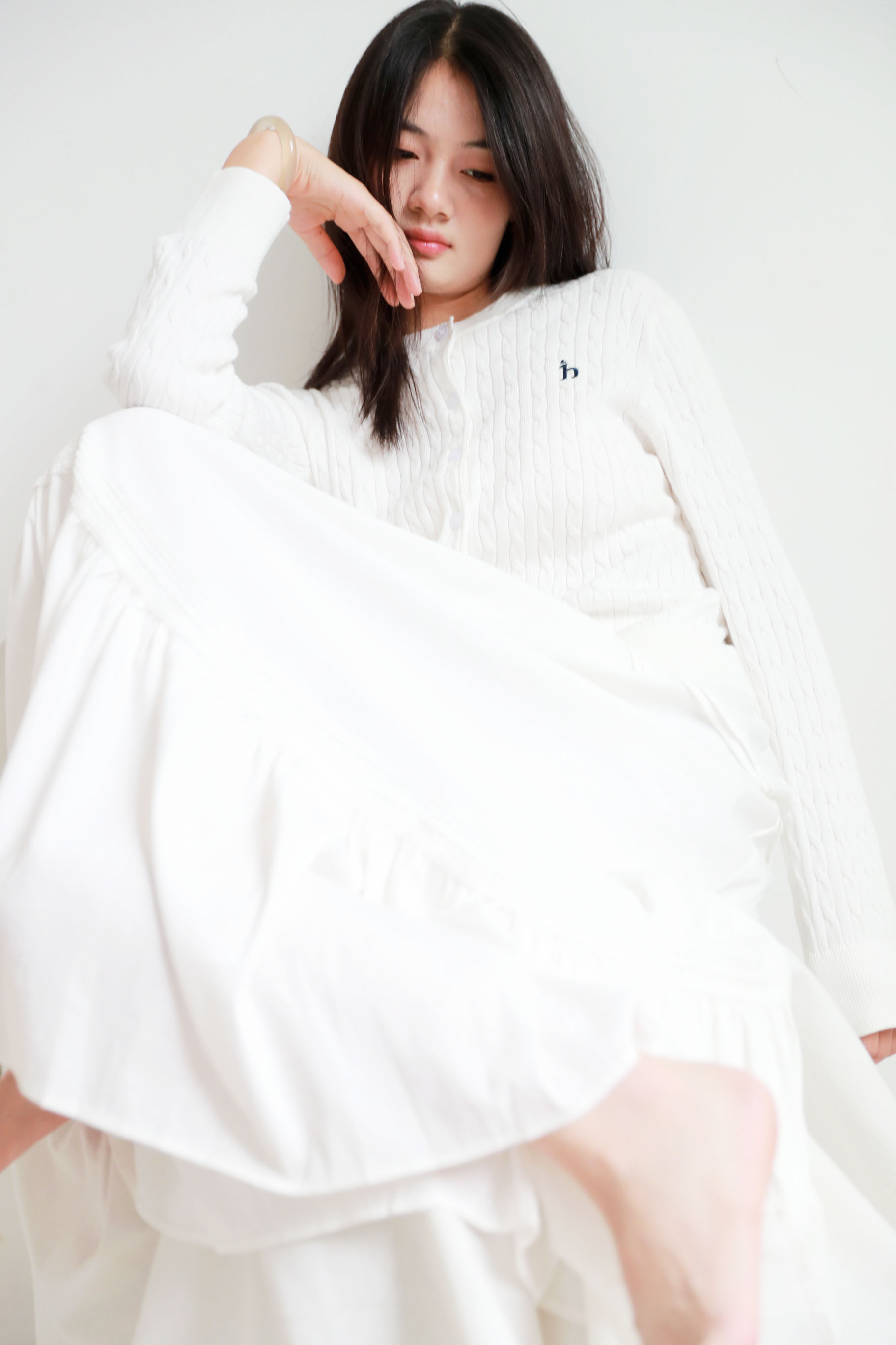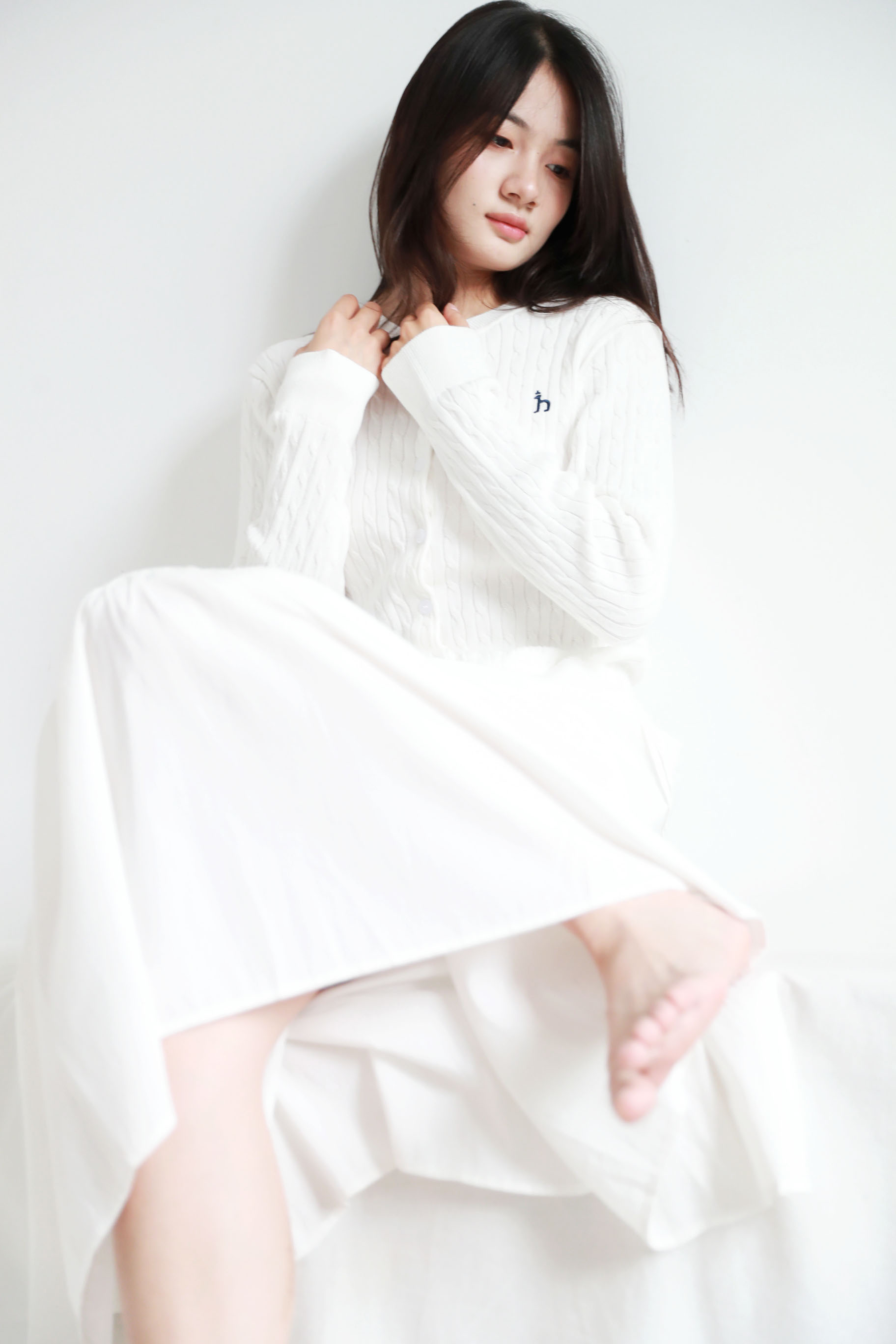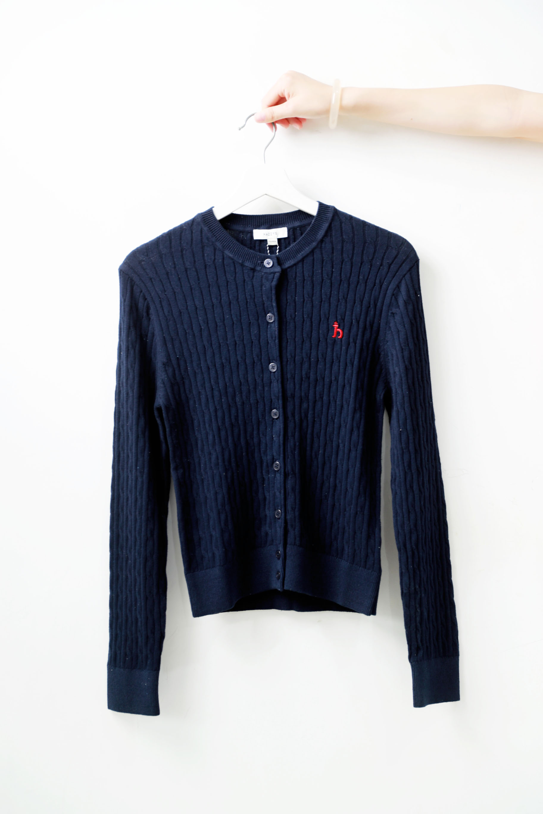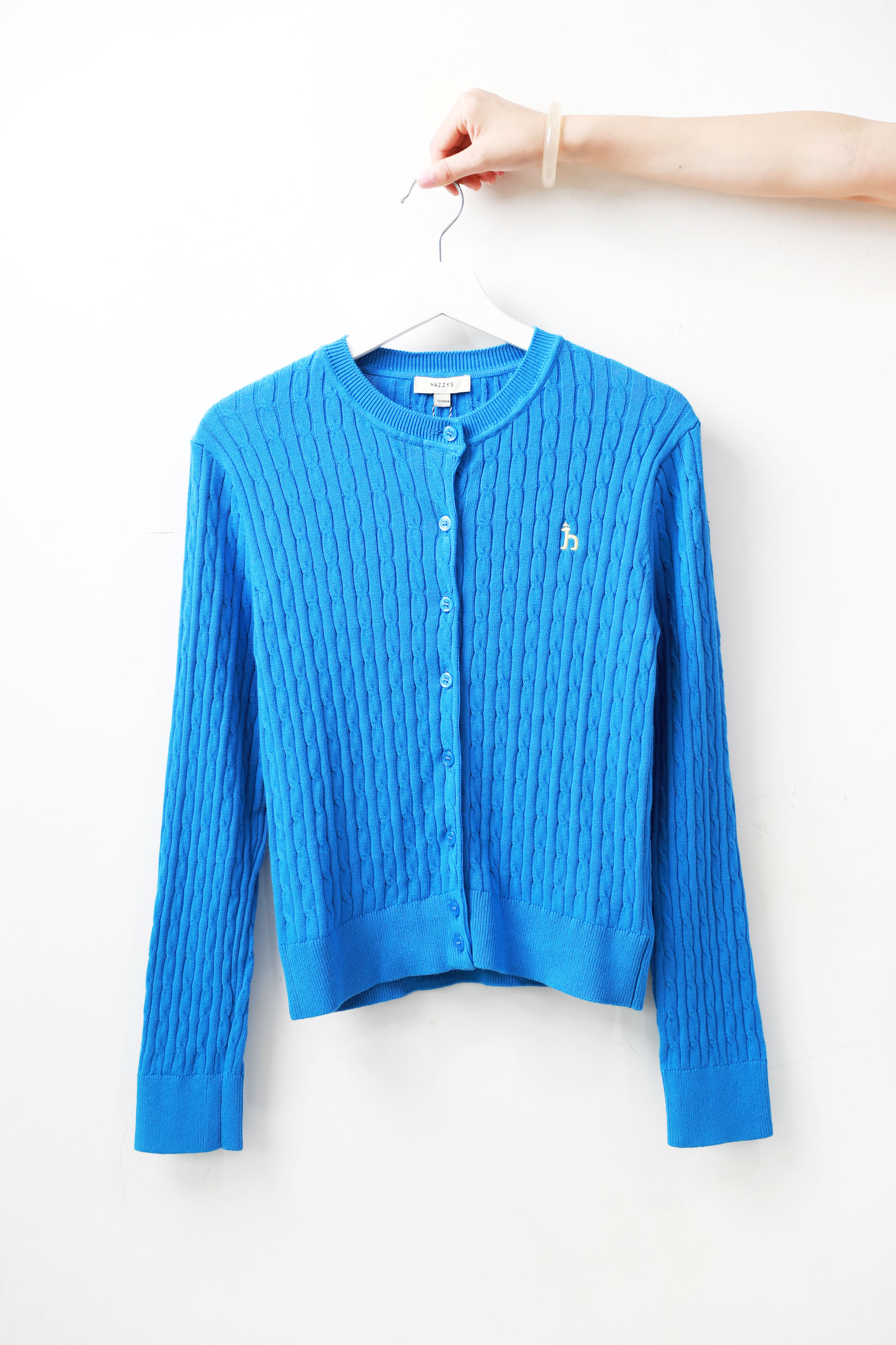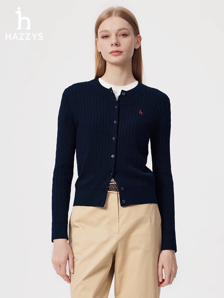 高尔夫绞花开衫,麻花针织毛衣。单排字母纽扣文艺针织衫C083060