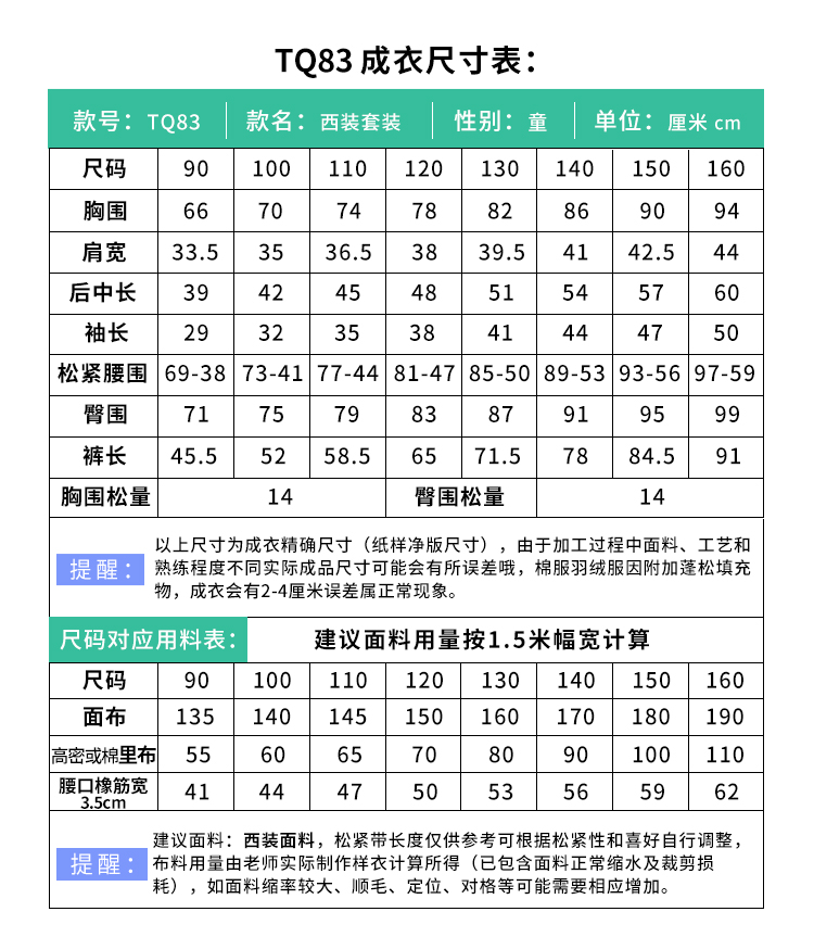 裁缝学苑TQ83 童装纸样儿童西装服装春款两件套上衣裤子衣服样板