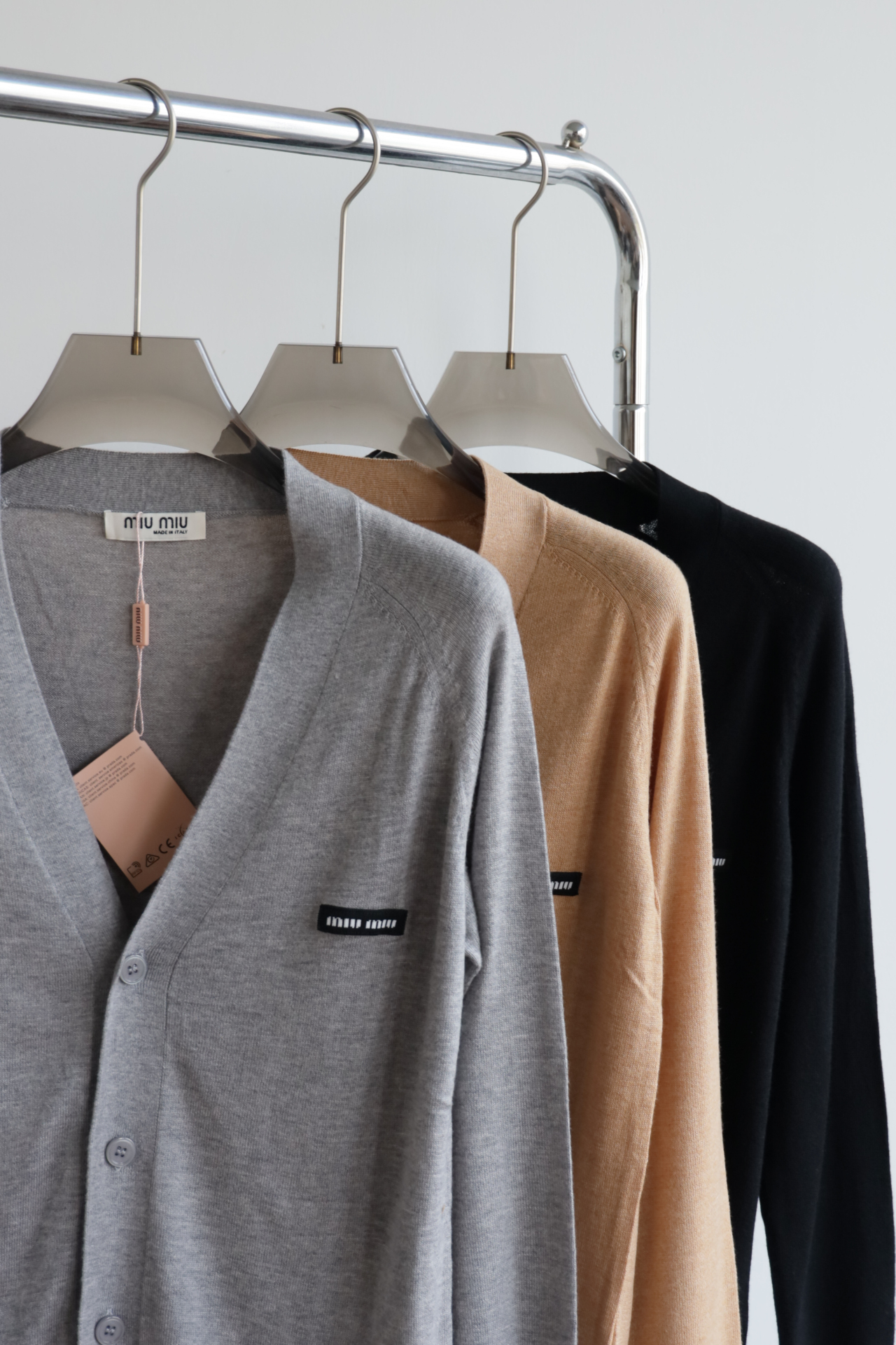 V领女款!M1U M1U 100羊毛纯色字母徽标休闲长袖针织衫