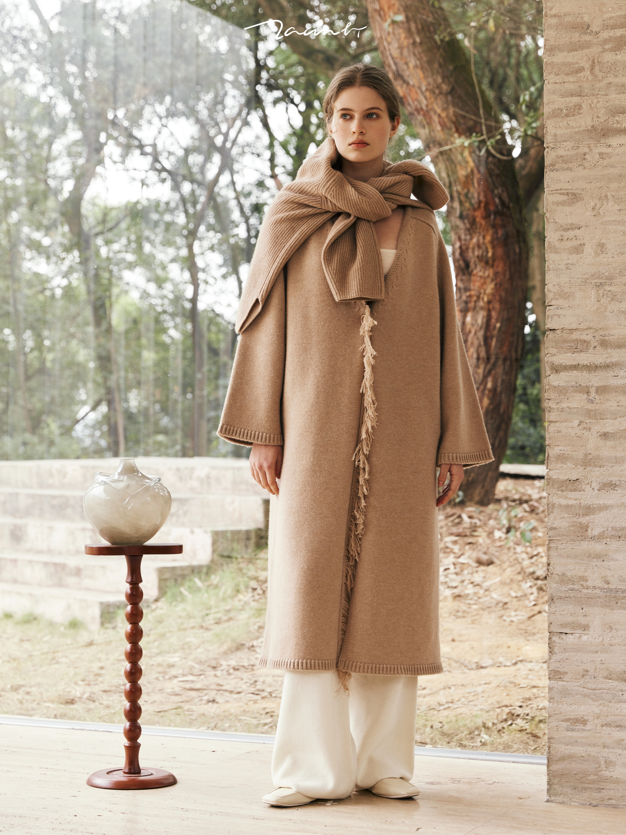ZAANLI|ZN20003-1 楸驼 灵动气质羊绒流苏长针织开衫