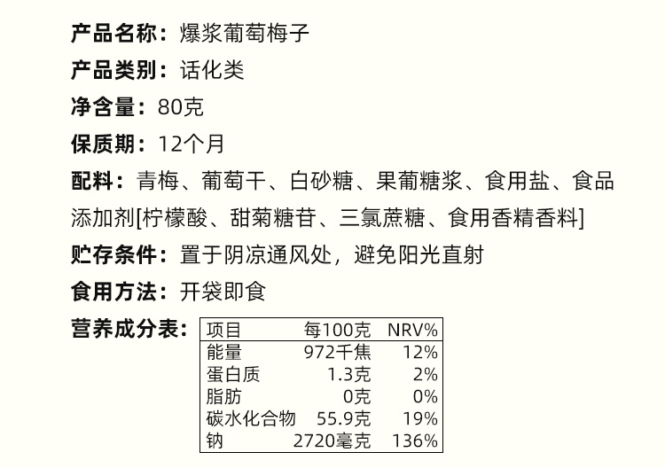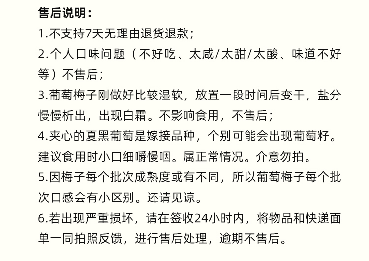3.因梅子每个批次成熟度或有不同,所以葡萄梅子每个批次口感会有小区别。还请见谅。
