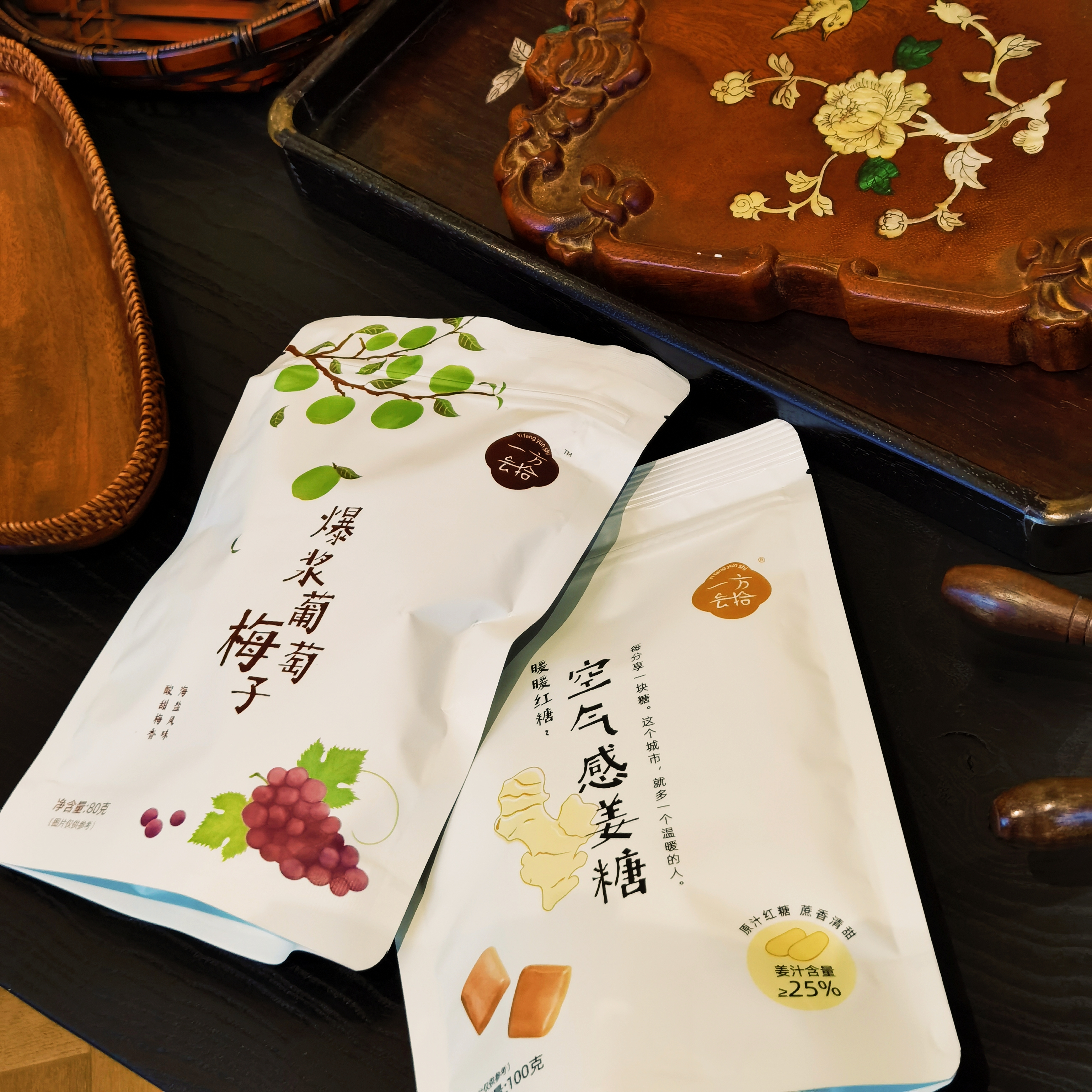 岩烧咖啡小饼干实在太好吃了,我就把「一方云拾」的其他吃的也扫了一遍,挖到两款特别好吃的小零食,云朵空气感姜糖和爆浆葡萄梅子!就也真的是停不下来那种,尤其是姜糖,是我吃过坠好吃的,之前上的就都不要看了,比不上!一下子吃了半袋,唉!葡萄梅子也很特别,可以用来夹小番茄,真的也是梦回纯K!