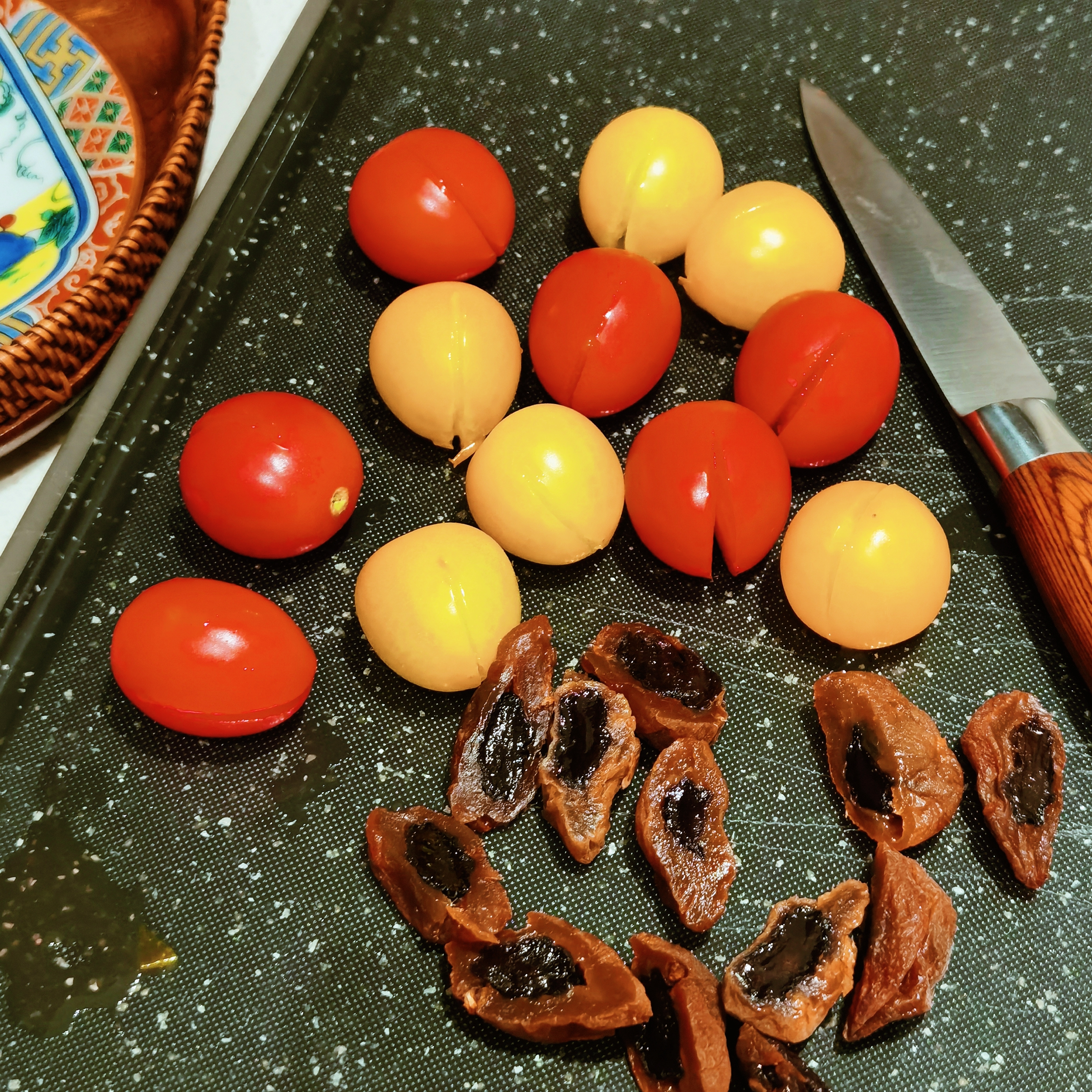 我本来就挺喜欢吃酸甜口的梅子的,特别是有点点反胃时,可以来一颗!当葡萄遇上梅子,就更是好吃了!恰到好处的甜,刚刚好的酸 ,还有一丝丝海盐的咸,味觉层层递进,让人欲罢不能。葡萄充分吸取了梅子汁,自然果香交替,酸甜解腻,微咸生津,直接爆浆!而且,不仅能直接吃,还能夹水果哦!最经典的就是夹小番茄,之前在纯K就是必点的,自己做的自然更好吃,毕竟,不是普通梅子呀!我还准备试试自制饮料,用咸柠檬加它,再泡无糖雪碧,啧啧啧,确实不用出门了!