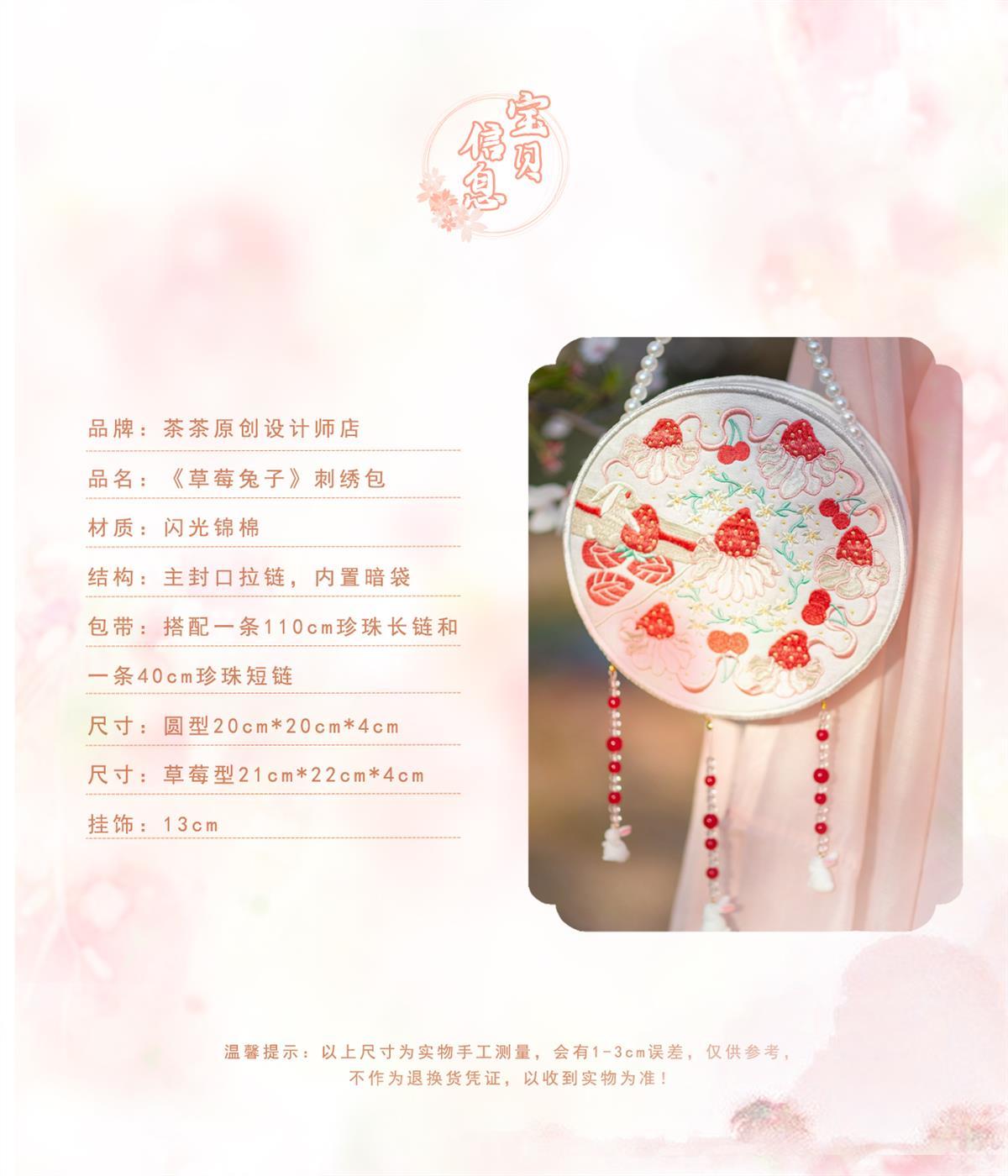【草莓兔兔闺蜜包】茶茶原创古风包汉元素手工刺绣汉服包夏斜挎包