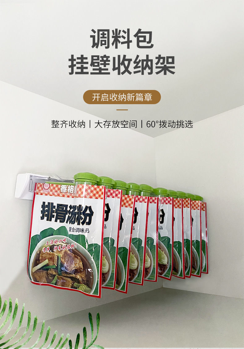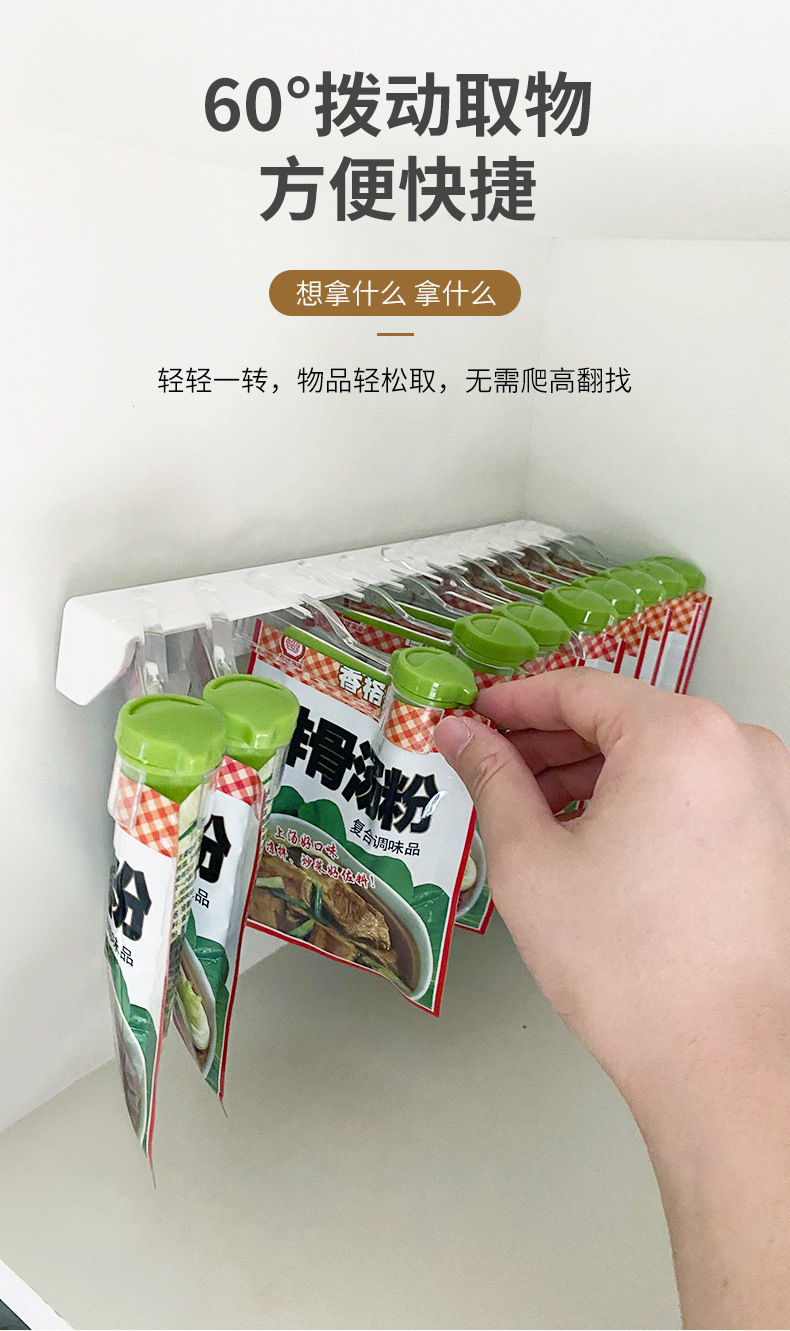 调料包置物架 I 免打孔壁挂式调料袋收纳架封口夹旋转整理架