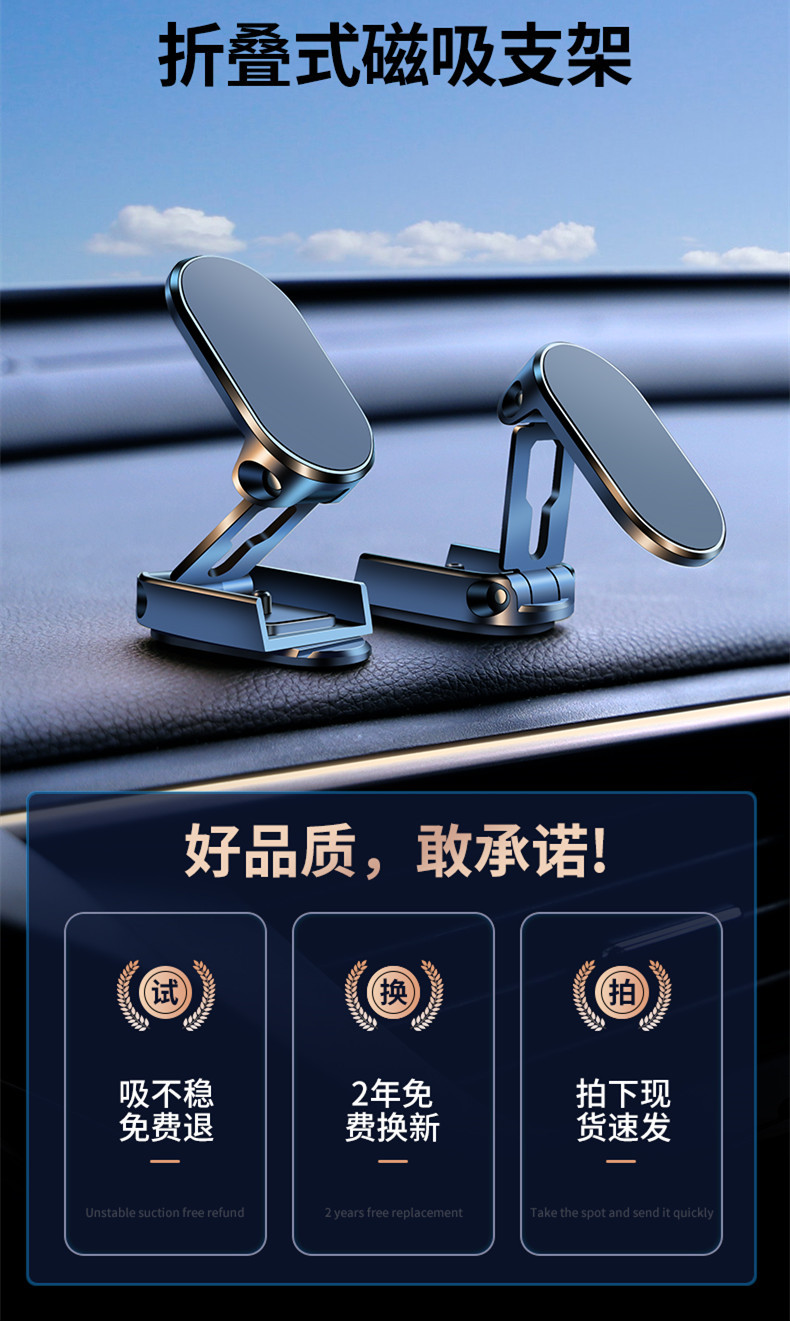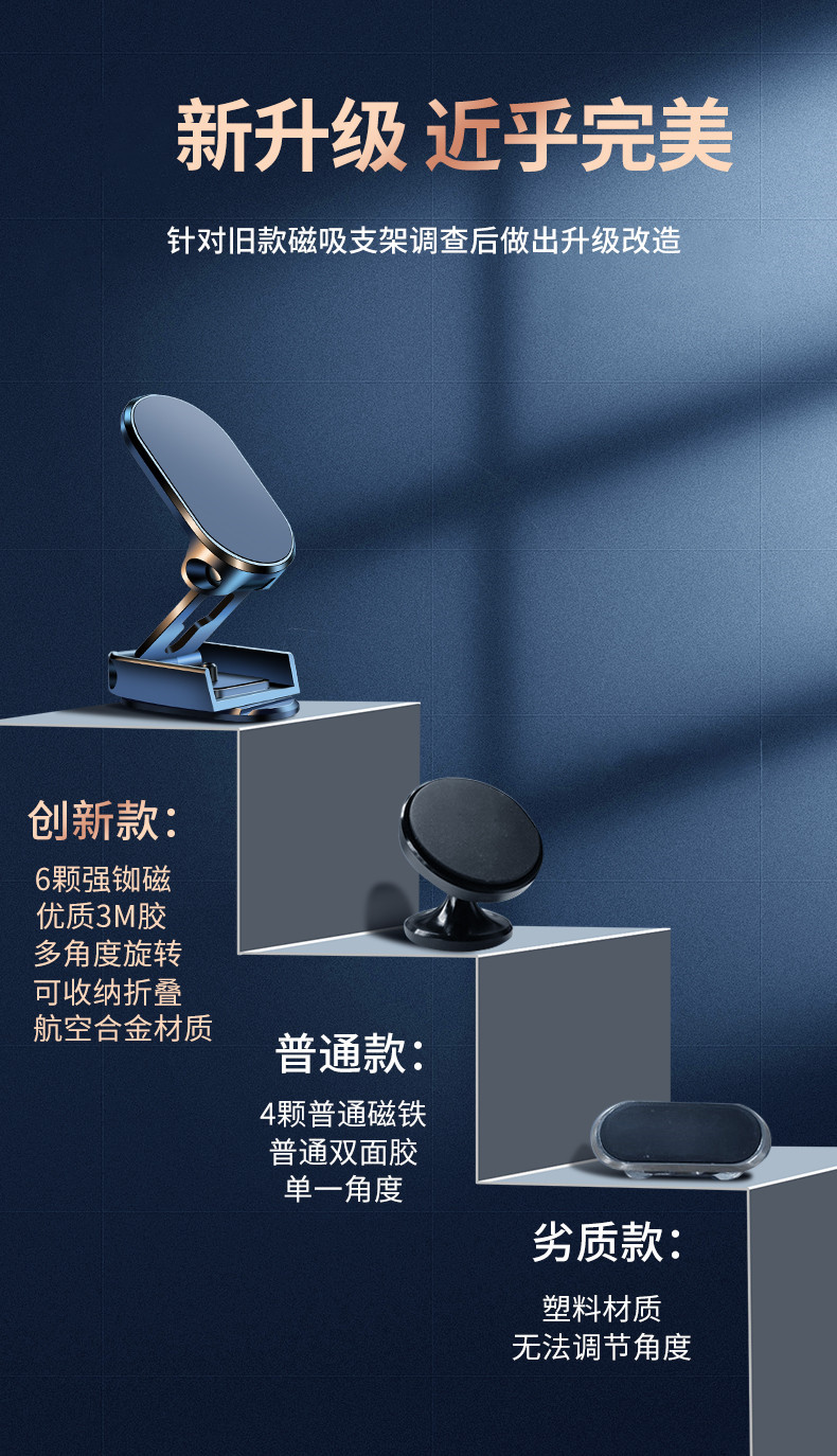 【200倍强磁 720度旋转 可折叠伸缩】可旋转磁吸支架 车家两用 升级6颗铷磁铁 优质3M胶
