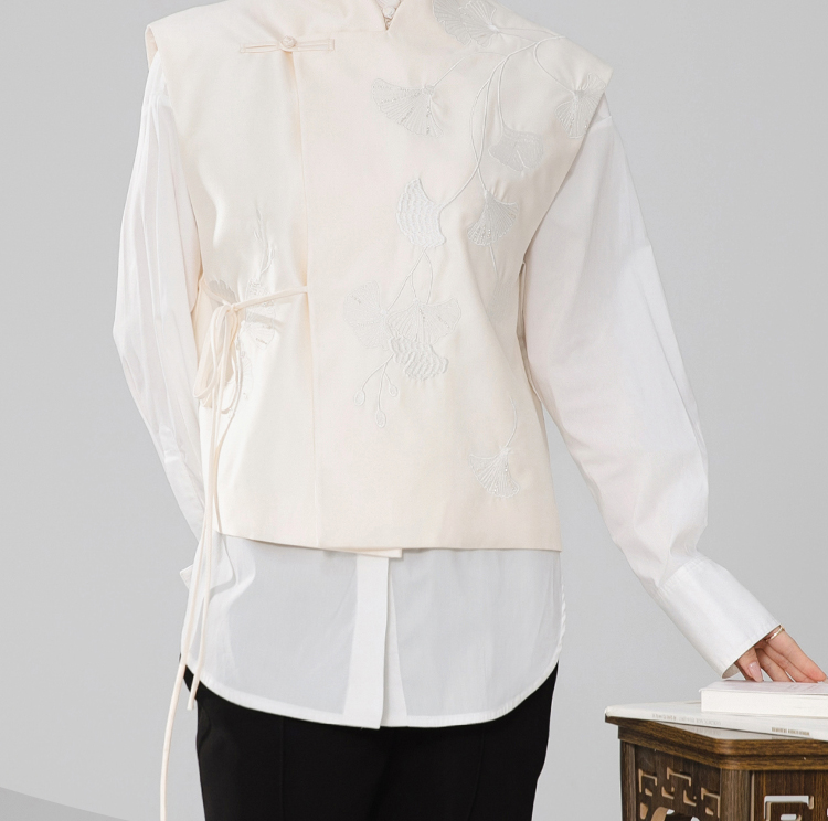扶摇 中式杏色马甲女系带背心2026春新款上衣高级感无袖外套
