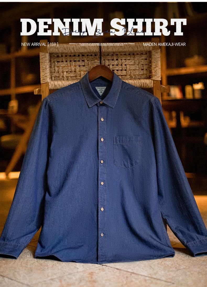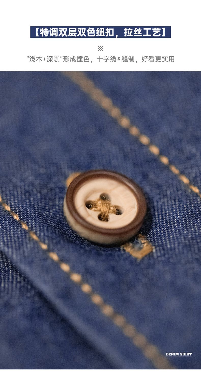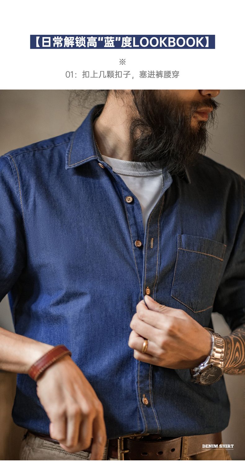 工装优选美式复古单口袋工装牛仔衬衫丹宁休闲长袖修身衬衣男春季