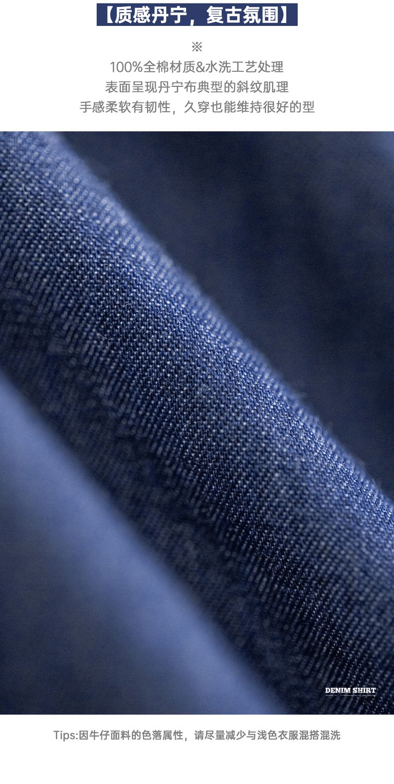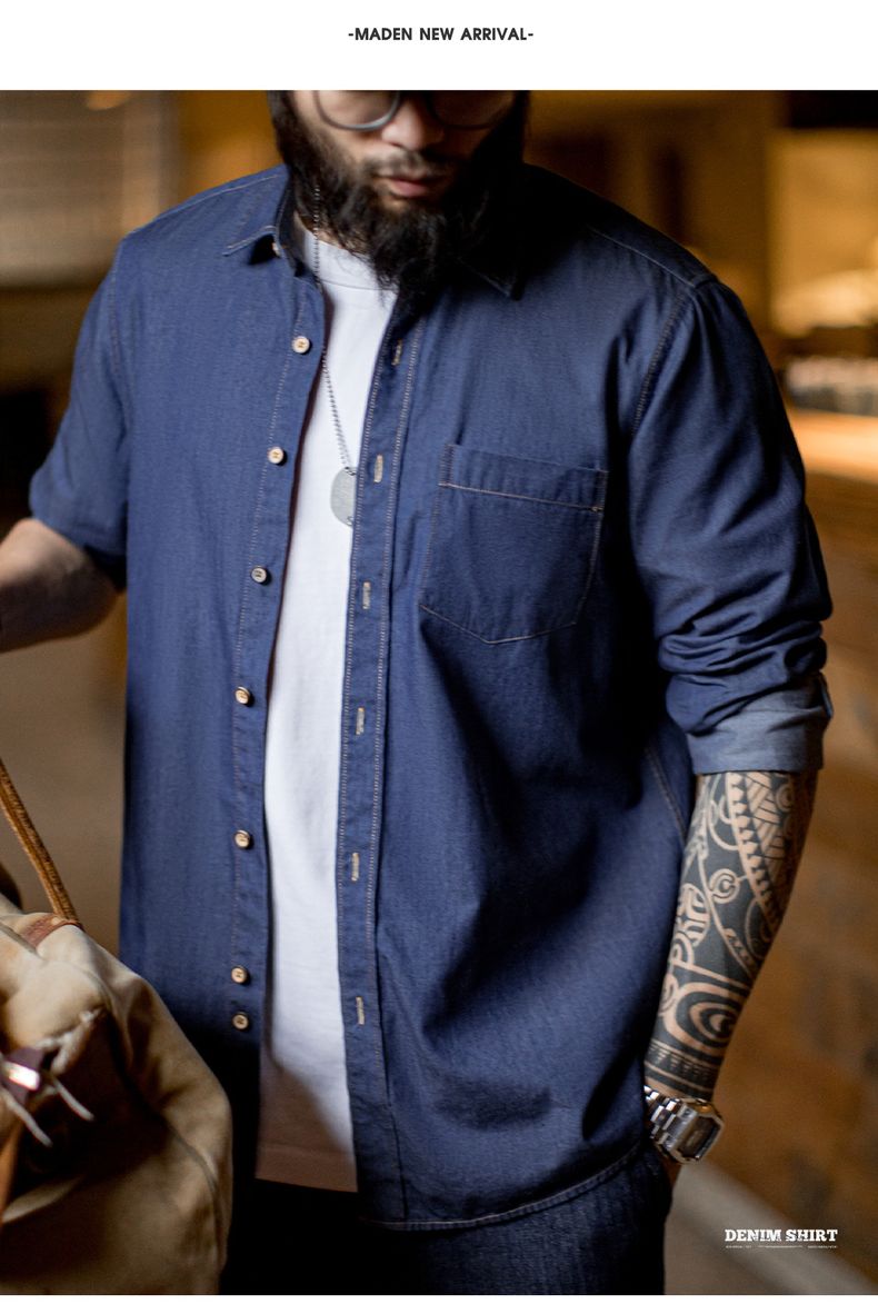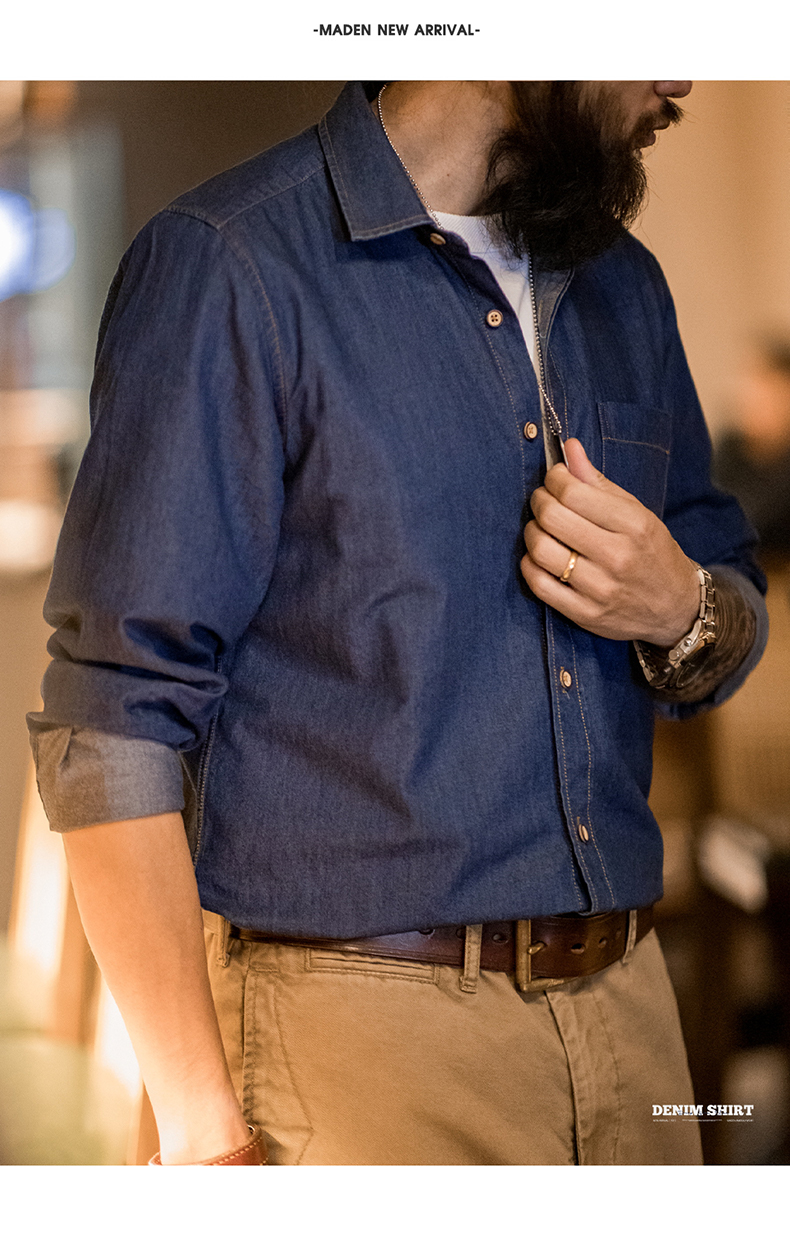工装优选美式复古单口袋工装牛仔衬衫丹宁休闲长袖修身衬衣男春季