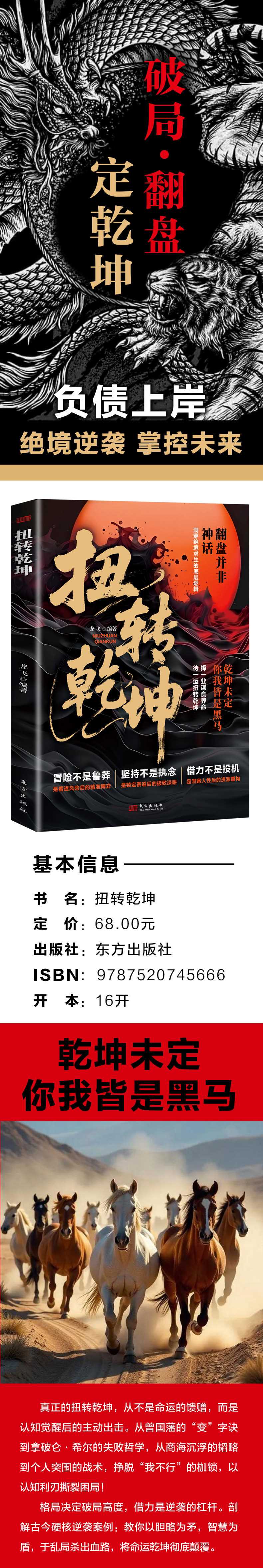 《扭转乾坤》是作者结合古今中外逆袭案例与现实经验,为身处困境、渴望破局的读者创作的实用指南。作者从逆境心态、破局观念、格局视野、落地方法、韬略智慧等角度出发,指导读者看清困境本质,掌握反败为胜的方法。书中大量真实的企业逆袭、个人突围案例,点出了;认知决定破局高度这一核心,给出了摆脱困顿、实现人生翻盘的具体路径。