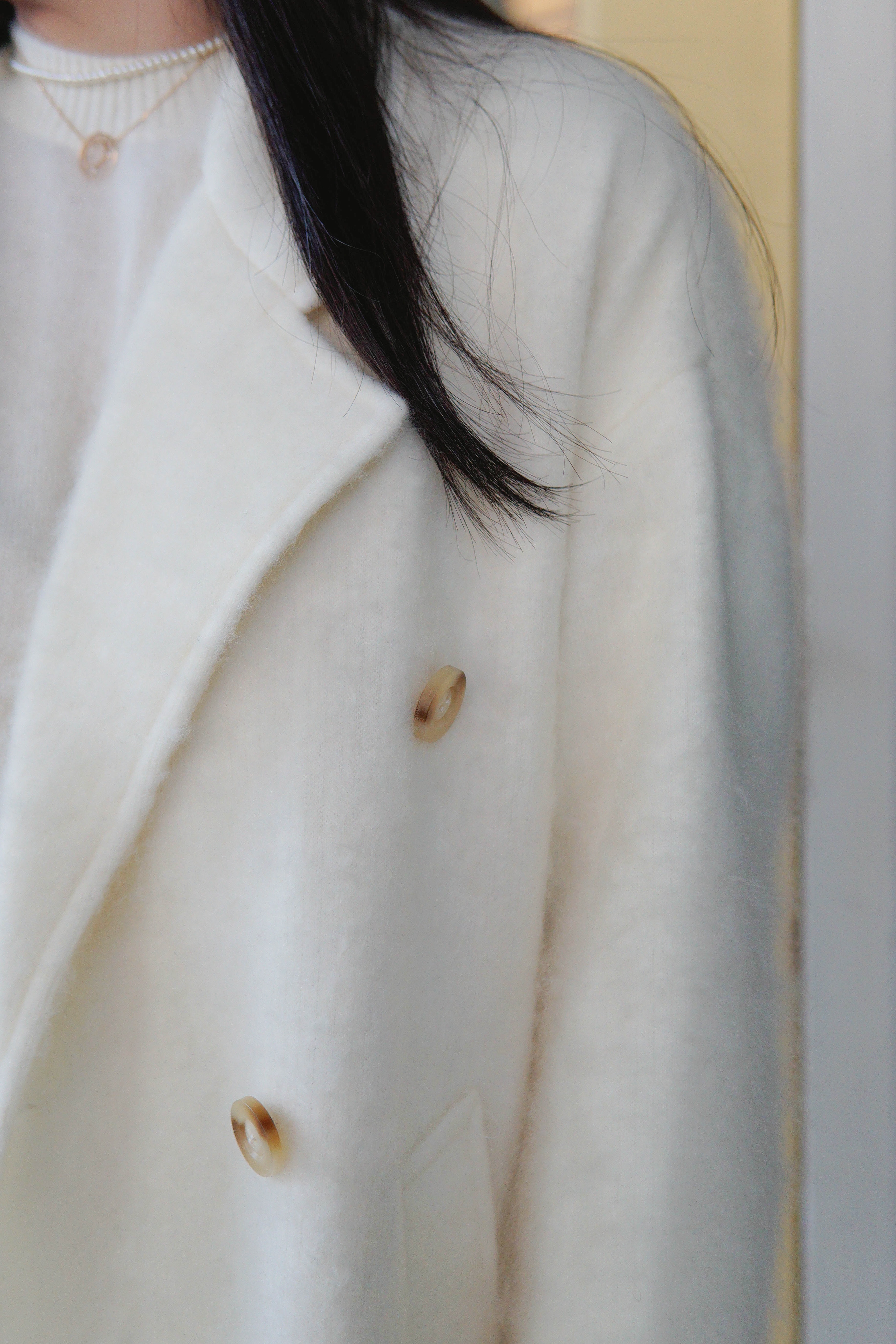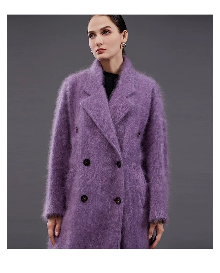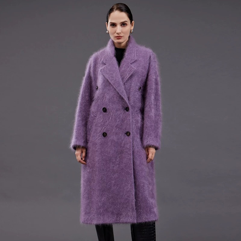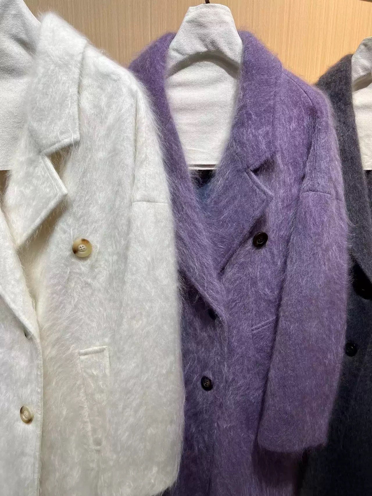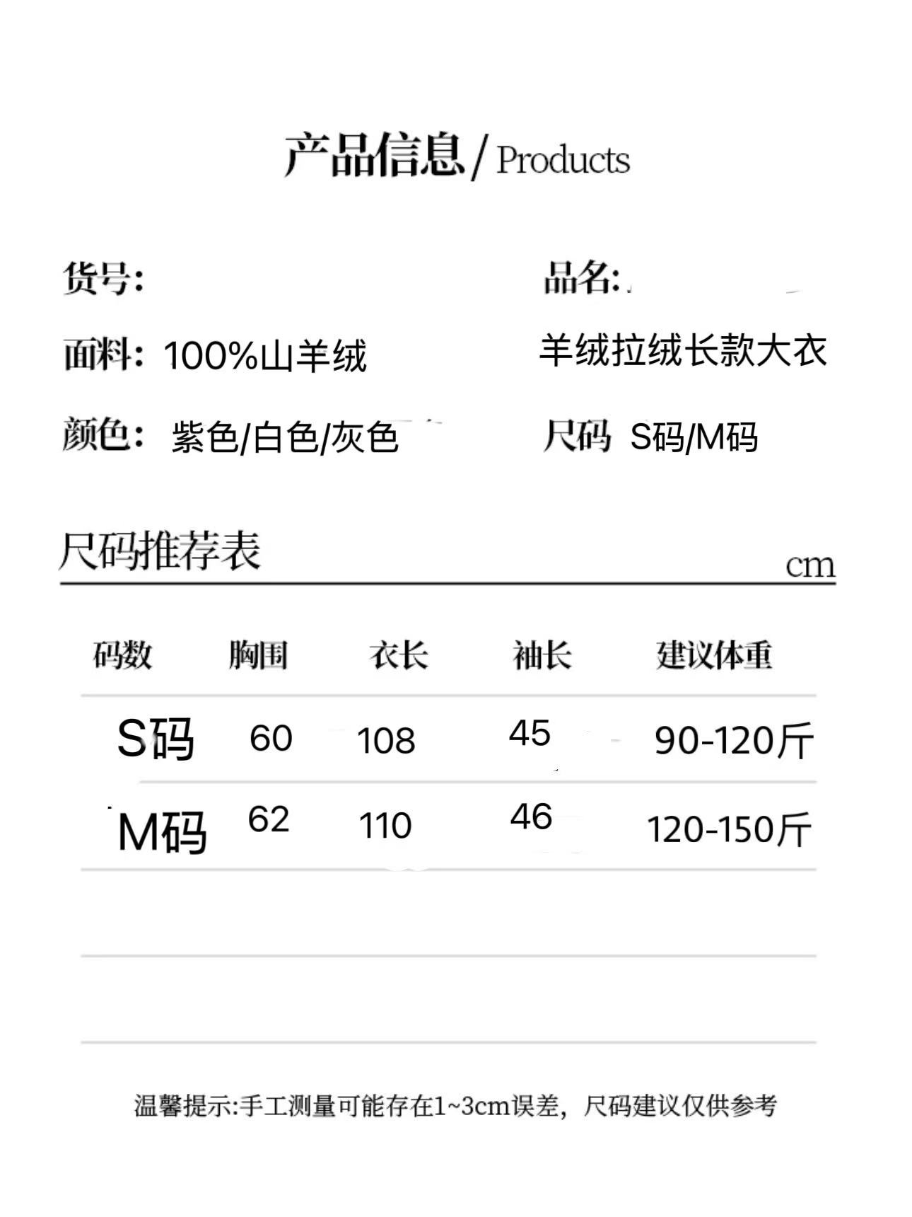 「Lo*o Pi*na同款」红莲拉绒羊绒长款翻领大衣 白色/紫色/灰色(爆款!预售15天内发货)