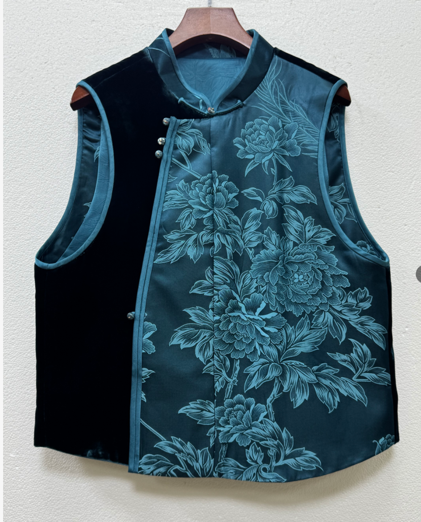 盛唐婧 | 轻奢时尚新中式老缎拼丝绒马甲