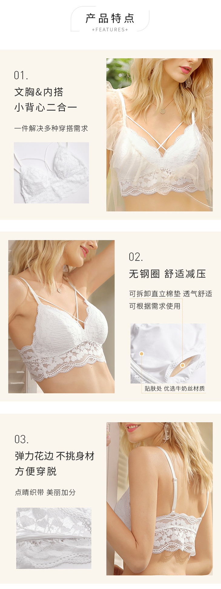 奶糖派大罩杯三角杯超薄透气系带无钢圈大胸显小棉垫微醺大胸内衣