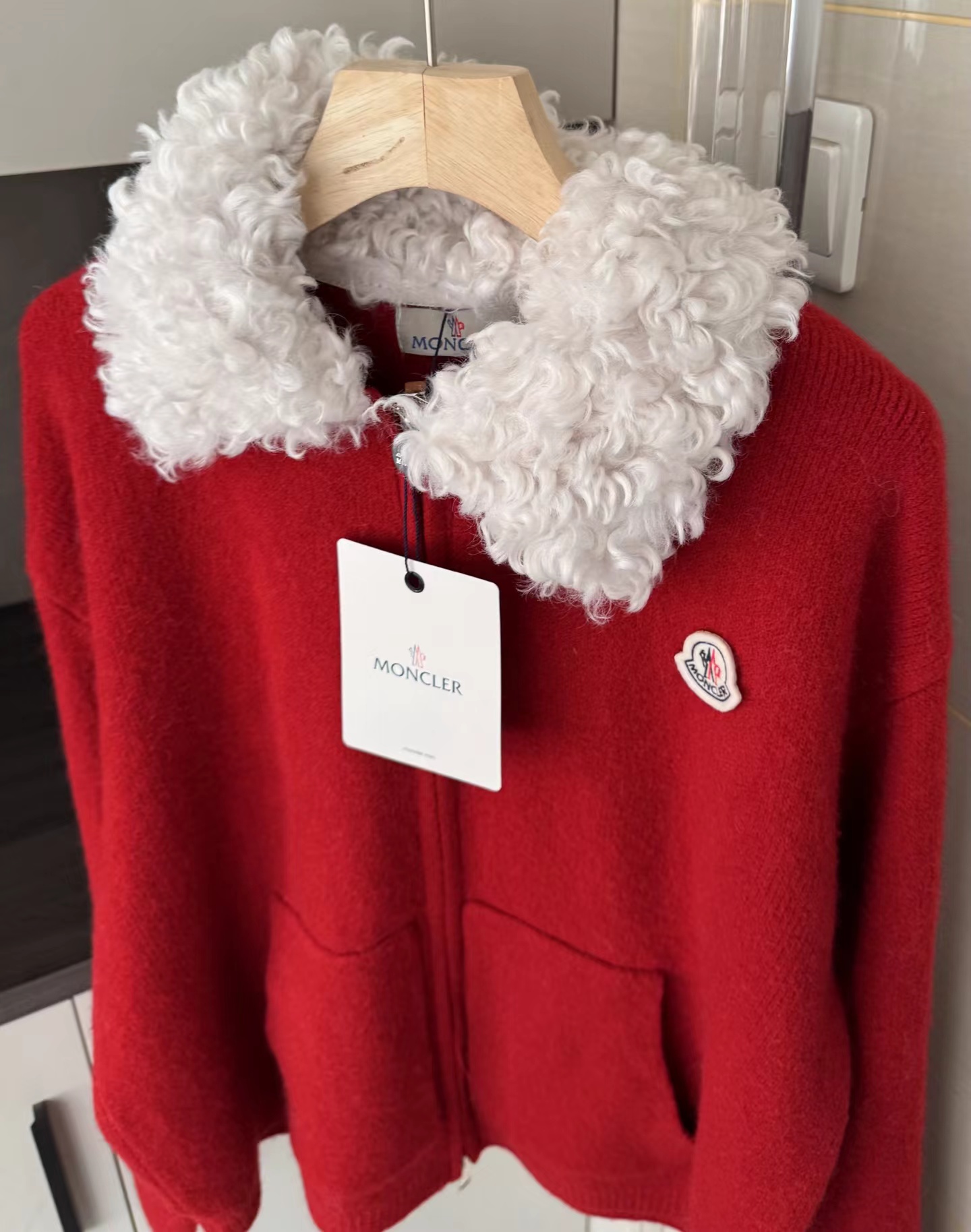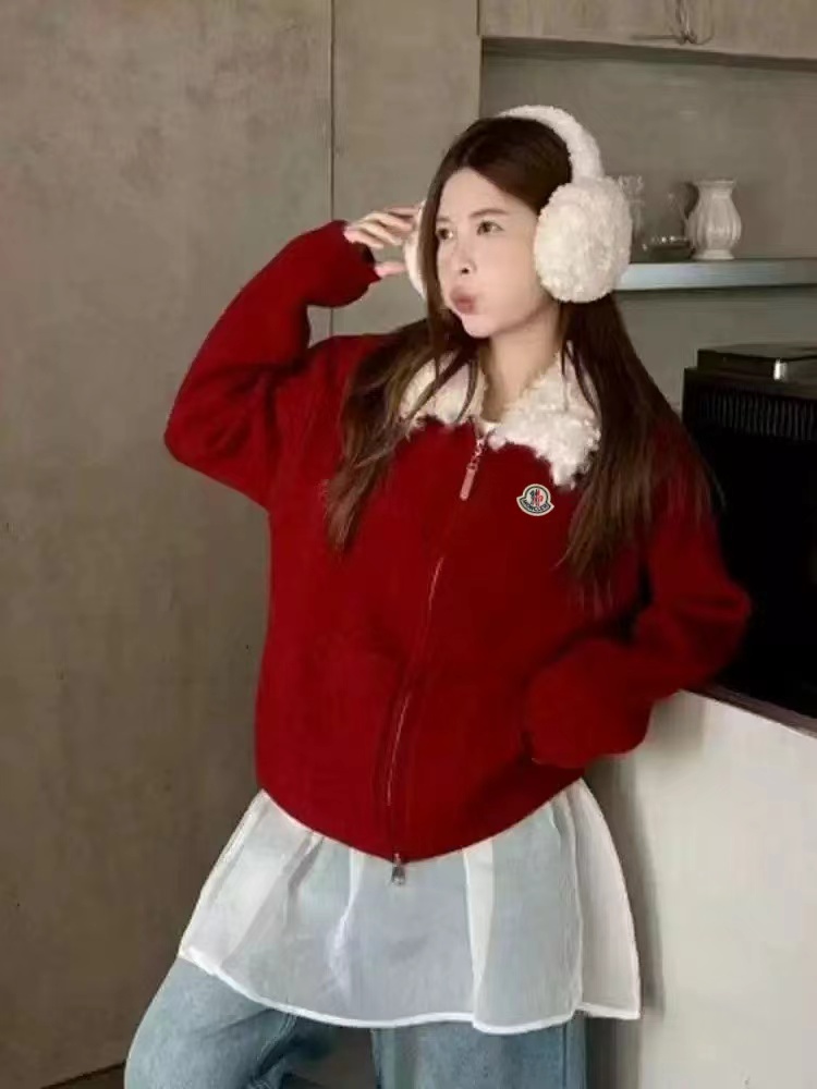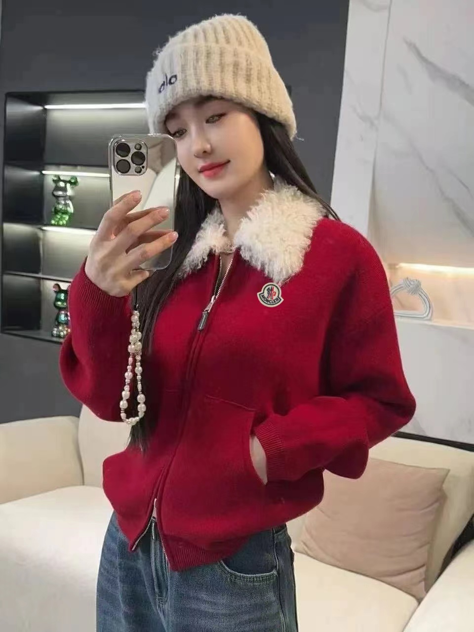 26SS新年红毛绒领针织开衫宽松落肩版型,对各种肩型和身形都有高包容度,穿着无束缚感;短款剪裁贴合腰线,搭配高腰下装能优化身材比例,打造利落线条。领口拼接白色毛绒饰边,柔软蓬松的质感与正红色针织形成撞色,自带节日氛围与轻she感;全拉链开合设计,可自由调节领口松紧,拉合穿保暖、拉开穿随性,实用性强左胸位置缀有品牌徽章刺绣标,成为视觉点睛之笔,提升单品辨识度;衣身两侧设有立体插袋,兼顾装饰性与实用性,方便放置小物件。主体选用高支数羊毛混纺针织面料,触感软糯亲肤,保暖性优异且不易起球;领口毛绒为仿狐狸毛材质,蓬松不飞絮,亲肤无刺激,易打理。面料带有适度弹性,回弹性好,多次穿着不易变形,适配秋冬季节日常穿着与叠穿需求。整体融合节日氛围感与休闲街头风,下装搭配牛仔阔腿裤、黑色皮裤可打造酷飒日常造型,搭配红色半身裙、白色直筒裤则更契合新年、聚会等场景;也可内搭打底衫,外搭羽绒服或大衣作为叠穿层,丰富穿搭层次。