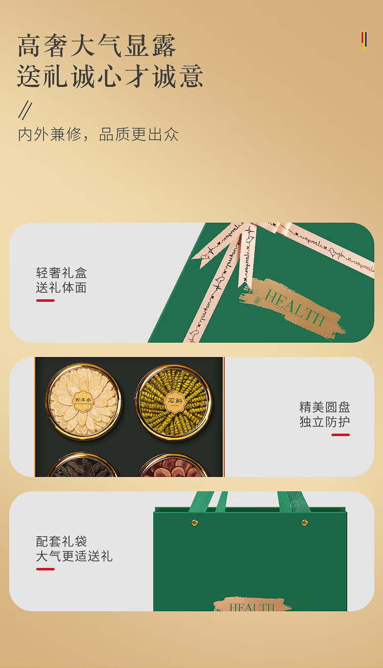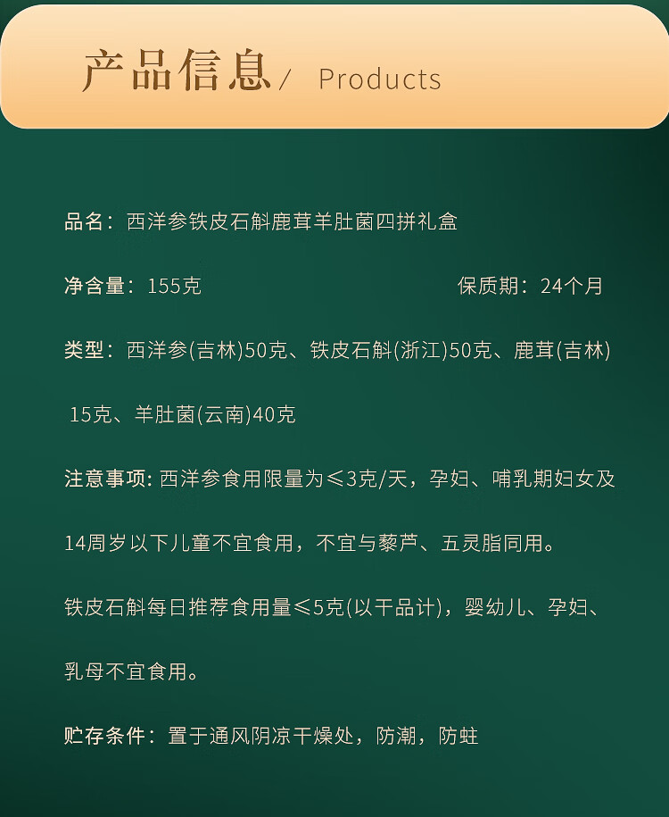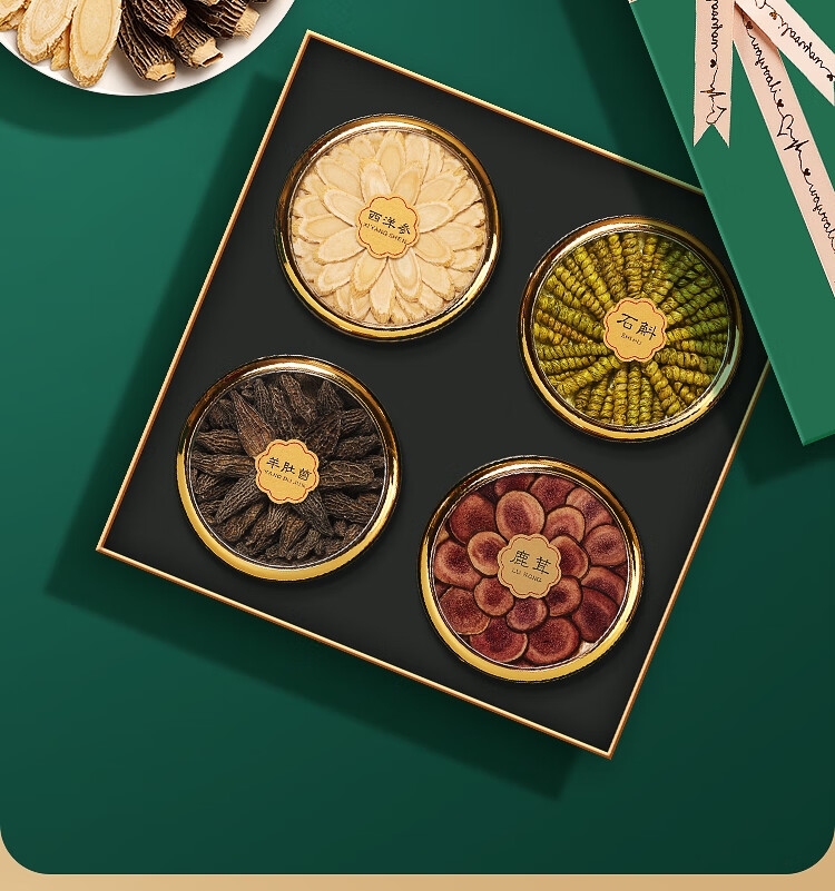 福东海 西洋参长铁皮石斛鹿茸羊肚菌四拼礼盒155克 中秋节礼物品节日送长辈父母滋补品礼盒企业员工