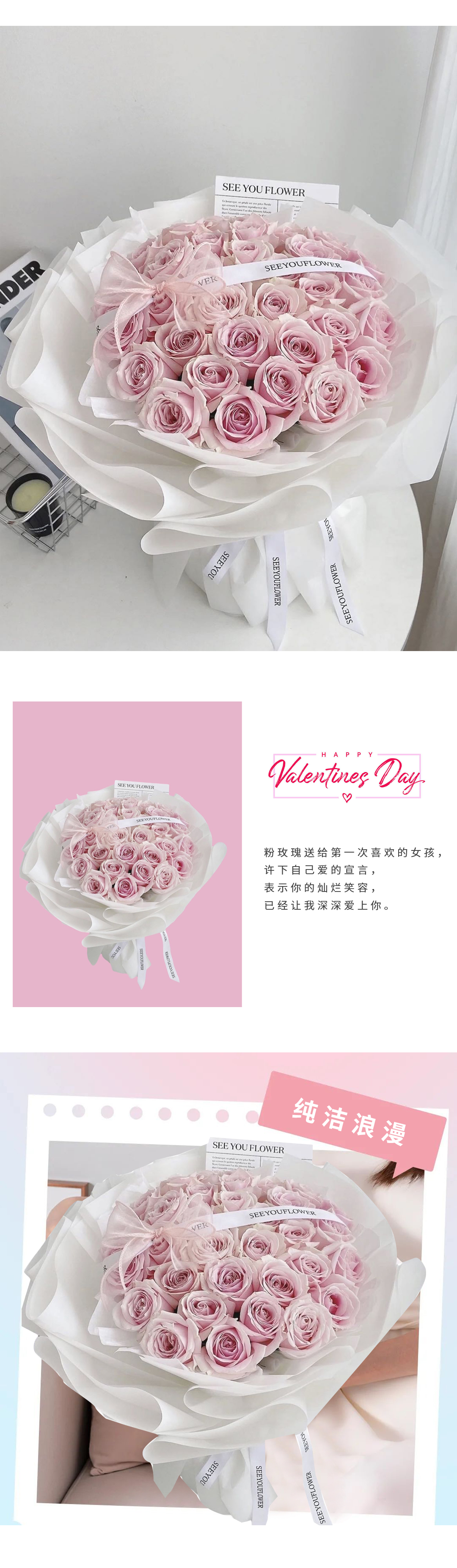 33朵52朵粉公主玫瑰韩式花束