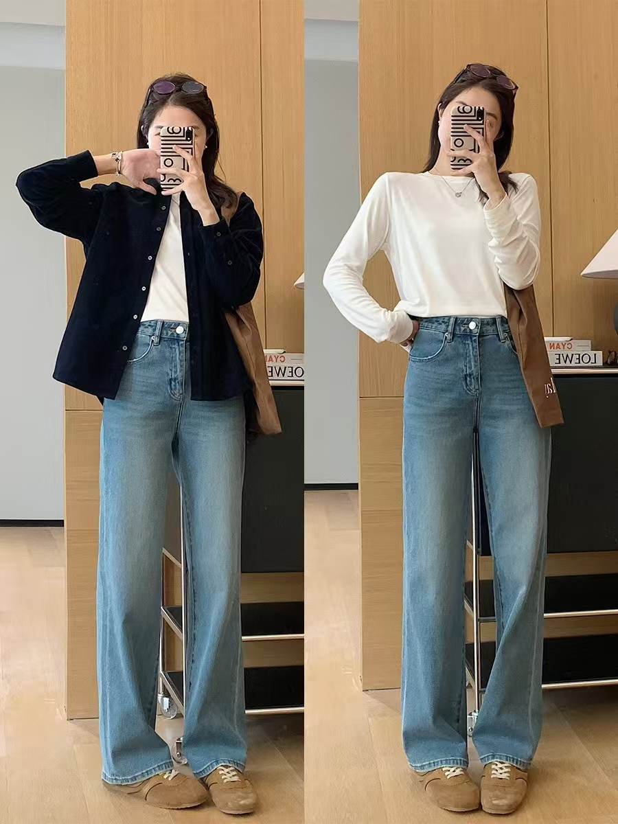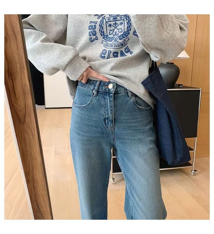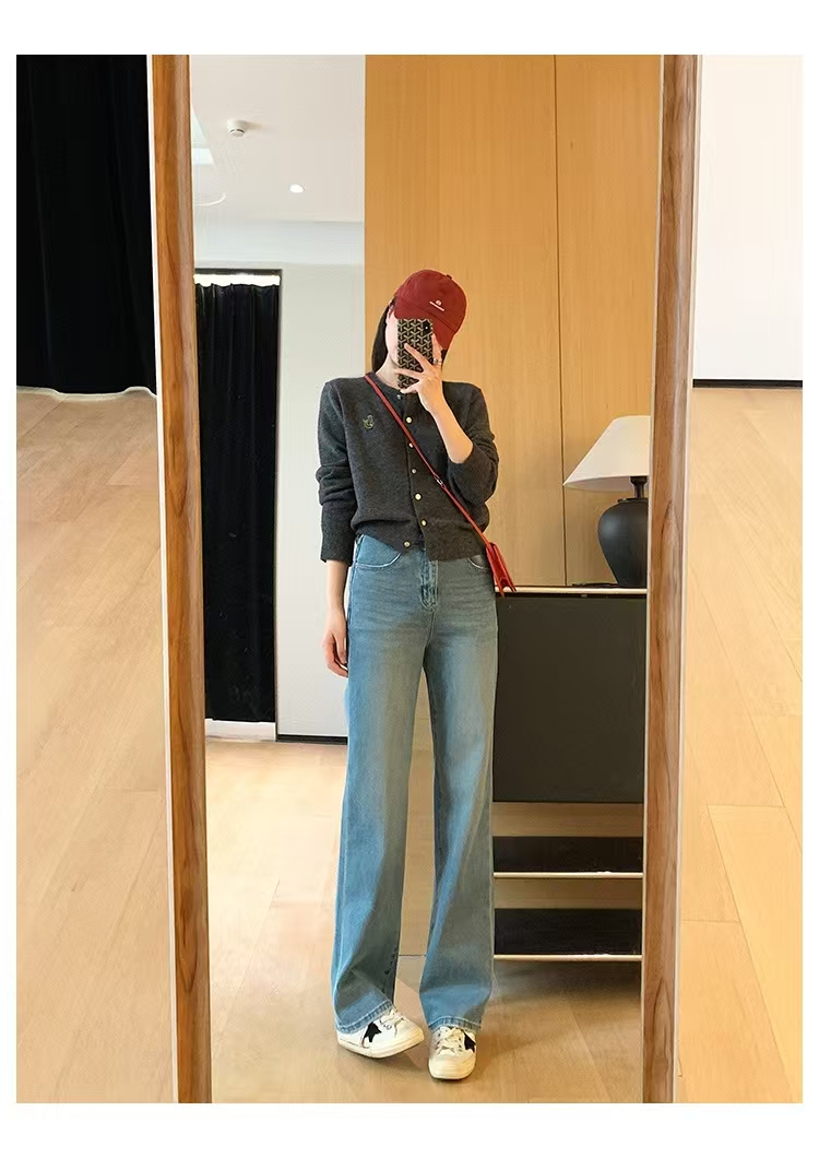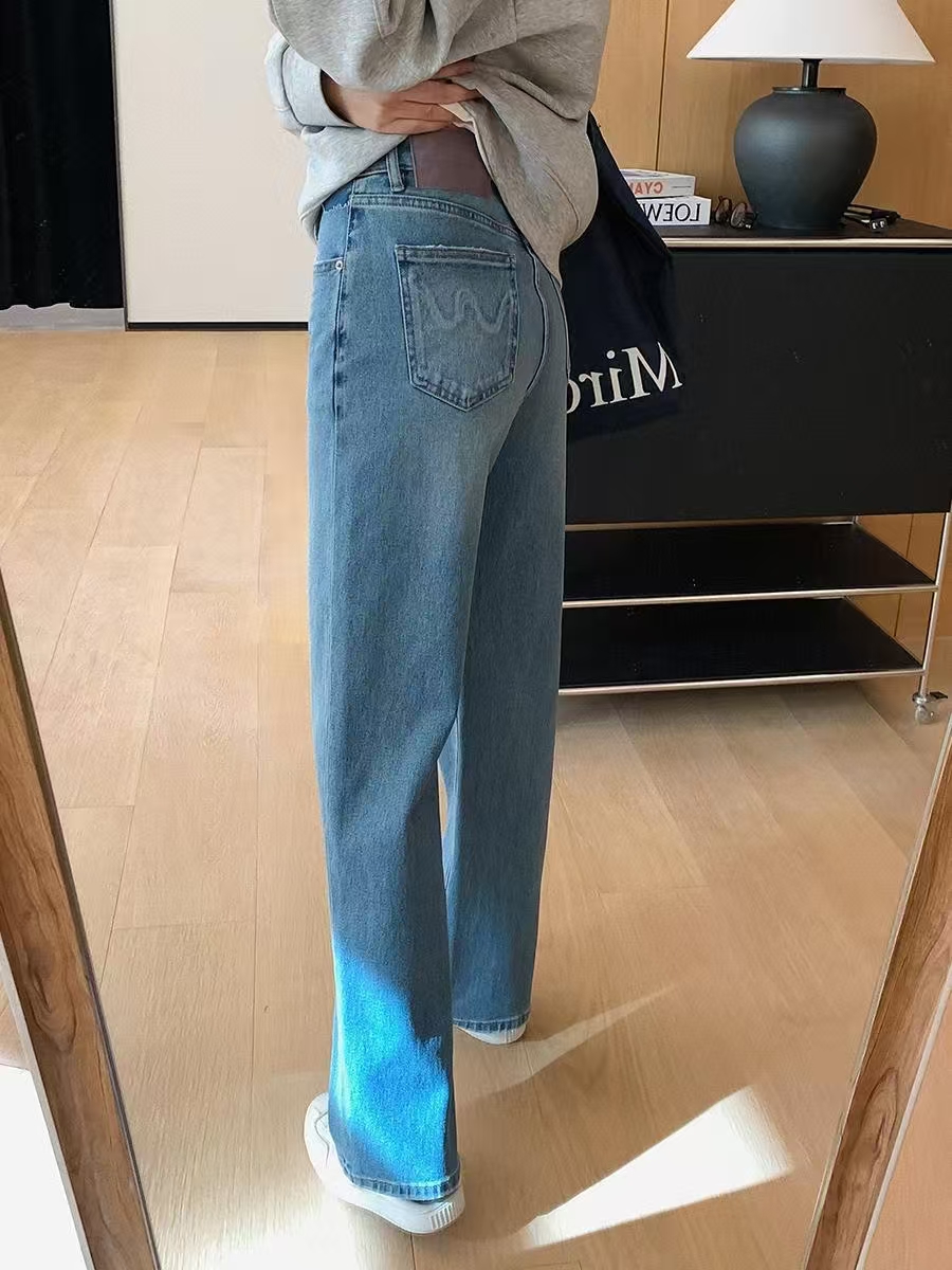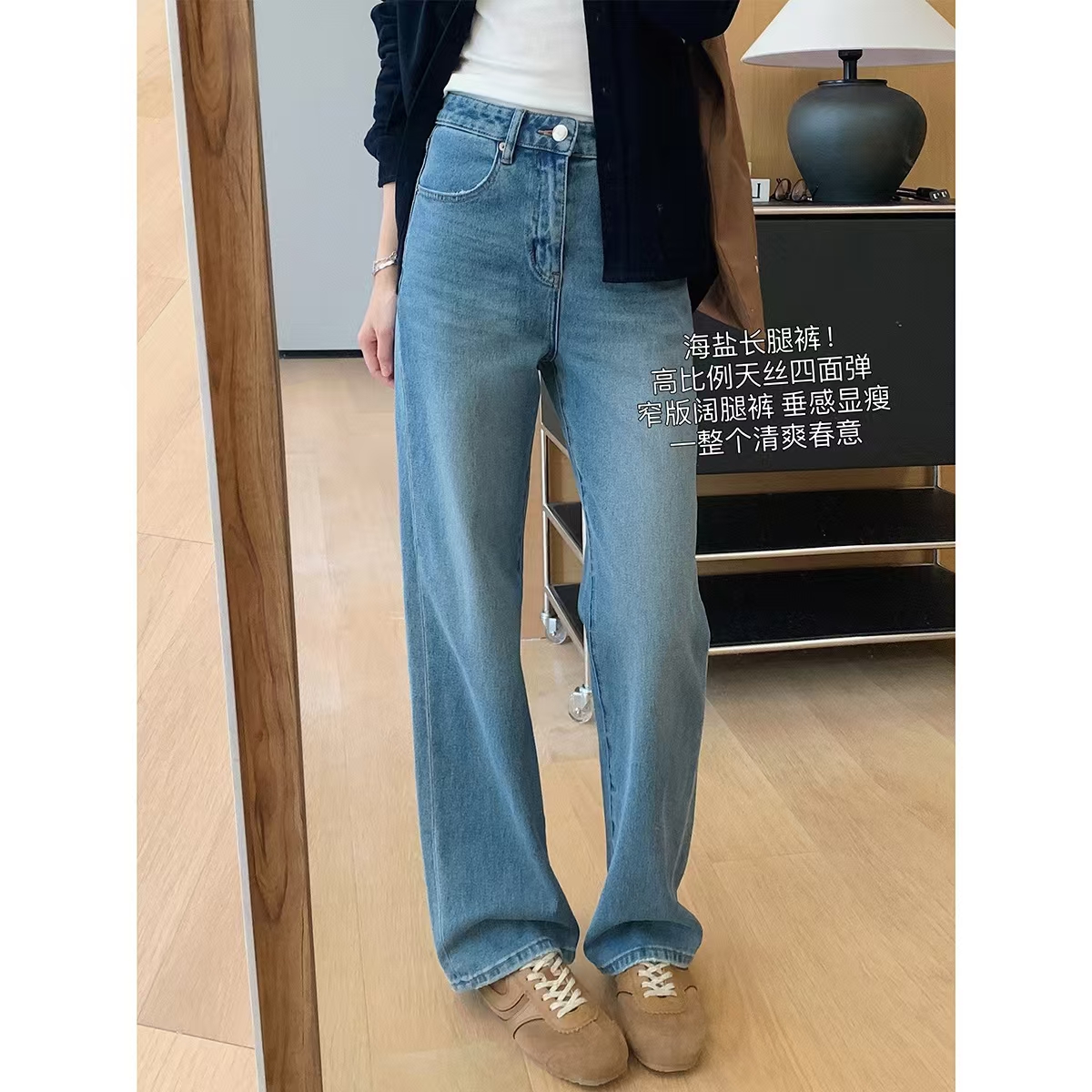 裤腿窄板微阔腿,比宽松阔腿版显腿细,高腰设计,提高腰线,优化出高挑的身段比例。低饱和度更适合春天~