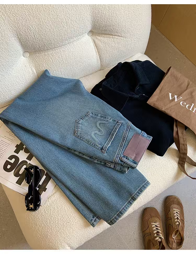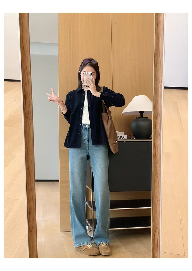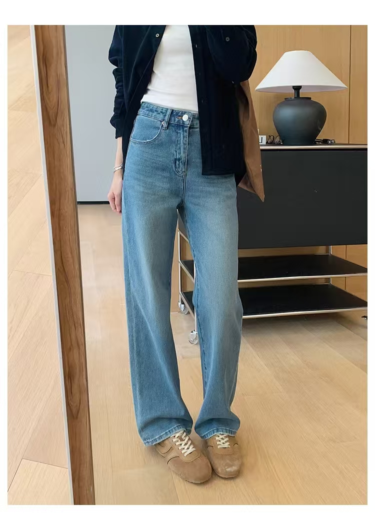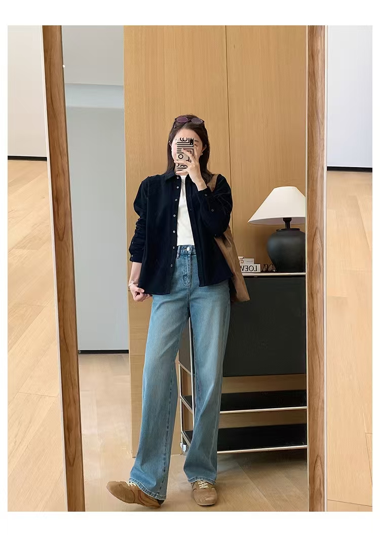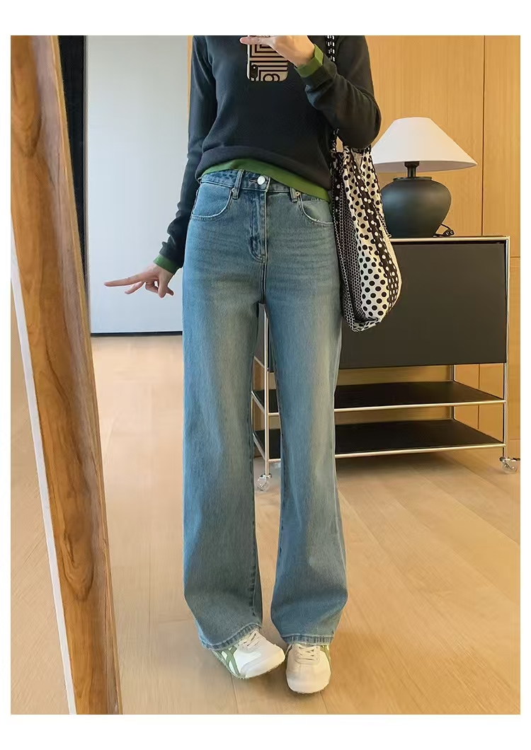 裤腿窄板微阔腿,比宽松阔腿版显腿细,高腰设计,提高腰线,优化出高挑的身段比例。低饱和度更适合春天~