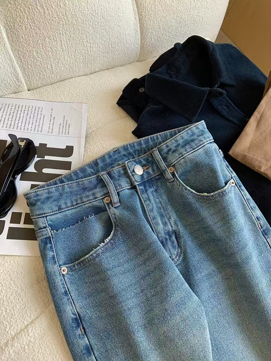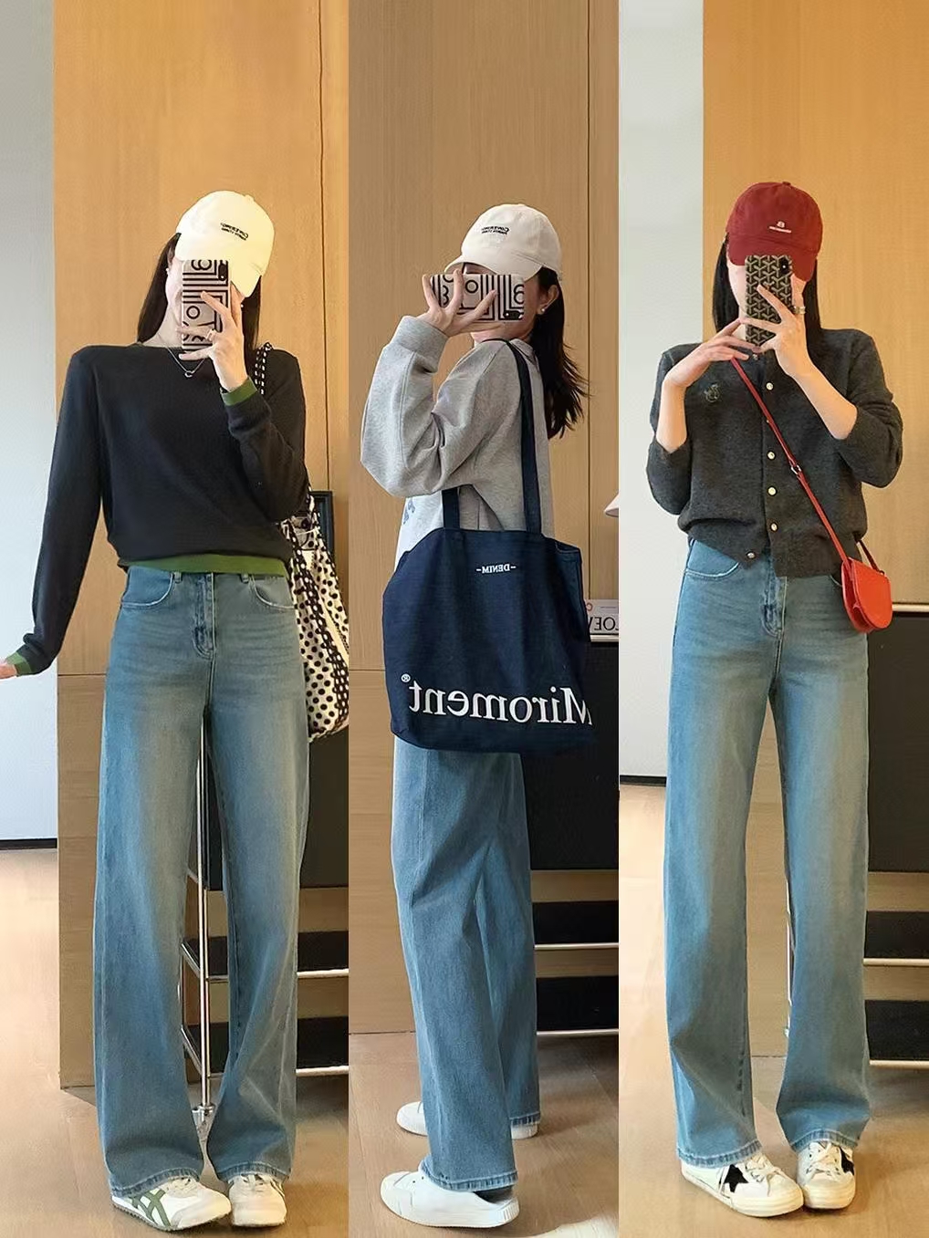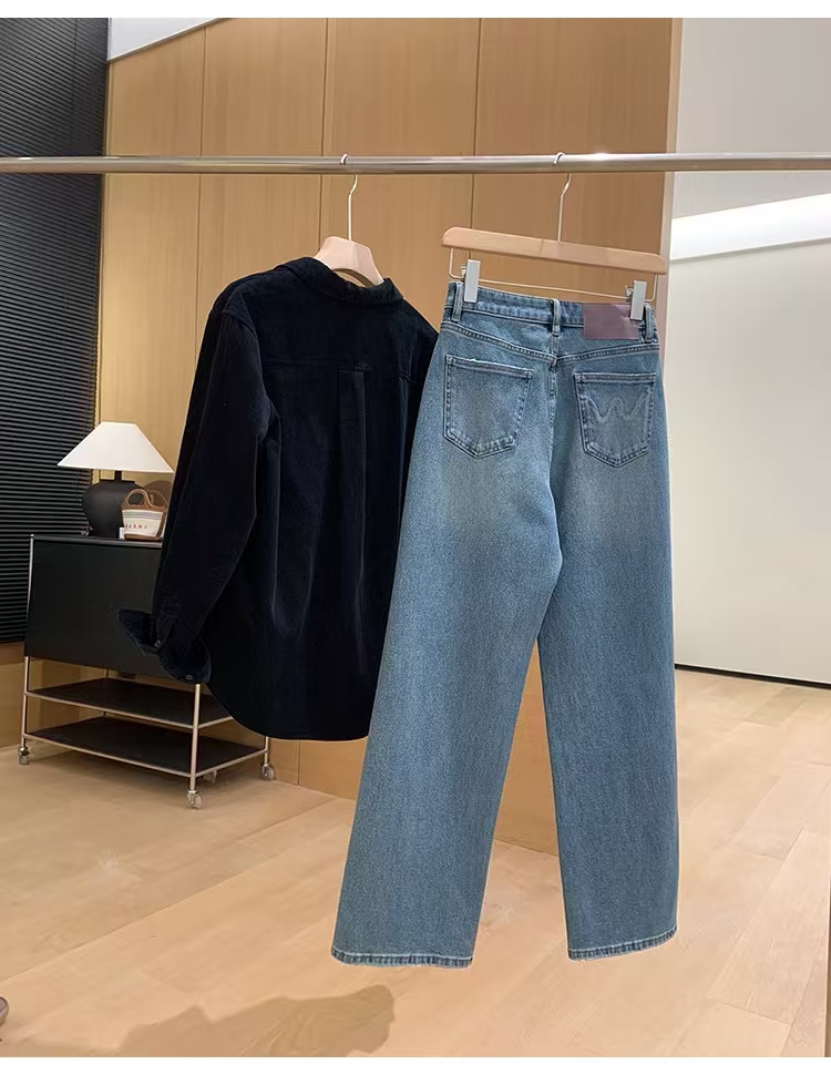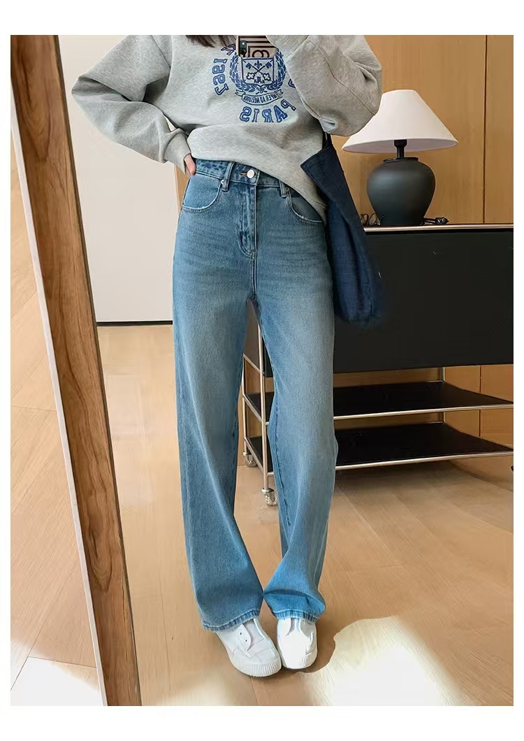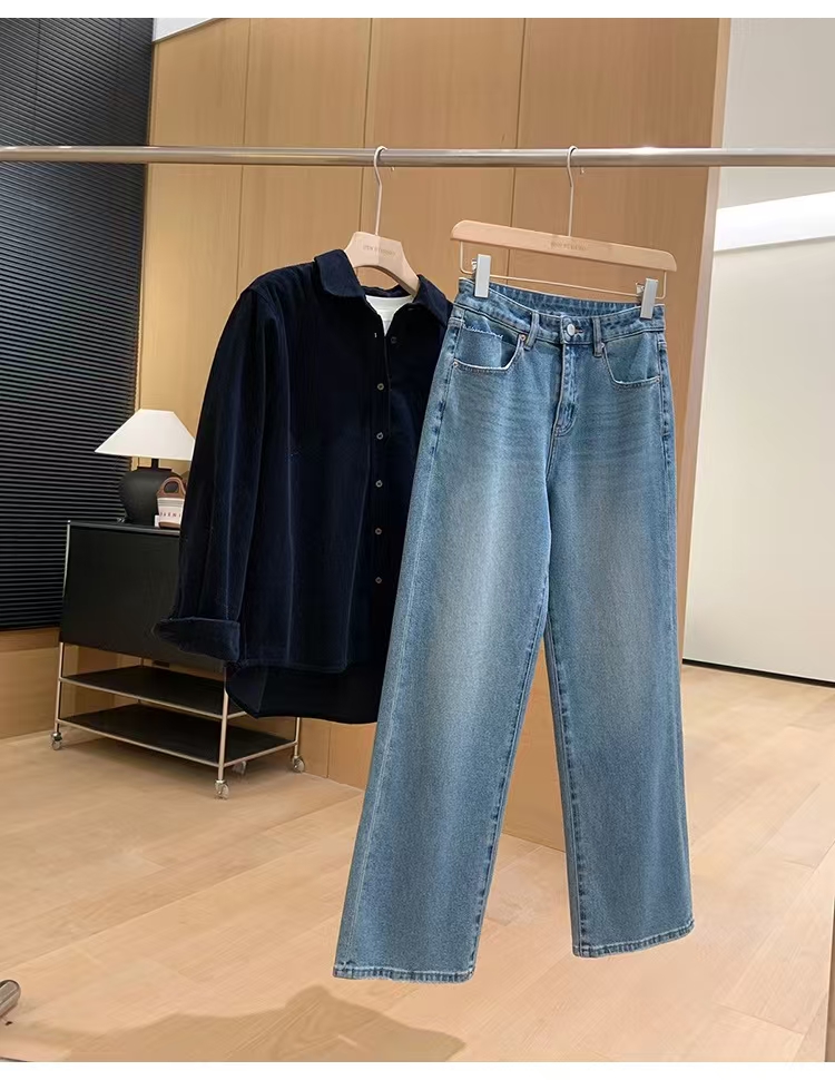 裤腿窄板微阔腿,比宽松阔腿版显腿细,高腰设计,提高腰线,优化出高挑的身段比例。低饱和度更适合春天~