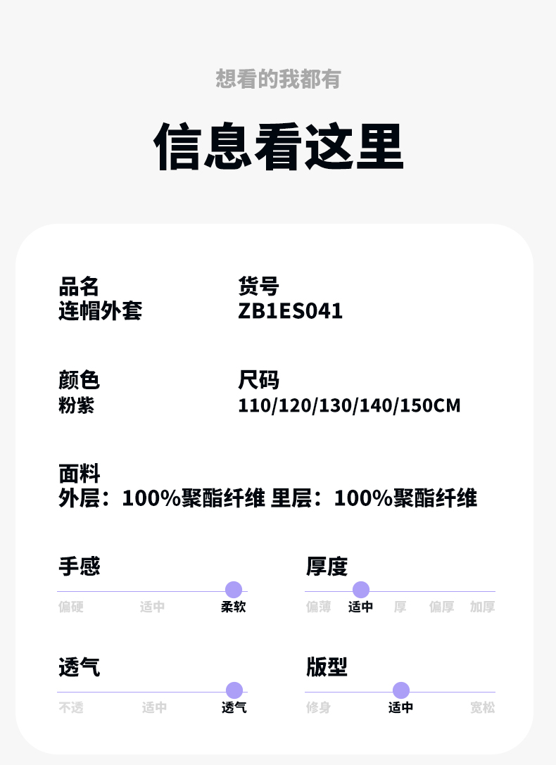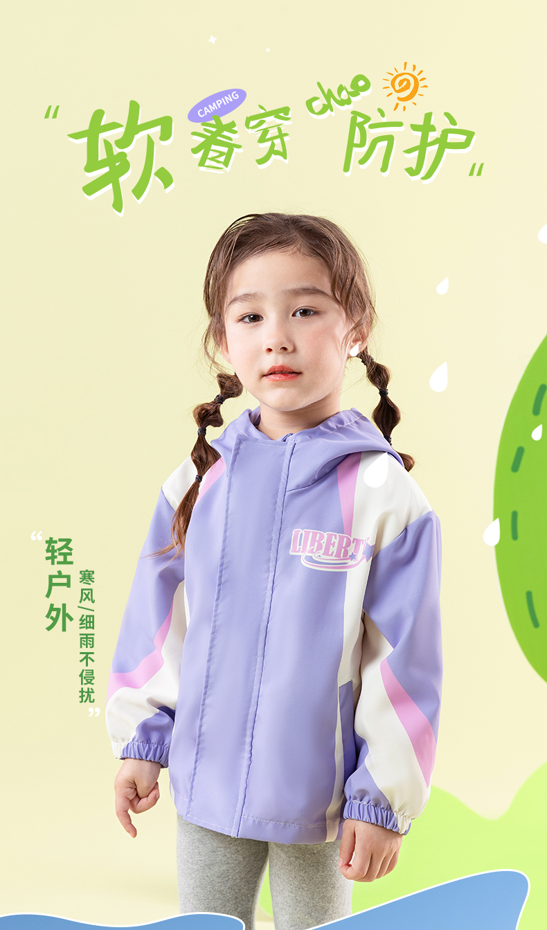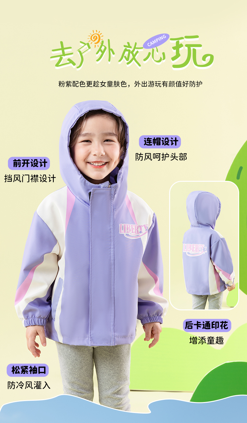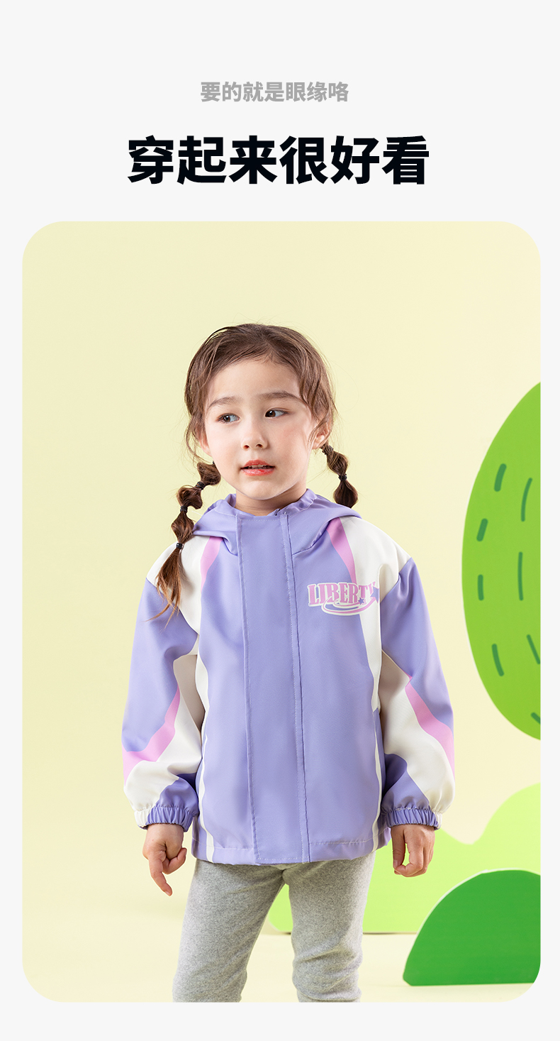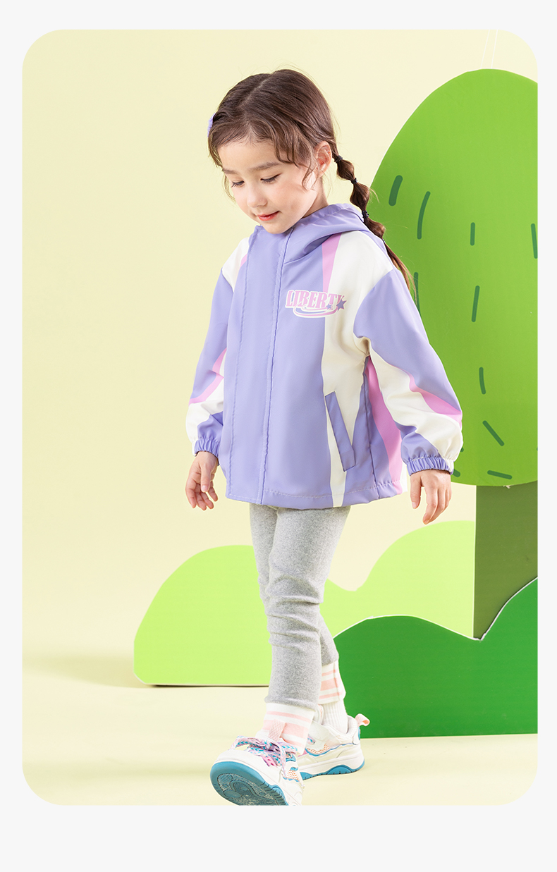 贝贝怡【户外运动】女童外套25春夏新款运动休闲防污防风连帽儿童夹克ZB1ES041