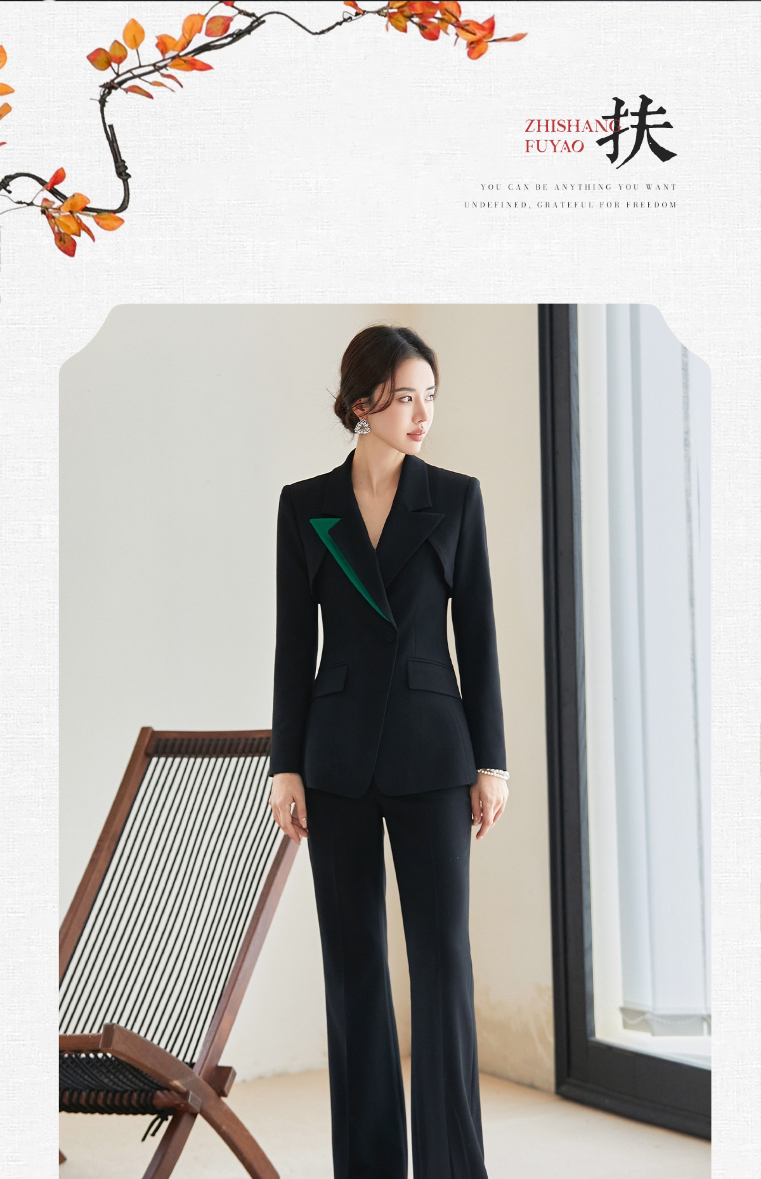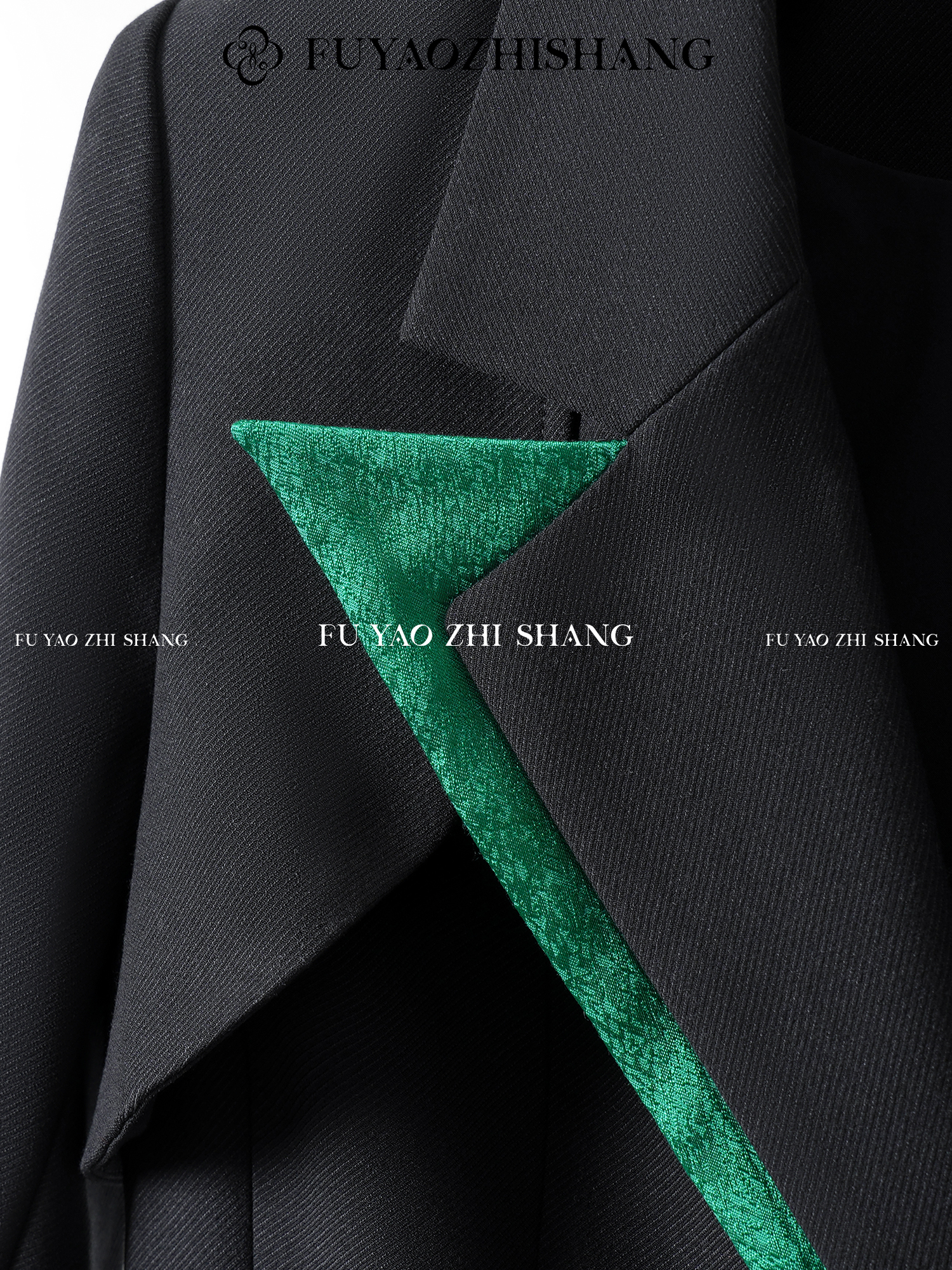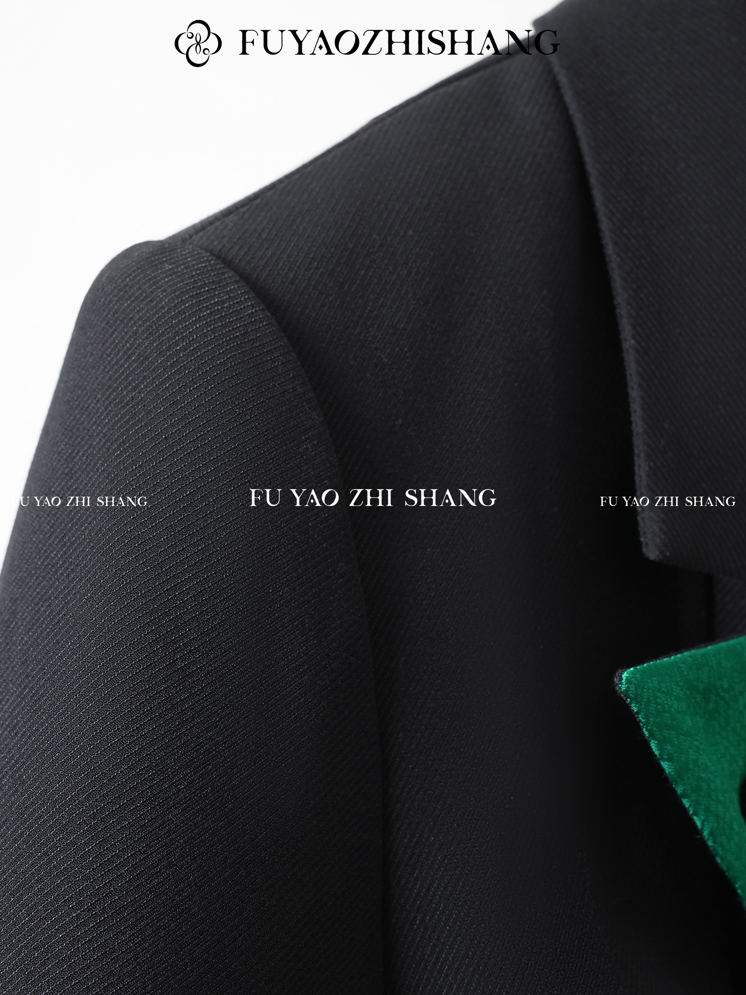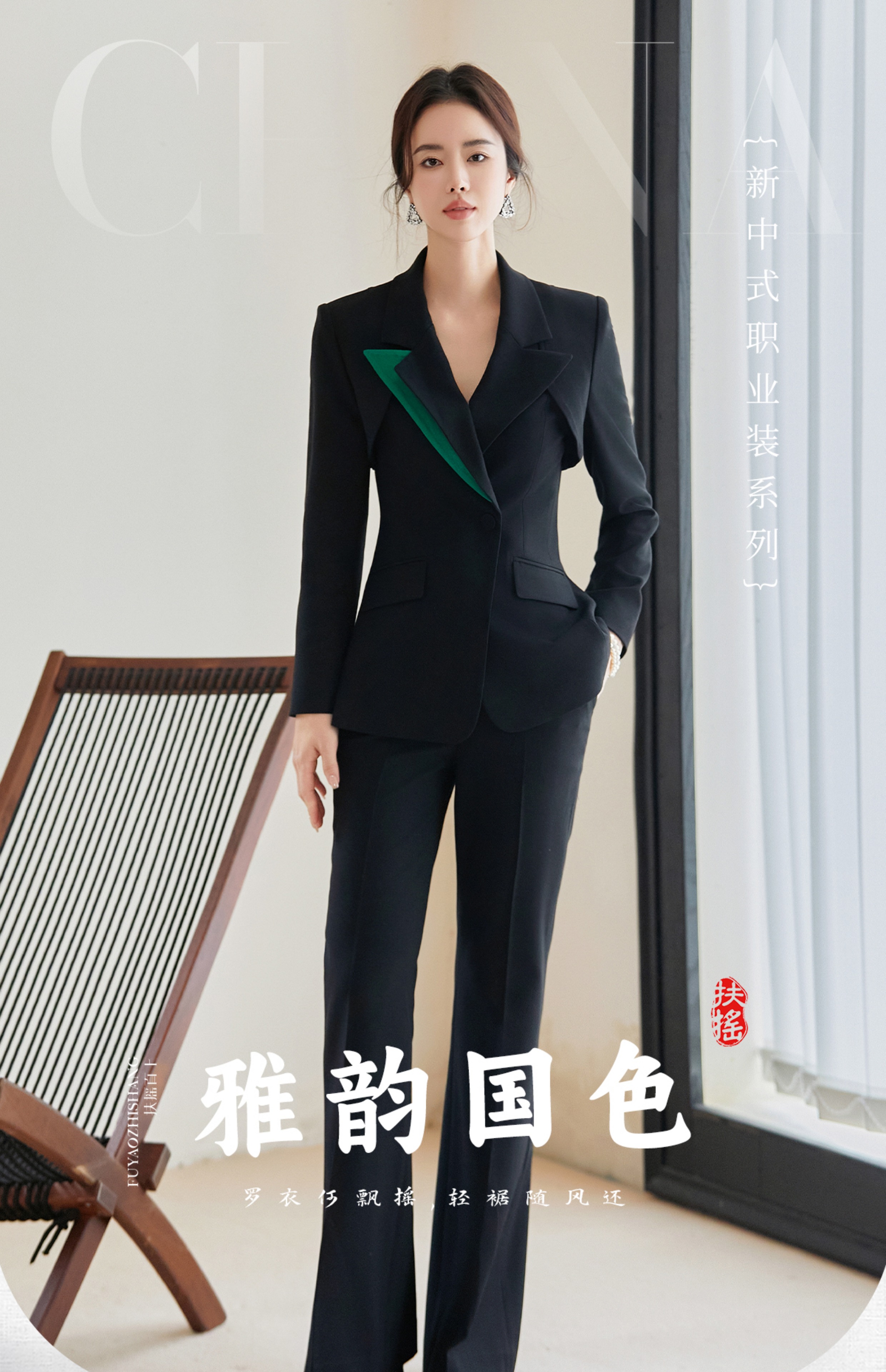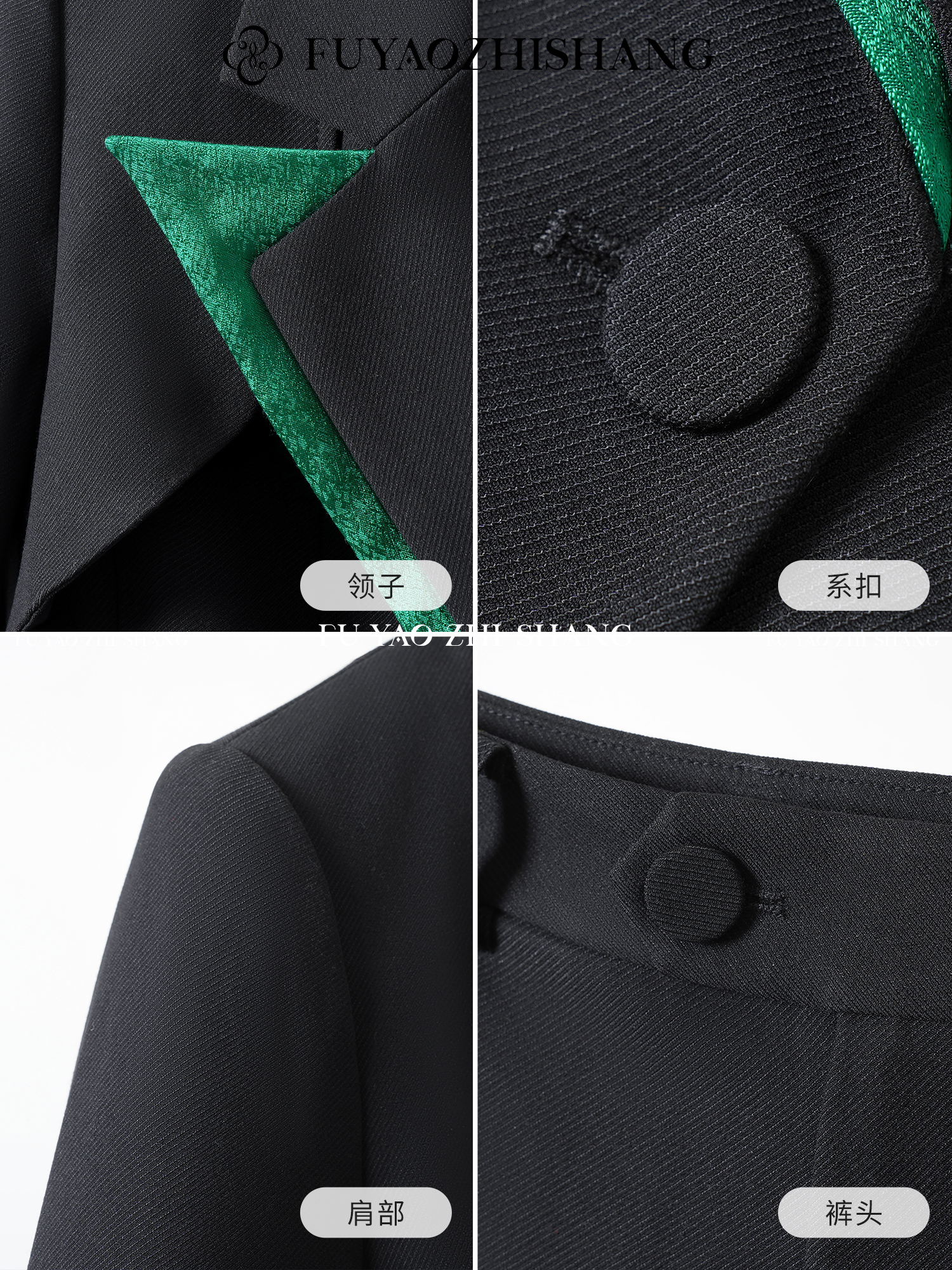 FUYAO扶摇 黑色新中式高定轻奢西装套装女国风气质修身西服两件套