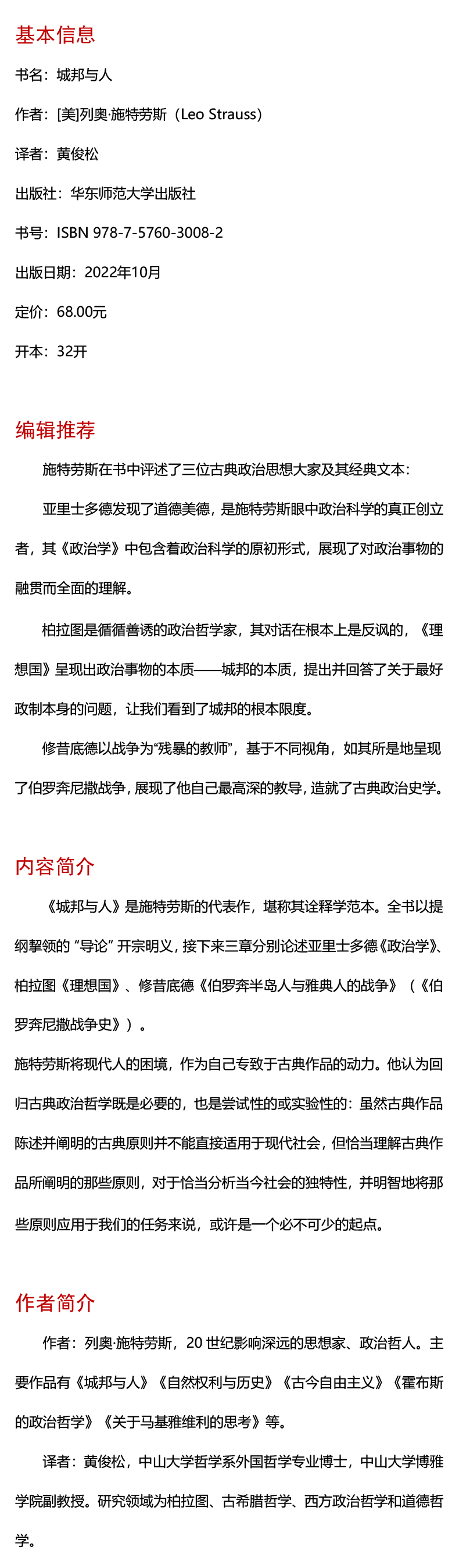 城邦与人 经典与解释 施特劳斯代表作 古典政治哲学的重生 精装