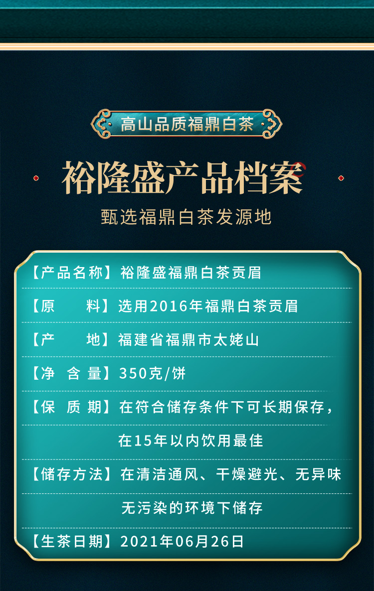 裕隆盛丨贡眉礼盒 福鼎白茶 2016年 350g