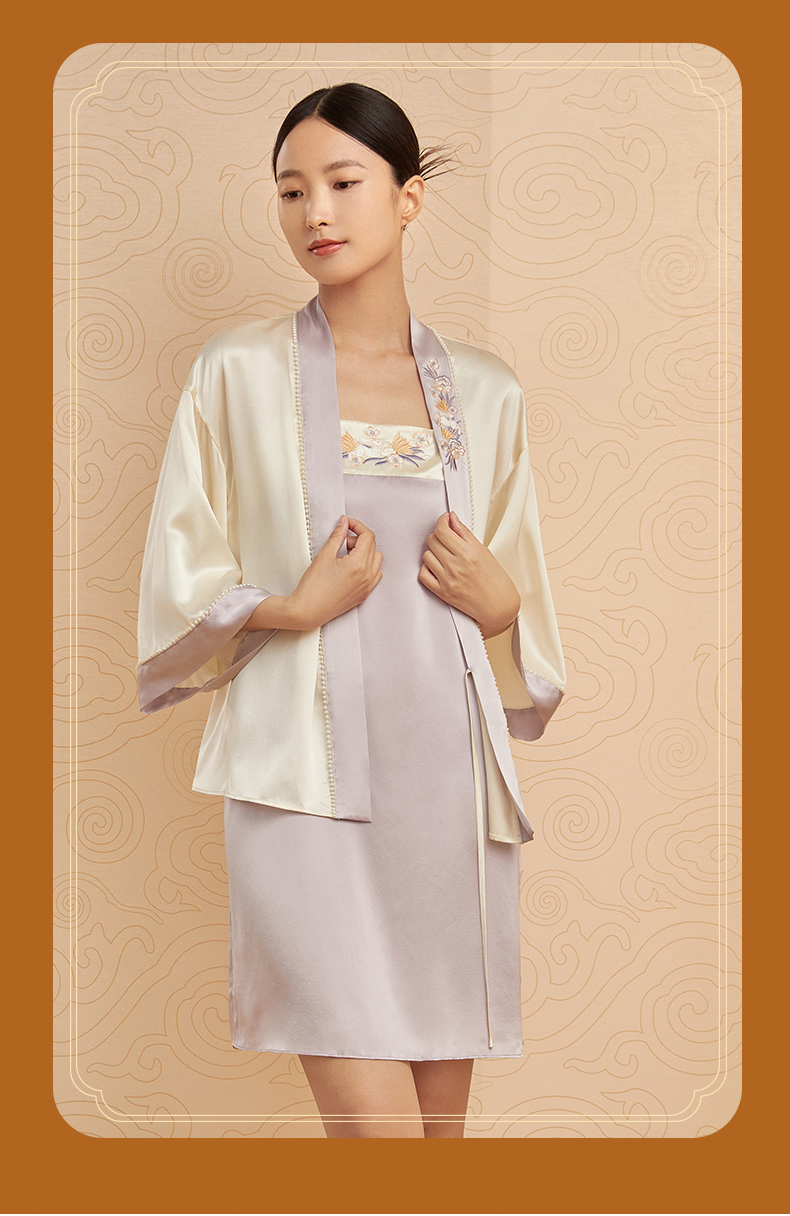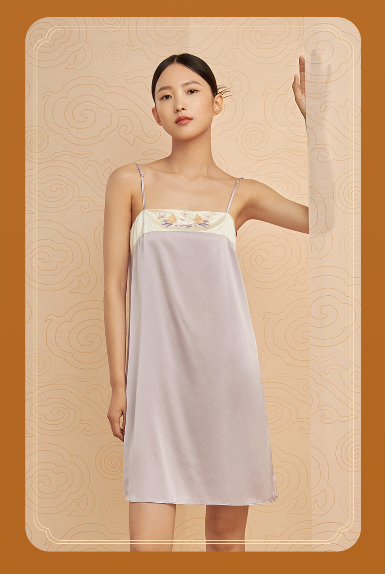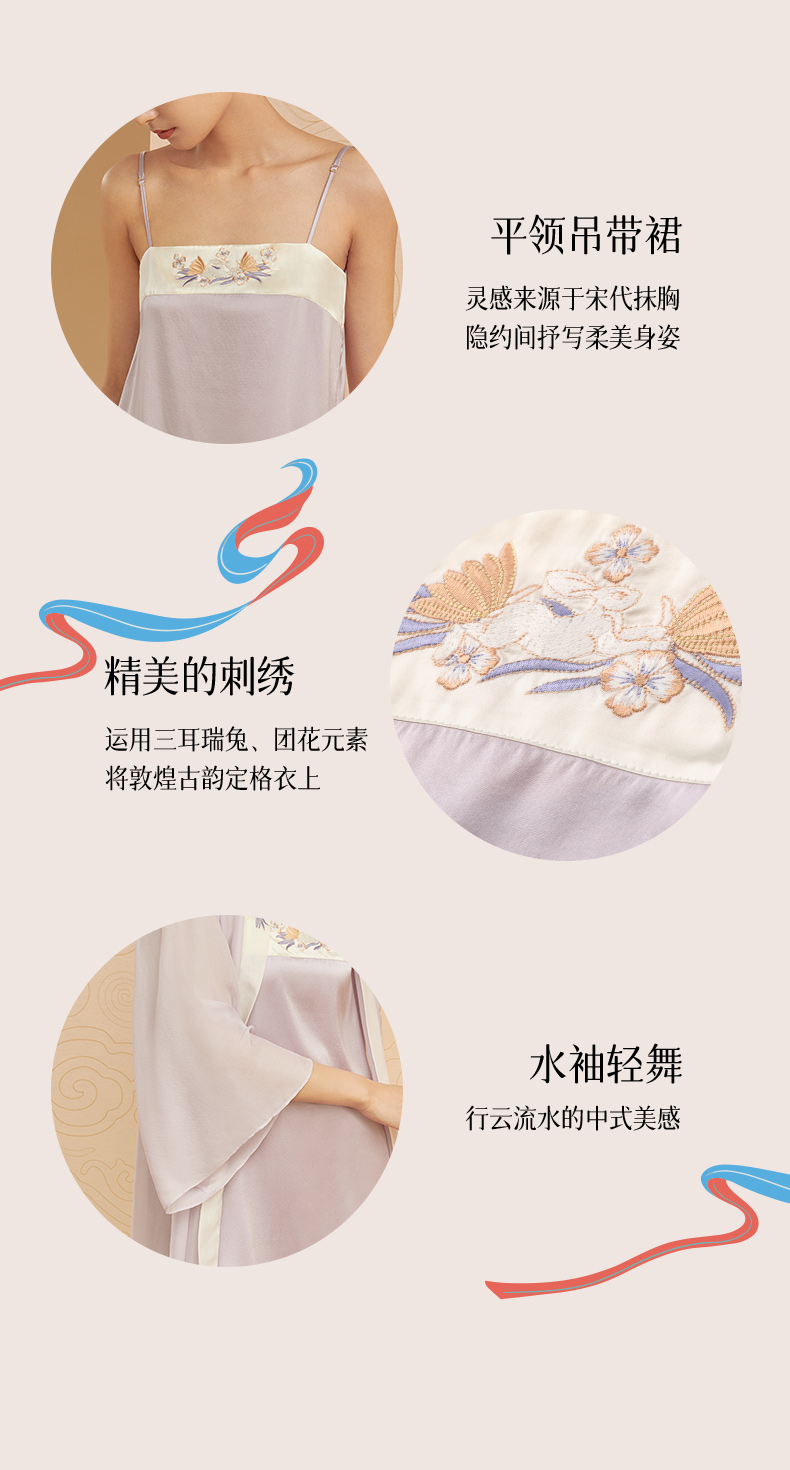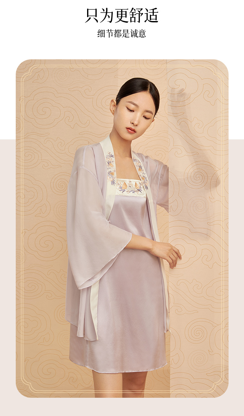 金三塔&敦煌 100%桑蚕丝女真丝刺绣绸缎吊带裙晨袍中式汉寝衣新品 YSFDB303/YSFDB101