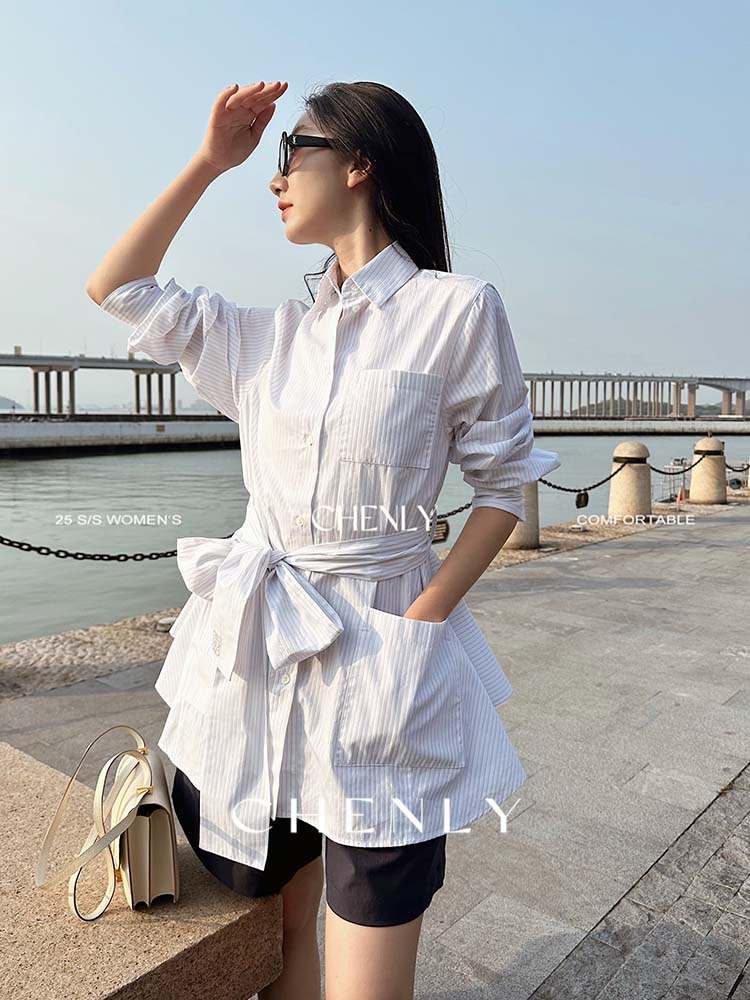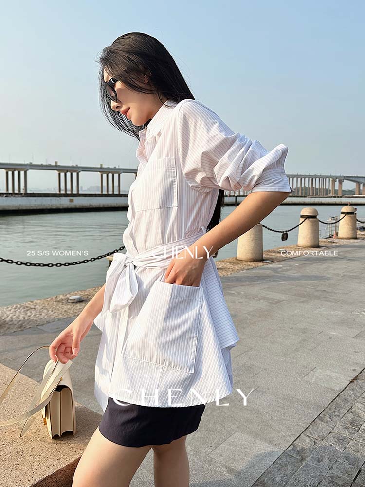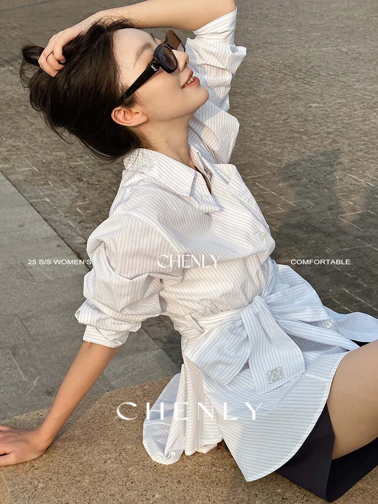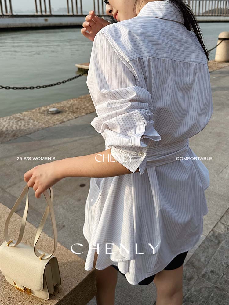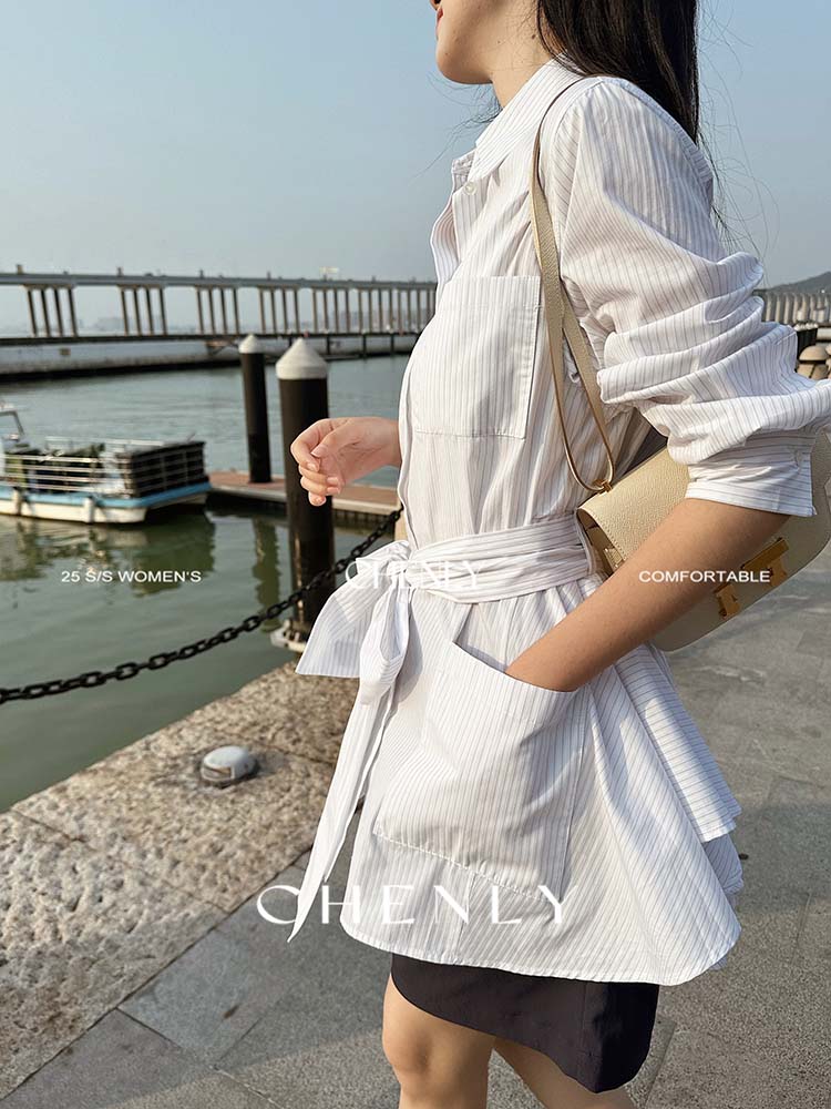 尘衣|25春夏条纹提花衬衫裙