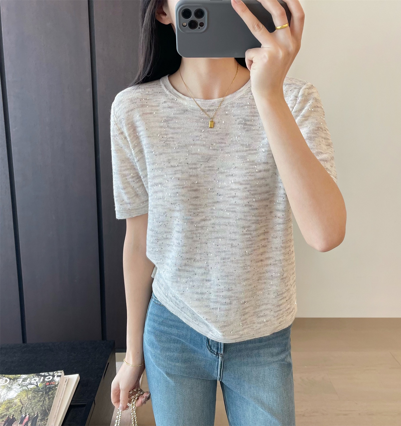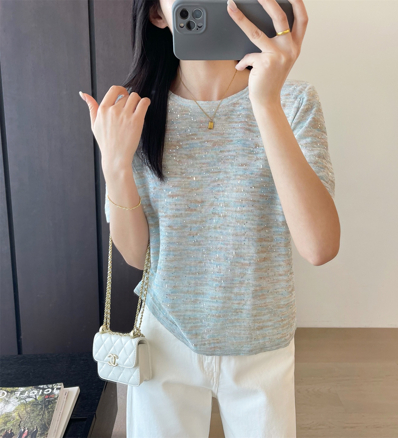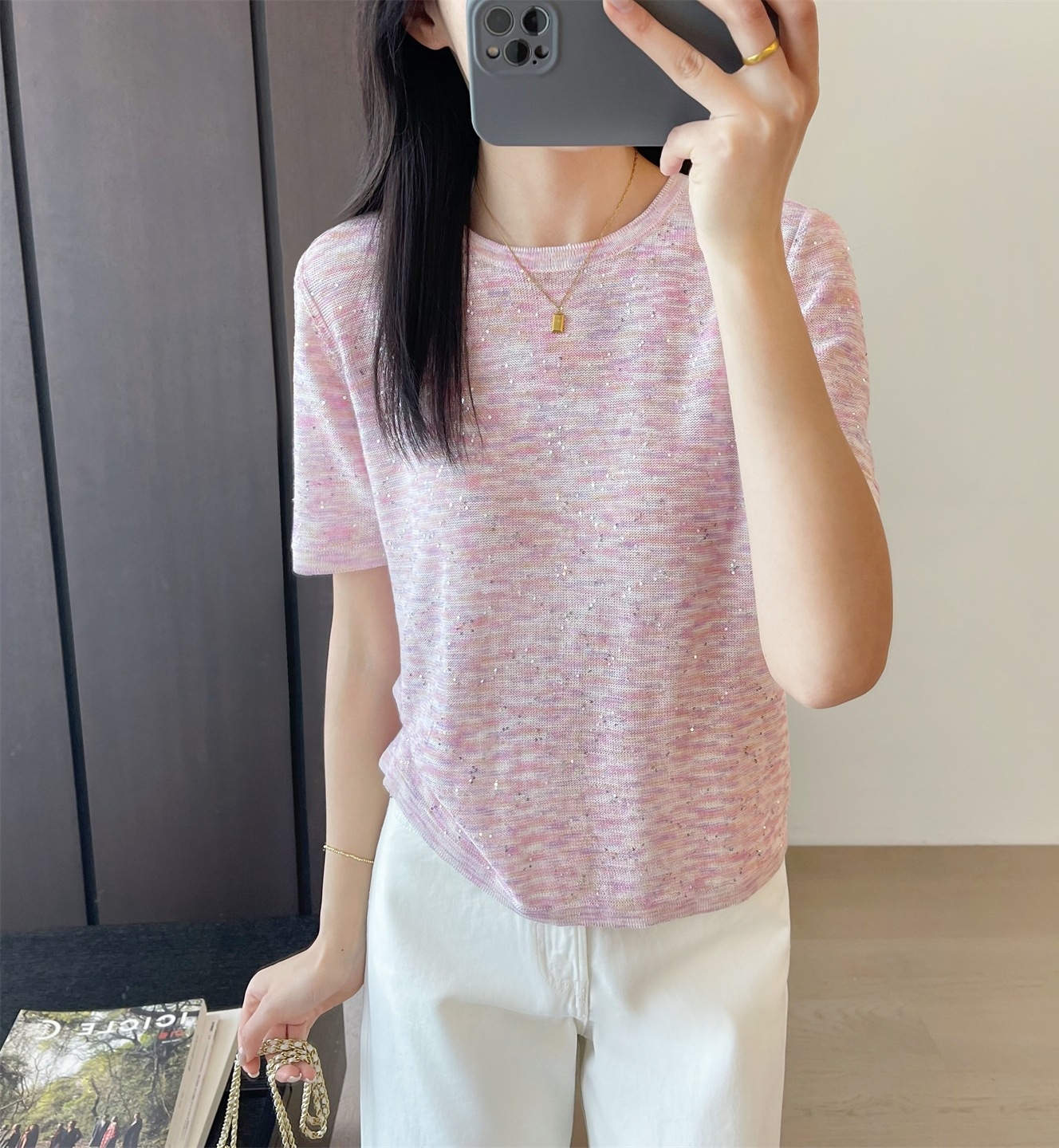 L 袖长23cm,胸宽100cm,衣长58cm