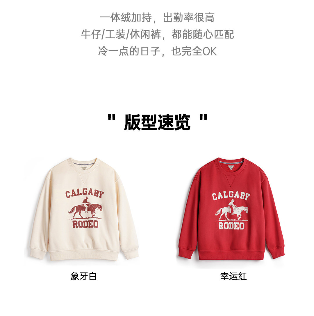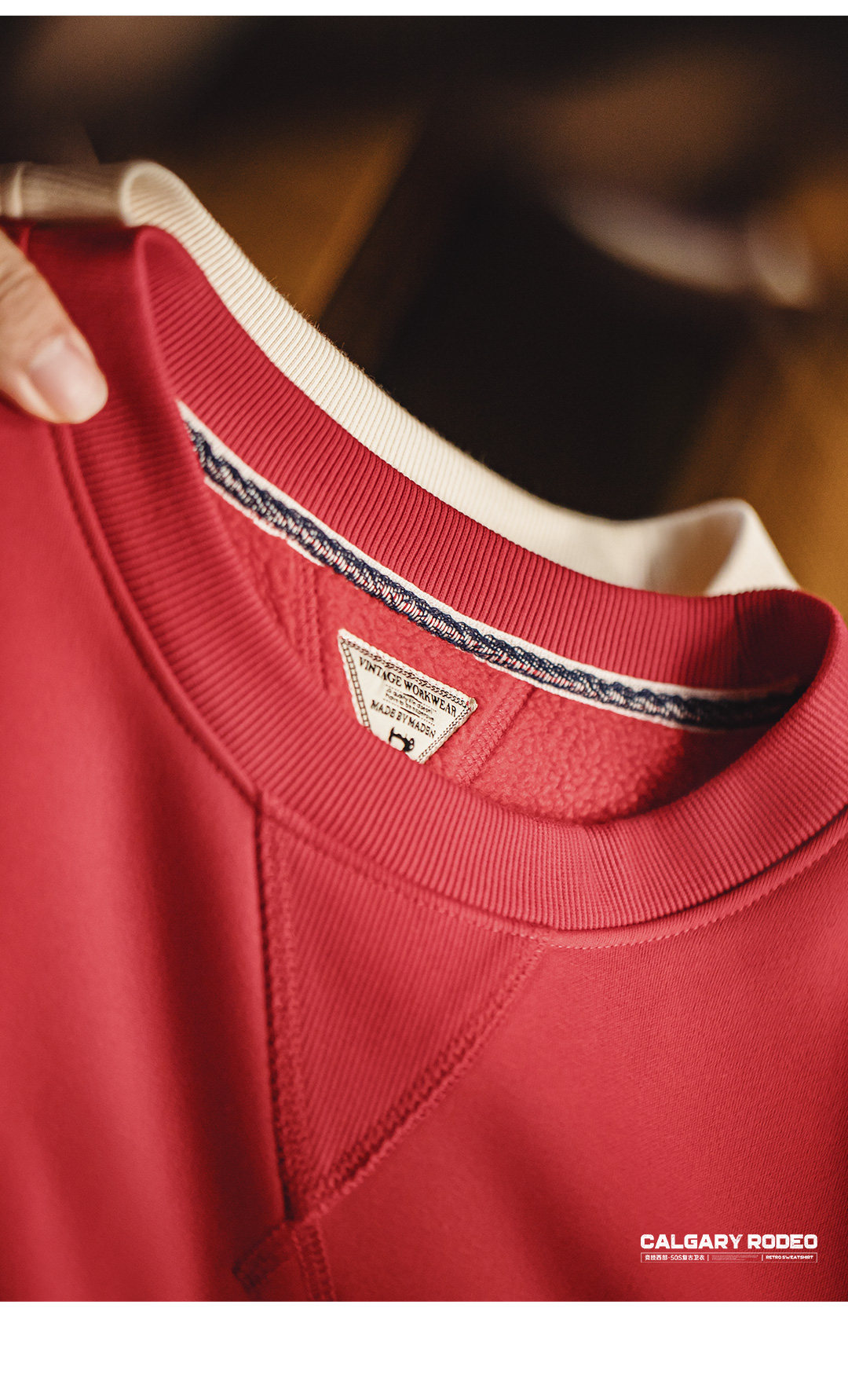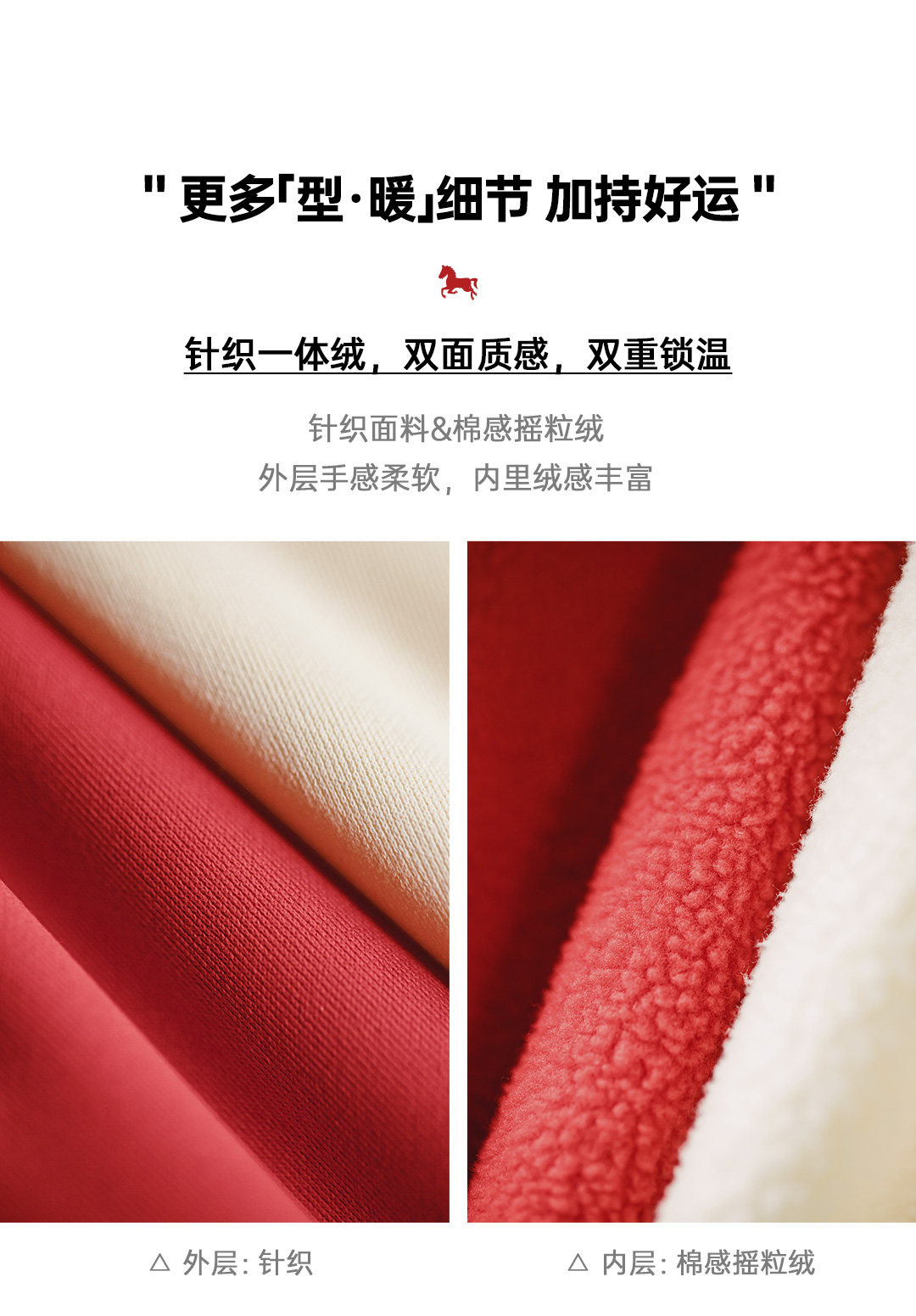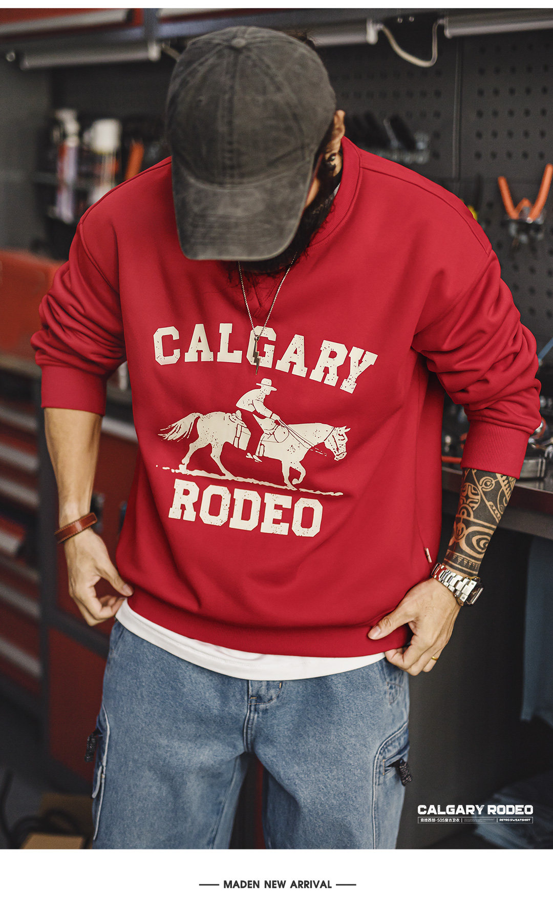 马登工装美式马年限定红色卫衣加绒印花保暖圆领加厚套头外套男春