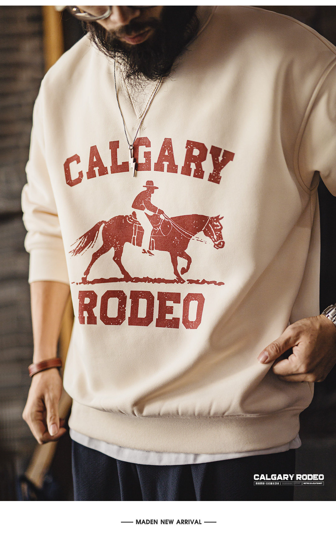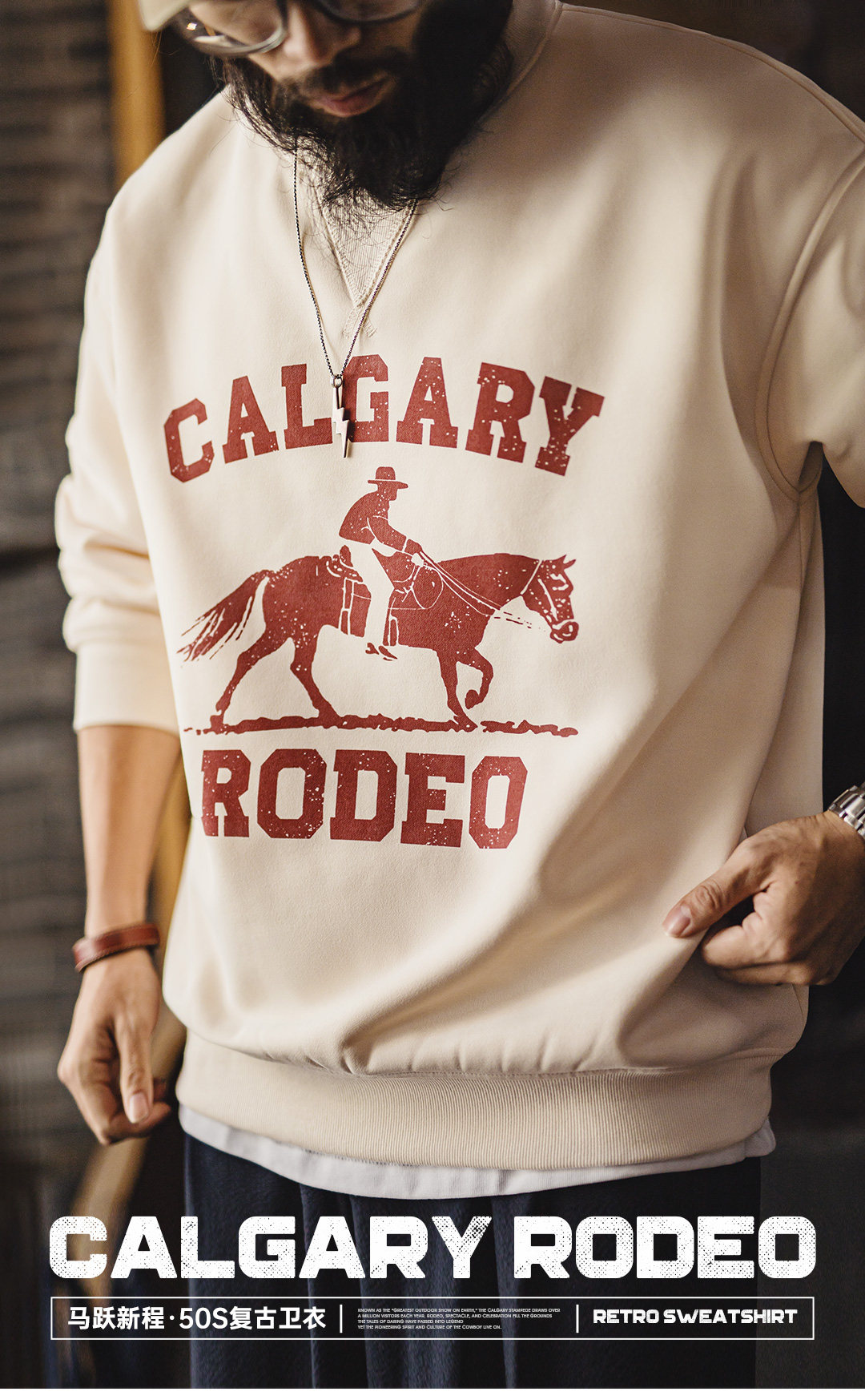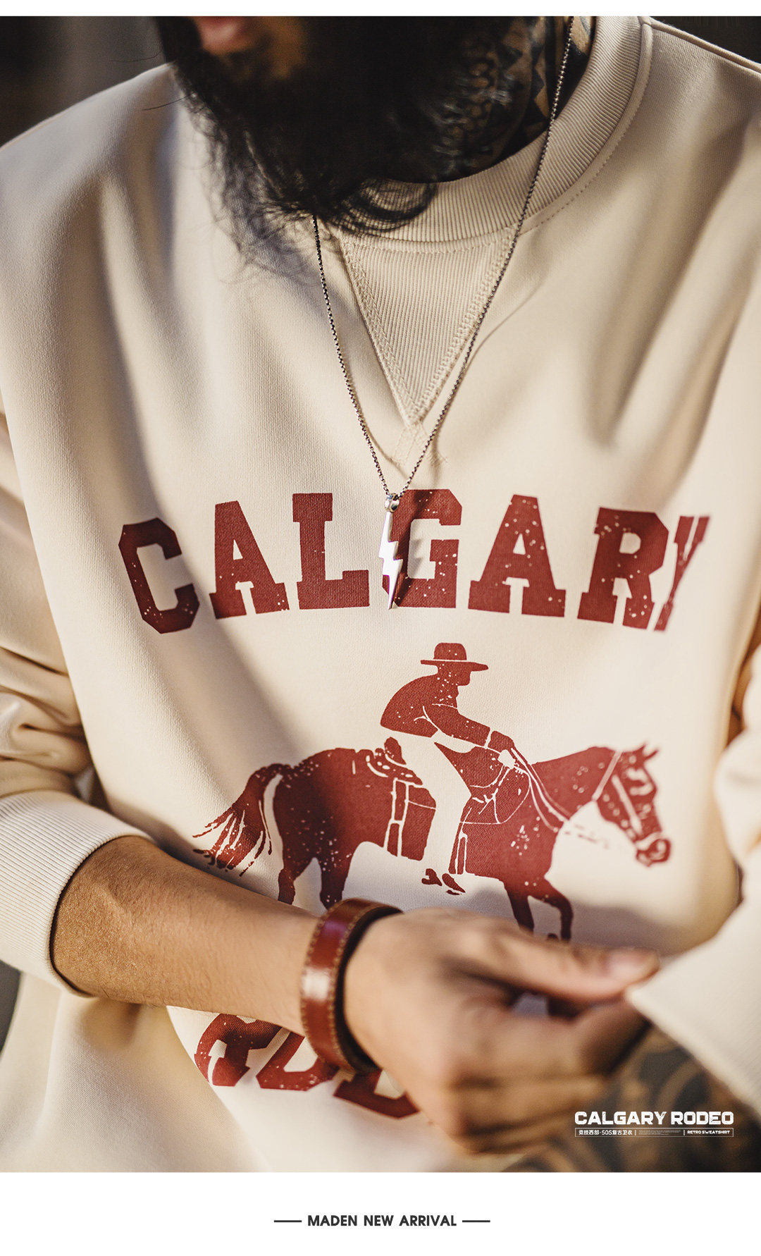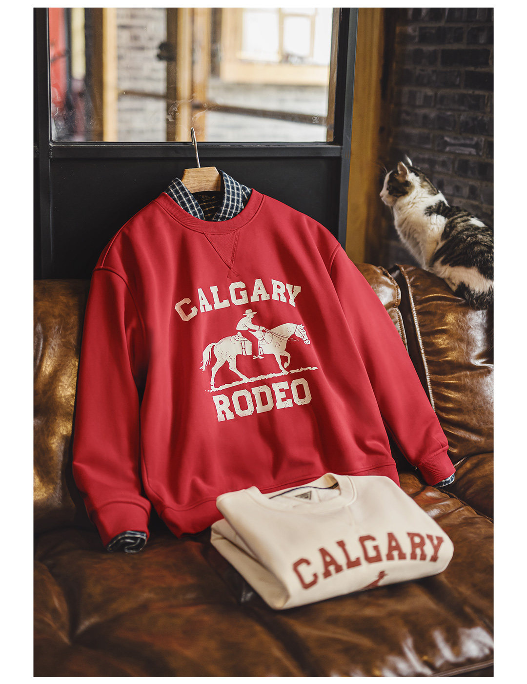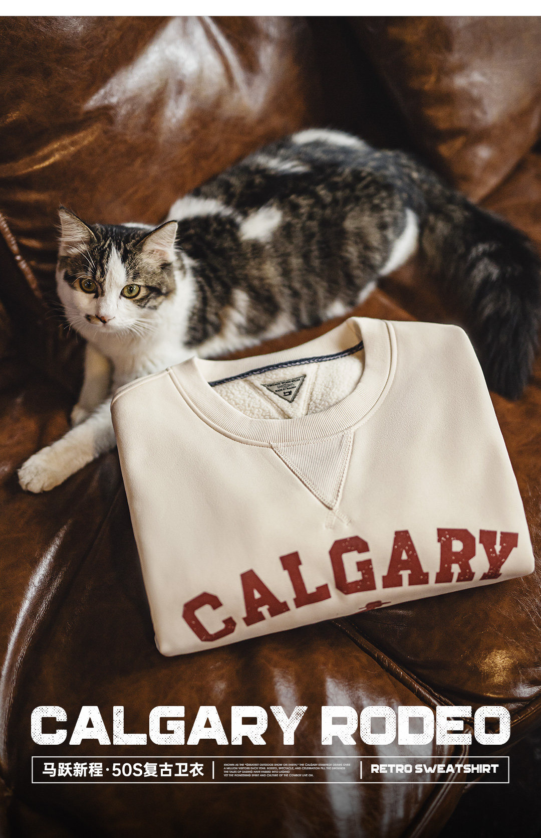 马登工装美式马年限定红色卫衣加绒印花保暖圆领加厚套头外套男春