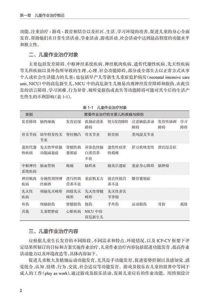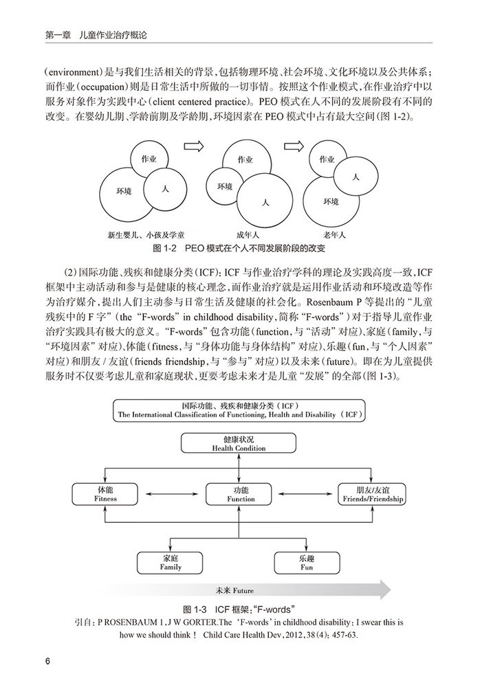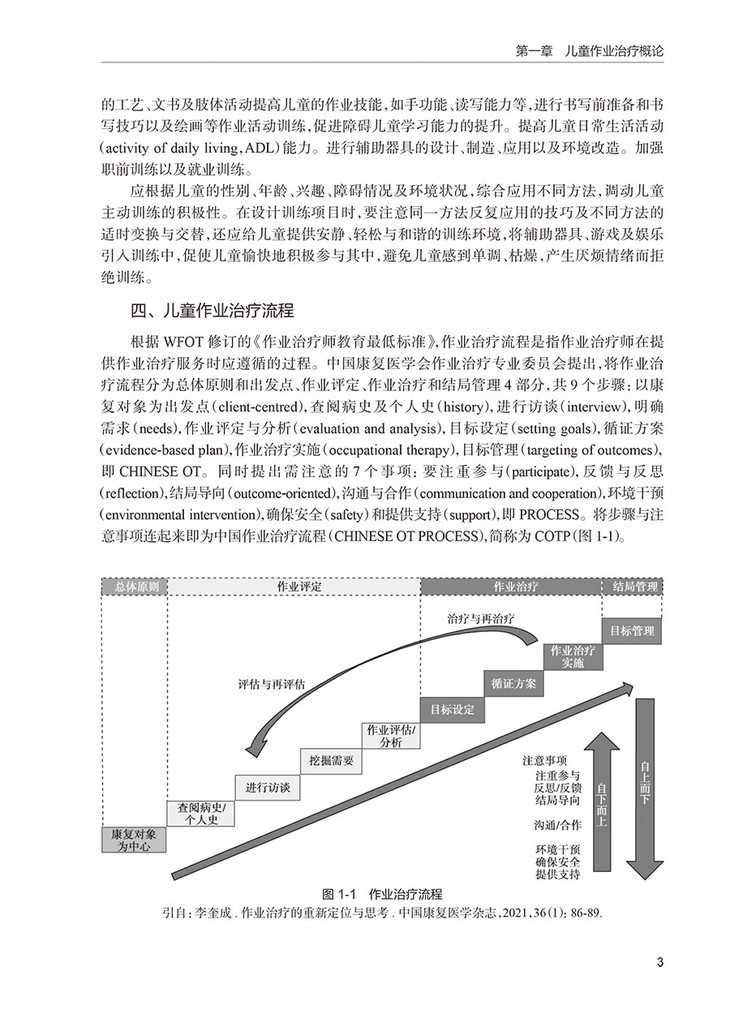 2.儿童作业治疗的评估(包括评估的目的、过程和方法,ICF构架下的作业治疗,环境对儿童参与的影响,儿童在社区和学校中的参与等)