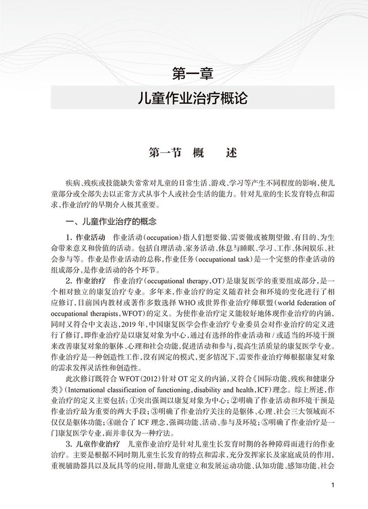 1.儿童作业治疗基础知识(包括儿童作业治疗概述、实践的依据等)