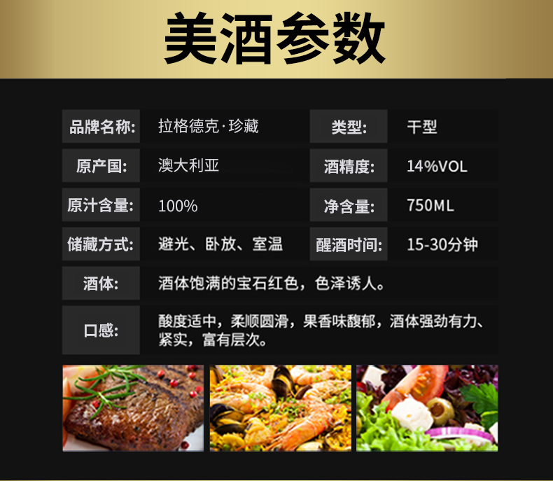 【年货好礼 醇香美酒】澳大利亚进口 拉格德克珍藏干红葡萄酒750ml*6瓶