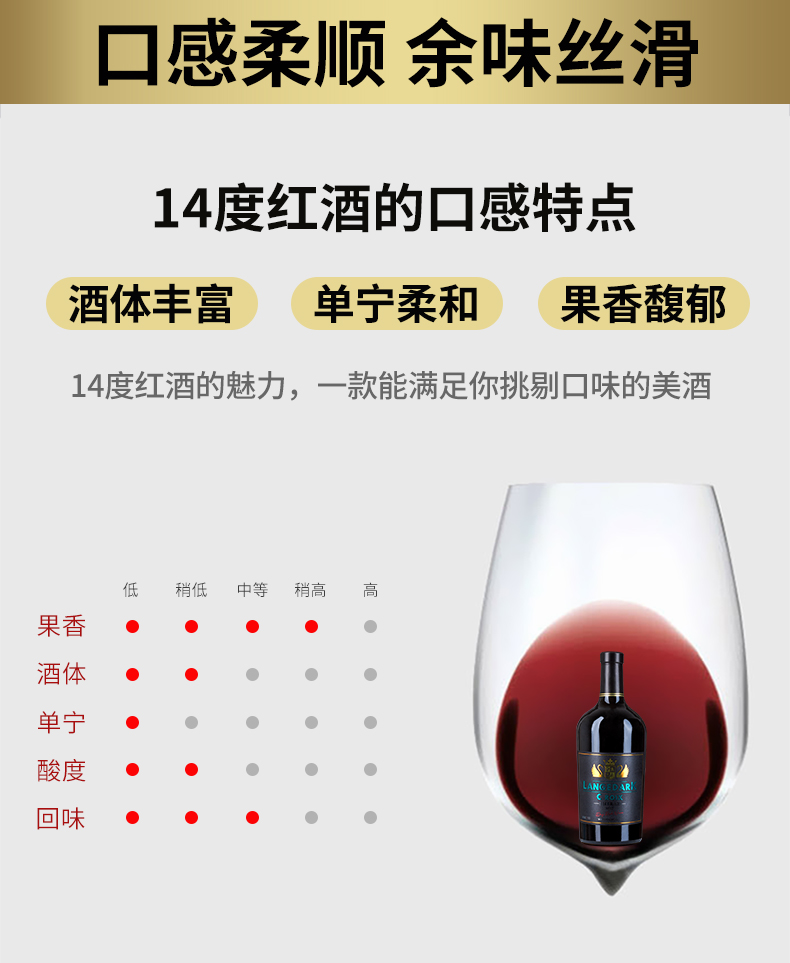 【特点】:稀有的14度红酒,满足你挑剔的口味。年底囤货季,足足6瓶!囤在家里,尽情享用。