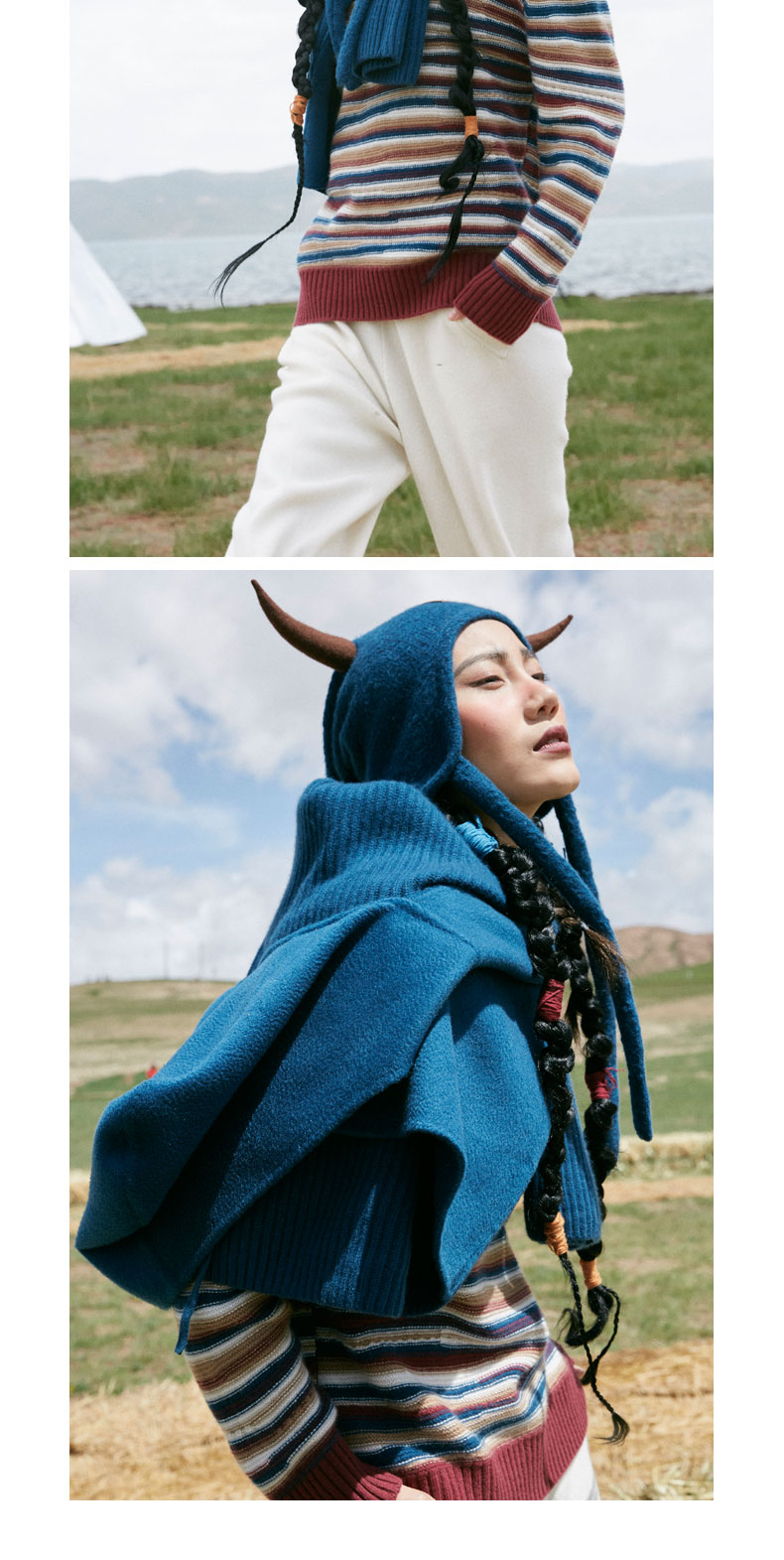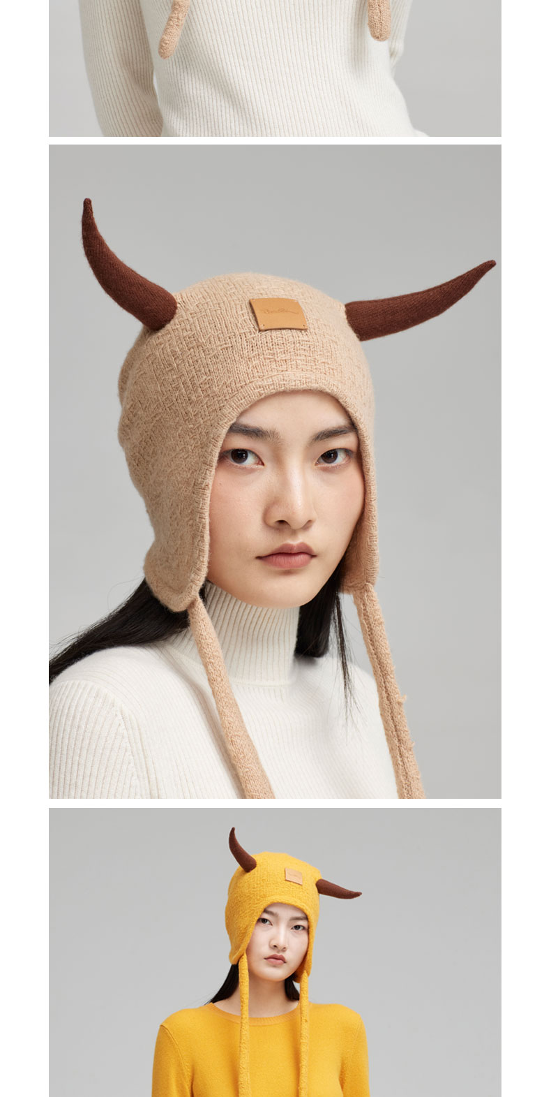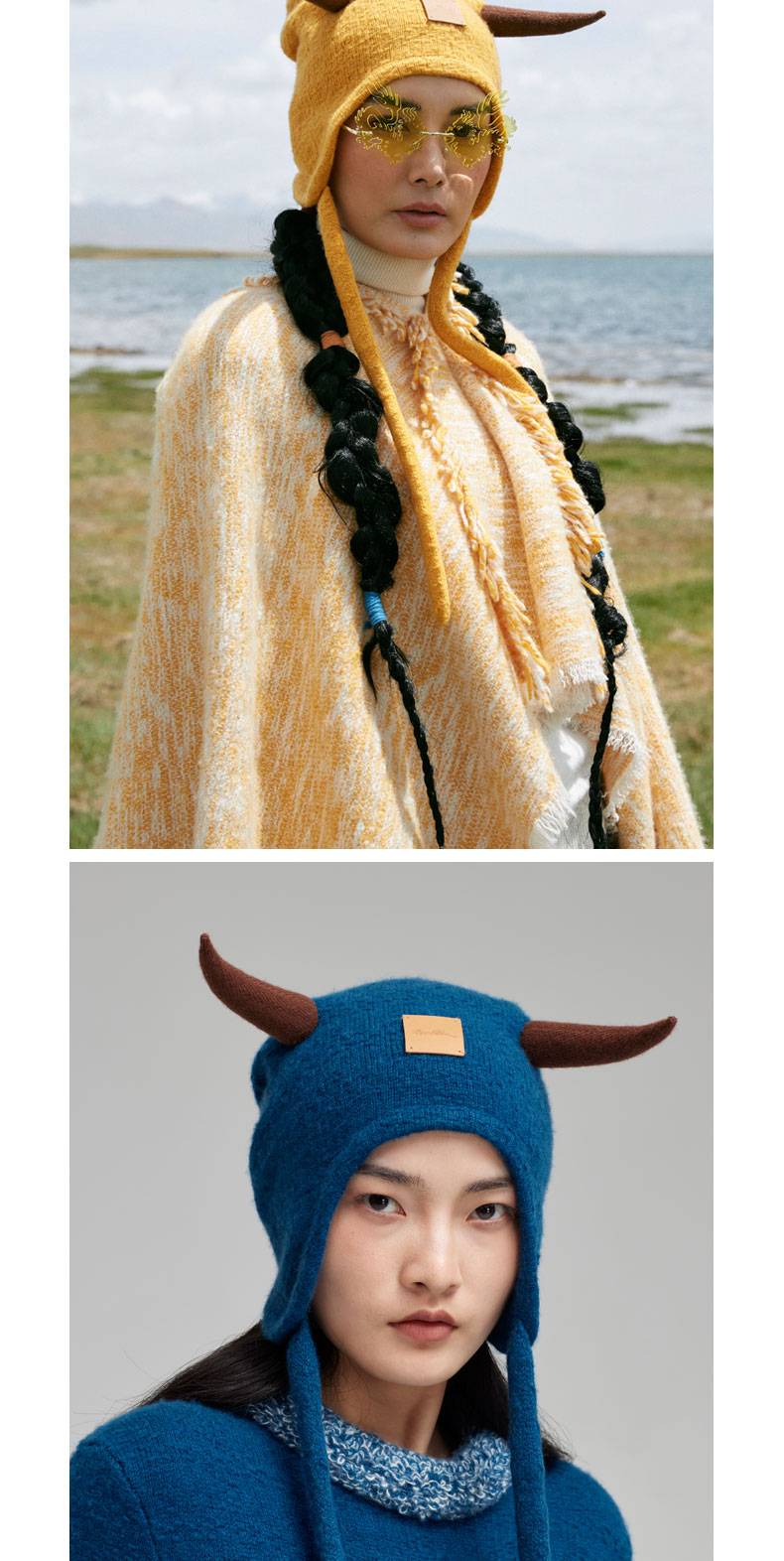 青海果洛牦牛绒 羊绒牛角帽SJF96P626N