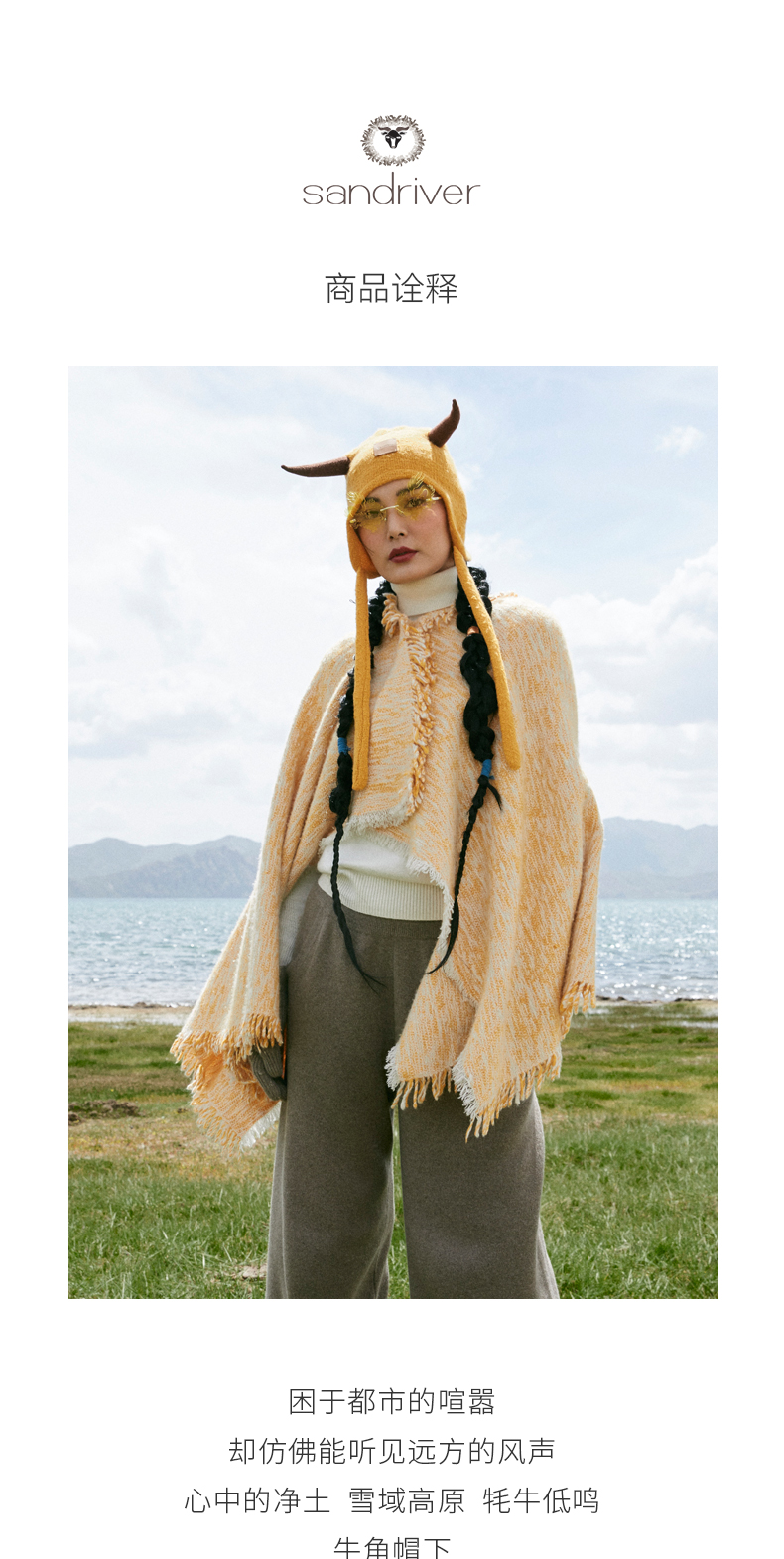 历年在巴黎时装周亮相,享誉世界的艺术羊绒品牌[Sandriver 沙涓]由羊绒布道者郭秀玲女士创立。阿拉善自有牧场纯种羔羊绒,日本国宝设计师小筱顺子,上海自有基地精工细作。承载羊绒情怀,坚持匠人品质。