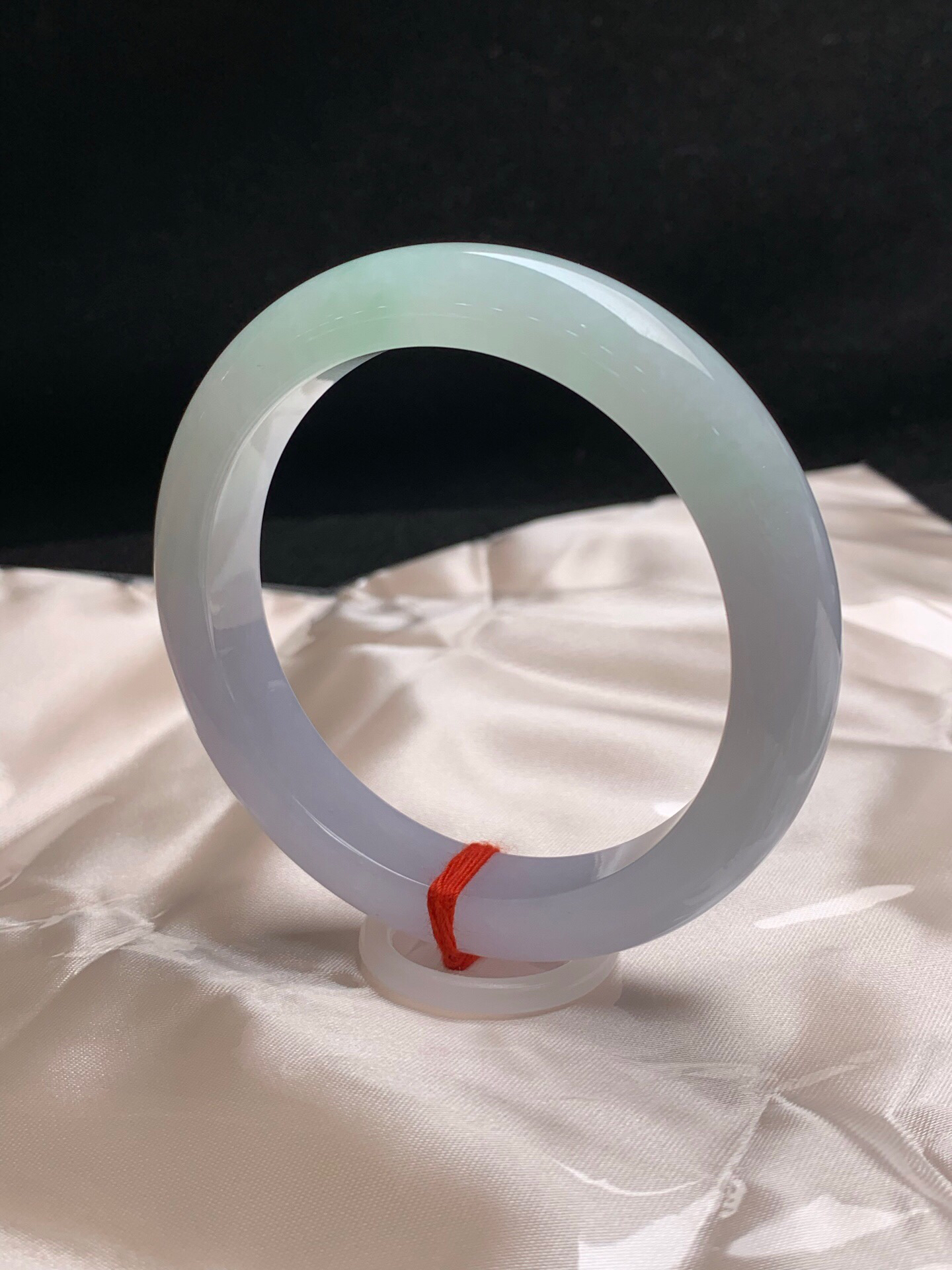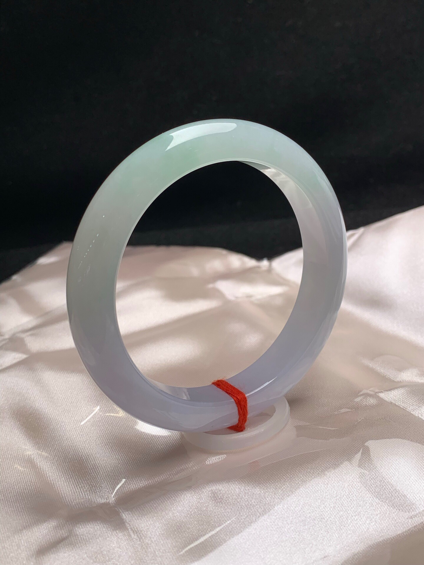 620167,57.7圈口,糯化春彩半山水正圈平安镯,半截粉紫半截淡绿,种老水足,完美,尺寸:57.7-11.8-9.2,超值价💰35000 #优石客珠宝#香玉荟萃