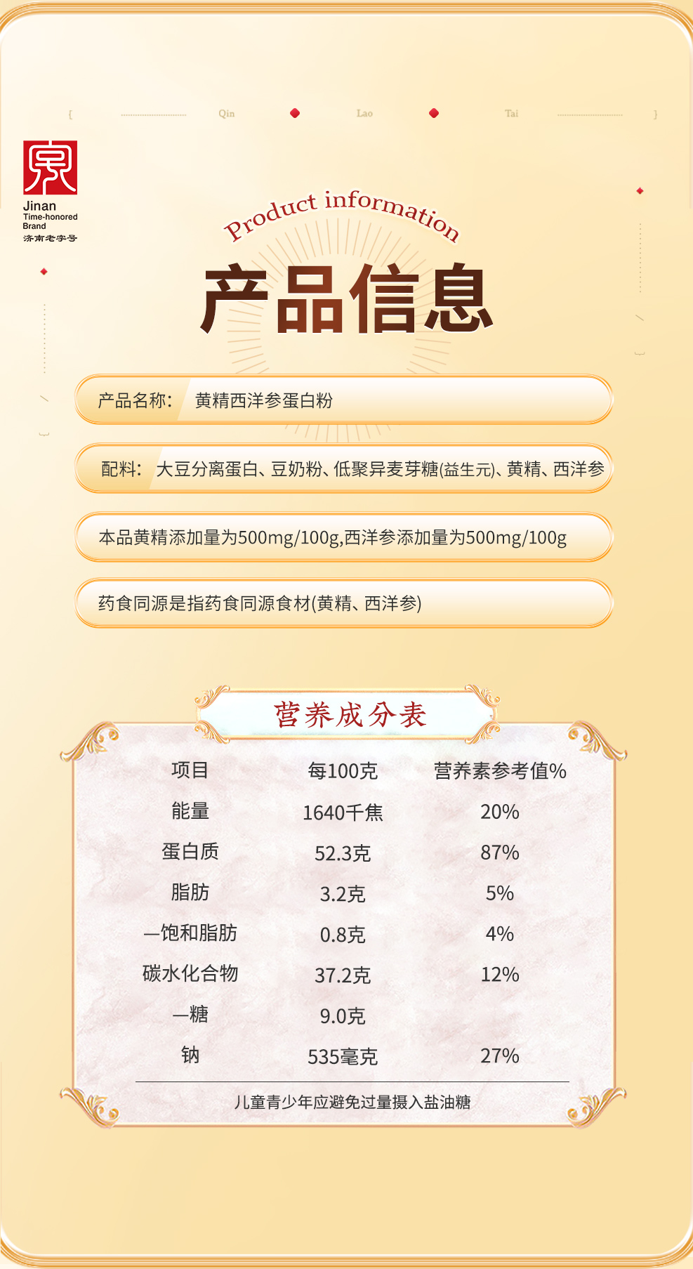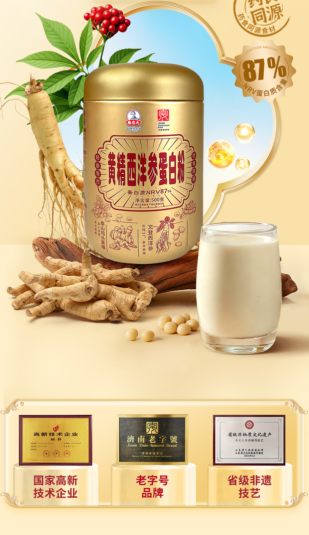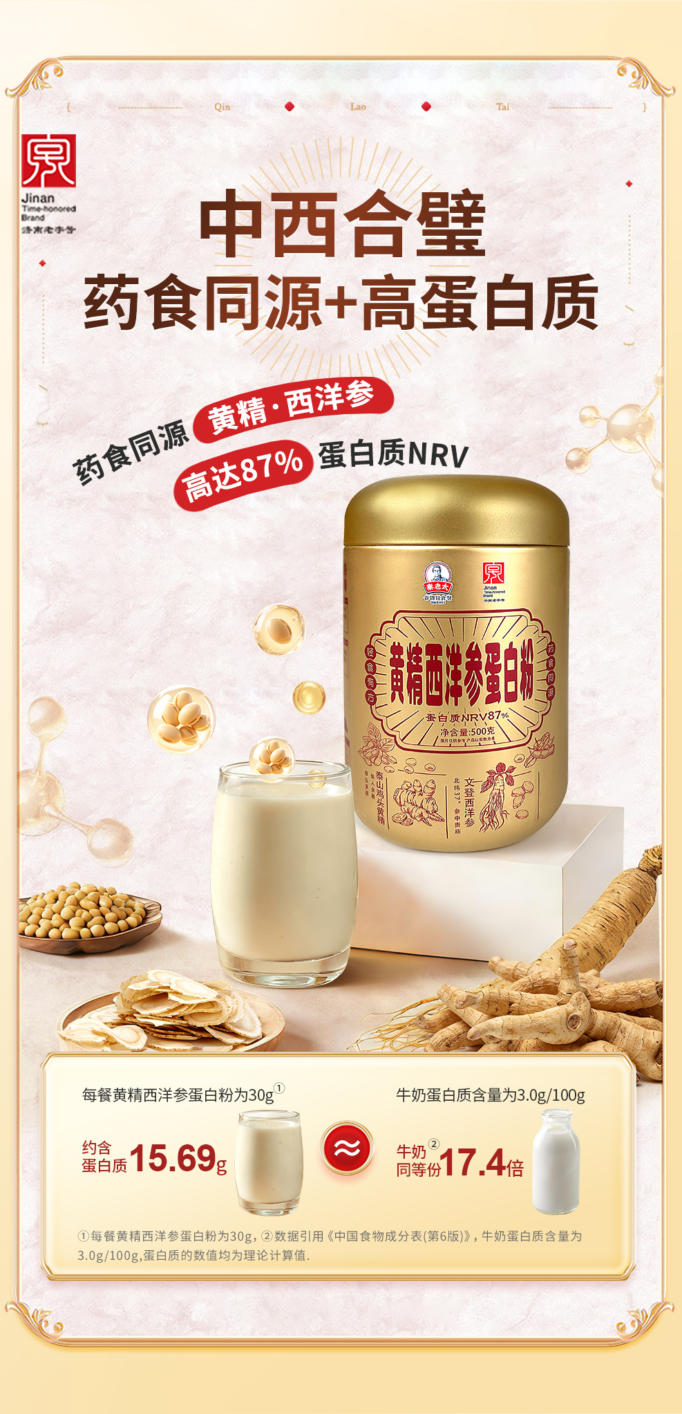 [7980人收藏]秦老太黄精西洋参蛋白粉500g/罐·日常99/罐